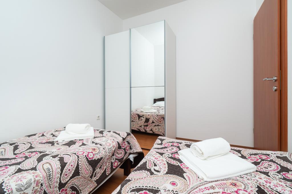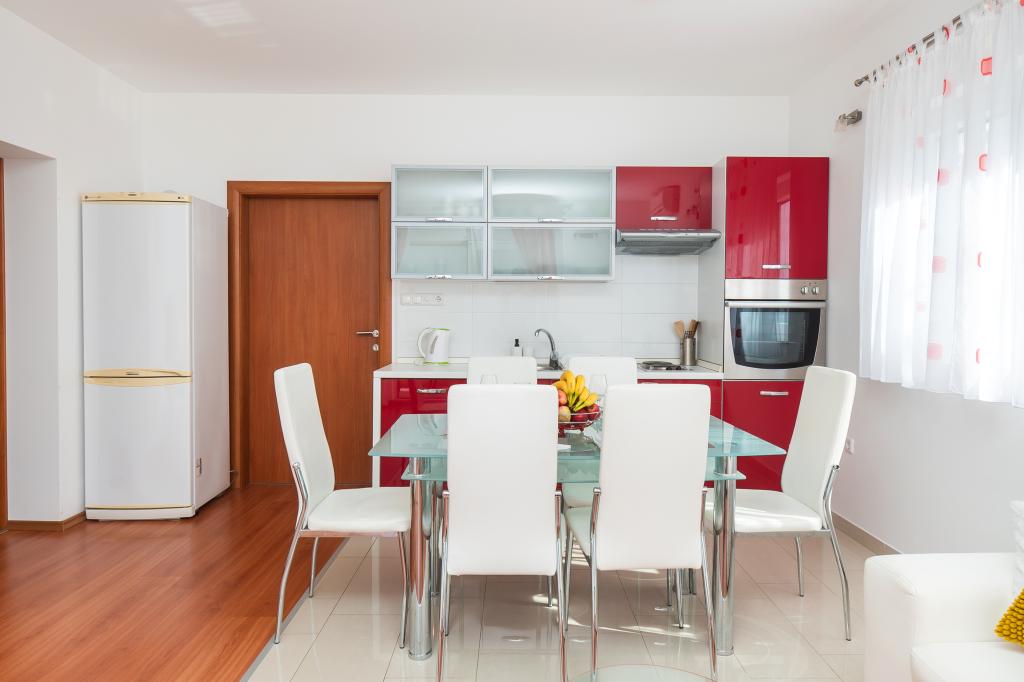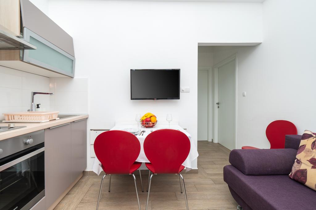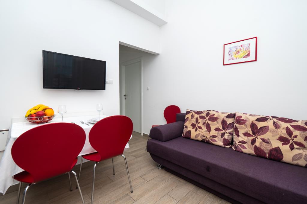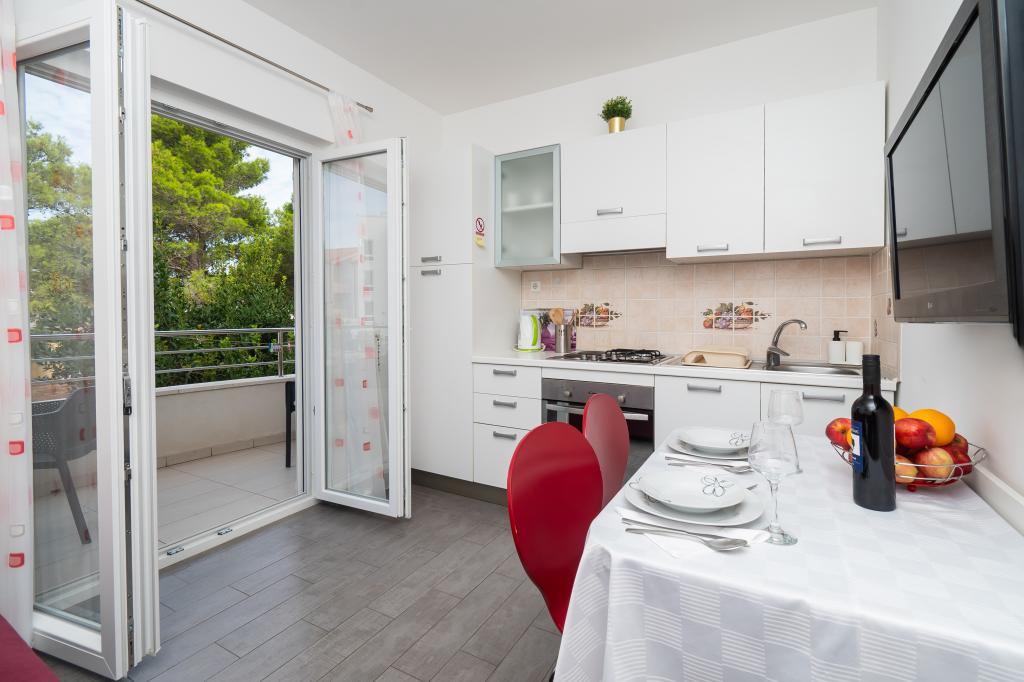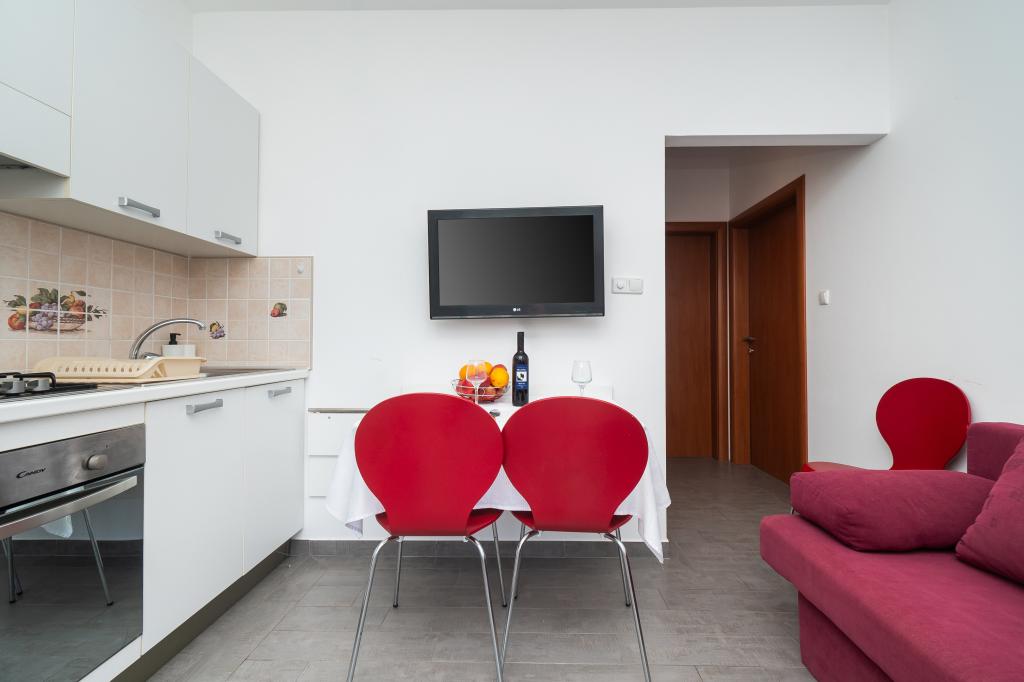 Lejligheden er rart, ren, moderne faciliteter. Ejer meget nyttigt. Vi vil helt sikkert komme tilbage igen. Omkring havet er en dejlig gåtur til centrum af wiren, hvor den lever. Ellers sted med fred og ro overnatning, tæt på havet, lavvandede sand velegnet til små børn. 15 minutters kørsel til Sibenik på et større køb.