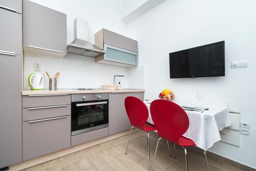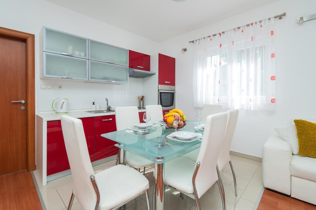 Vi anbefaler disse lejligheder !!! De er smukke, meget godt udstyret og ren. I et roligt område og tæt ved havet .Krásná slentre i Vodice er bare 30min.pěšky. Der er en masse muligheder for děti- masse attraktioner atd.Vlastnici kurser er meget søde mennesker, og det er en hilsen.