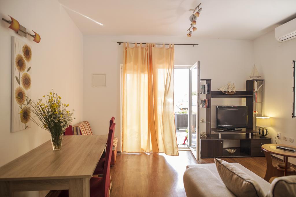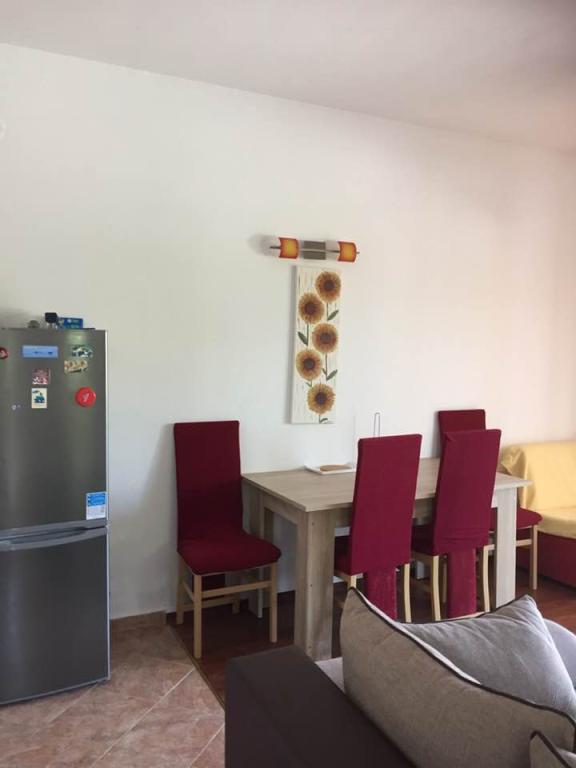 Fuldt udstyret lejligheder i en rolig del af Srima, 60 meter fra sandstranden. I nærheden er der en legeplads, promenade, restaurant, butik .... Lejlighederne er fuldt møblerede. Foran lejligheden er der en terrasse med fri parkering. Et ideelt sted for en familieferie med børn, Ved siden af huset med 4 lejligheder har vi også et sommerhus til fire personer. De er placeret den ene til den anden. Husdyr er tilladt efter forudgående aftale Vi har mulighed for at indtaste en barneseng i soveværelset.