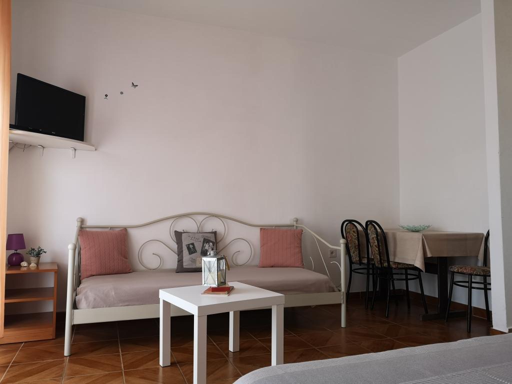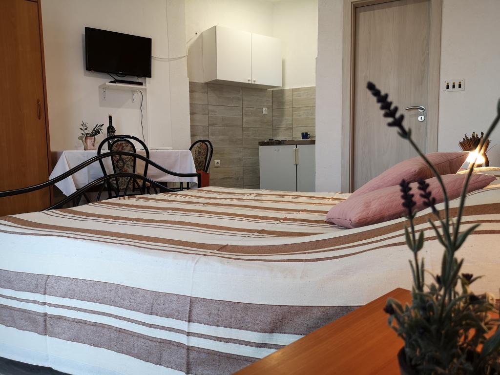 Villa Nina er et familiehus beliggende i den lille by Srima, i umiddelbar nærhed af byen Vodice. Det har 7 studiolejligheder ved havet, kun 20 m fra sandstranden. Lejlighederne har aircondition, satellit-tv og WiFi. De fleste lejligheder har terrasser/altaner med udsigt over havet, øerne, byen Vodice og Tribunj. Parkering er gratis og er placeret foran villaen. I lejligheden er der en restaurant med fremragende dalmatiske grillretter.