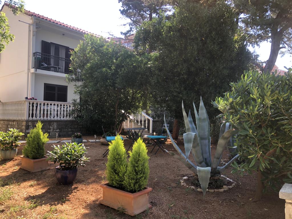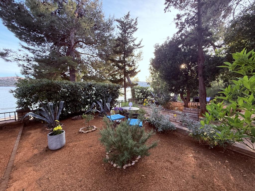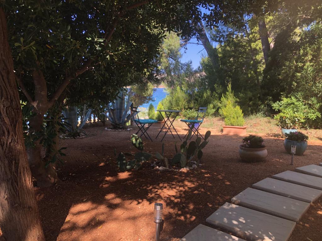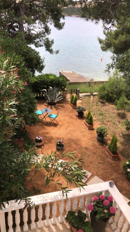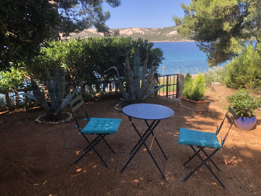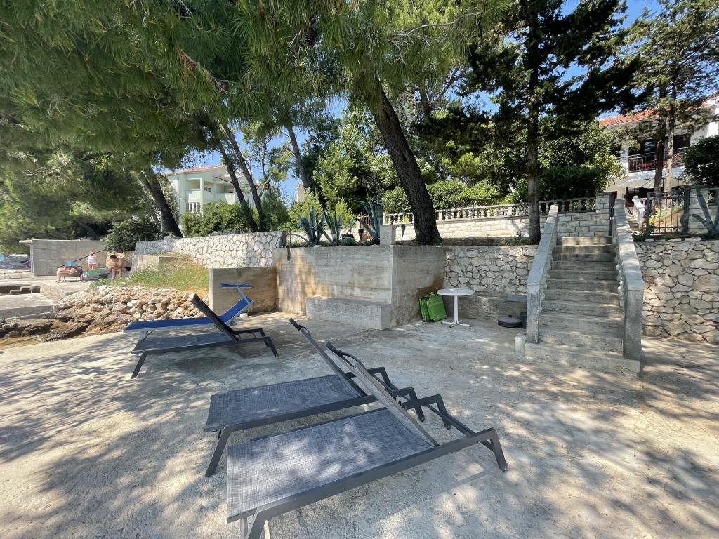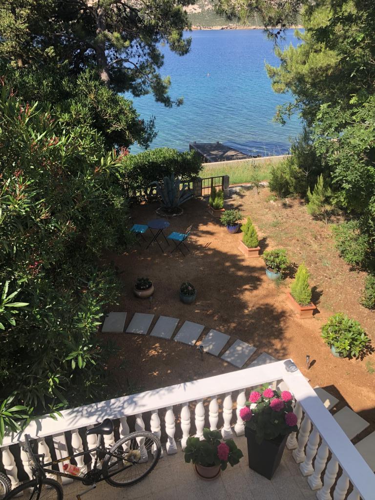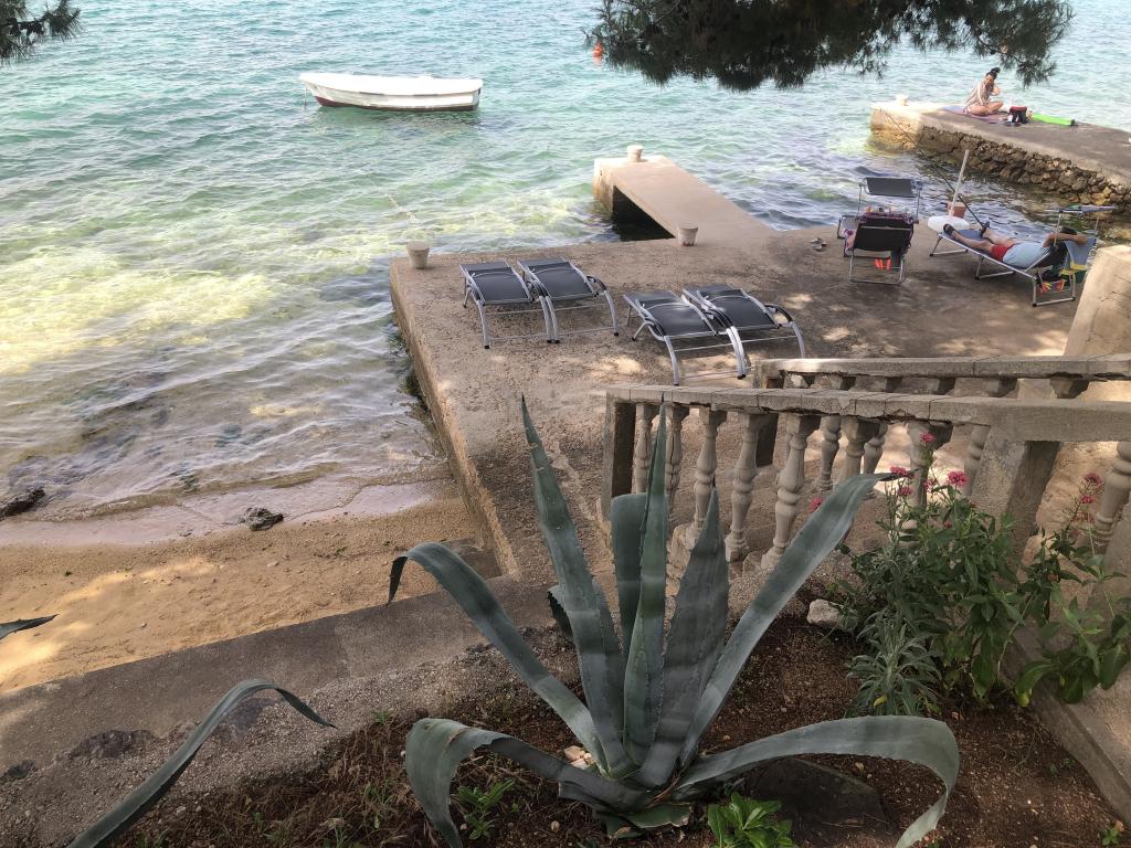 Alle 4 lejligheder benytter en privat strand foran huset med liggestole og bruser samt skygge fra fyrretræer. 1. Lejlighed A4+2 i stueetagen i et romantisk hus, første række til havet (10 m). Den har to soveværelser og en sovesofa i stuen. Lejligheden har adgang til sin egen store terrasse med en smuk havudsigt. Ideel til en familie med børn og også til en gruppe på op til 5 venner. Det er muligt at leje lejlighed A4+1 på første sal i samme hus og bruge hele huset. 2. Lejlighed A4+1 på 1. sal har 2 soveværelser og en ekstra seng i stuen. Den har en balkon med en fantastisk udsigt og en privat terrasse på 20m2. 3. Studiolejligheden ligger i et andet mindre hus i haven bag det første hus, 30 meter fra havet. 4. Lejlighed A2+2 ligger i et andet mindre hus i haven bag det første hus, 30 meter fra havet. Fred og privatliv, især i juni og september, er fordelene ved disse lejligheder, som mange har kaldt som himlen på jorden. Kæledyr er ikke tilladt (små hunde op til 7 kg efter anmodning).