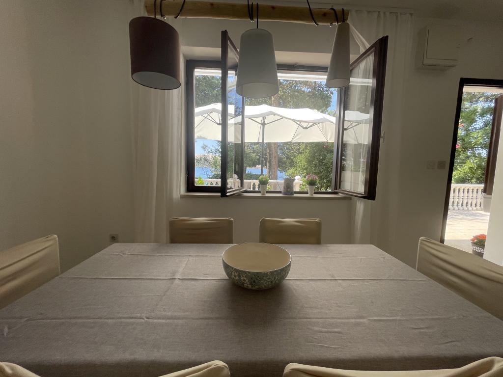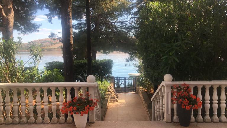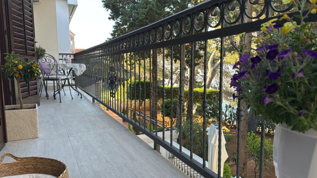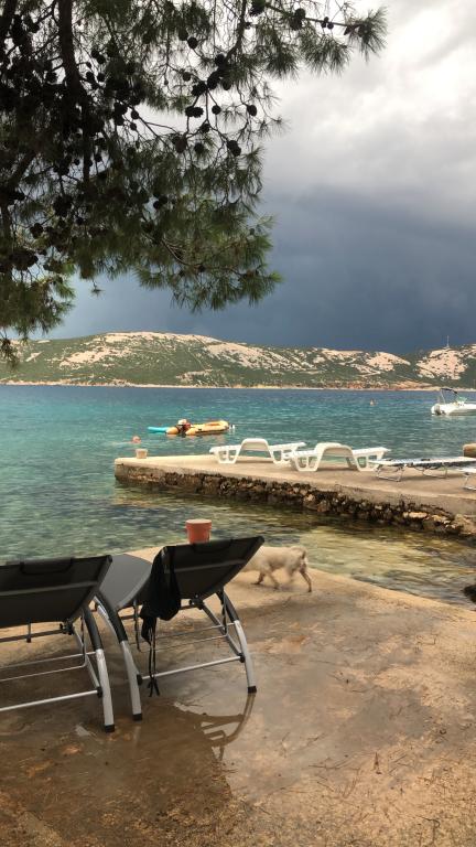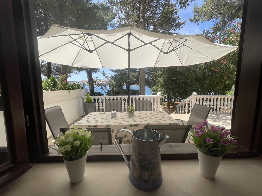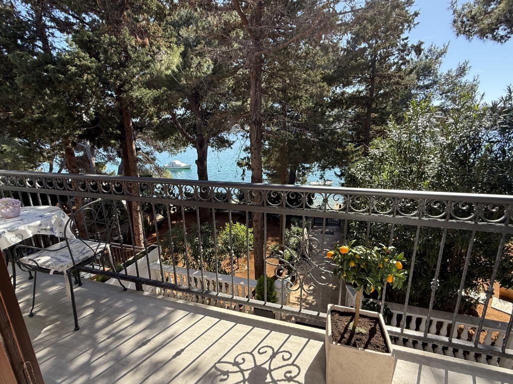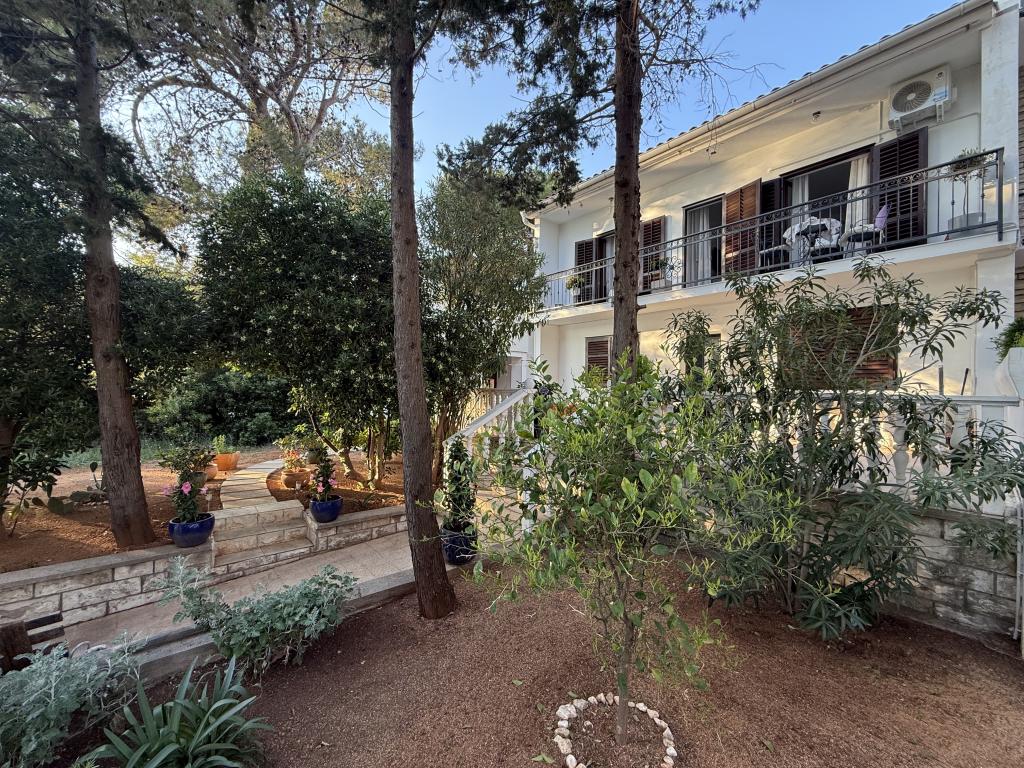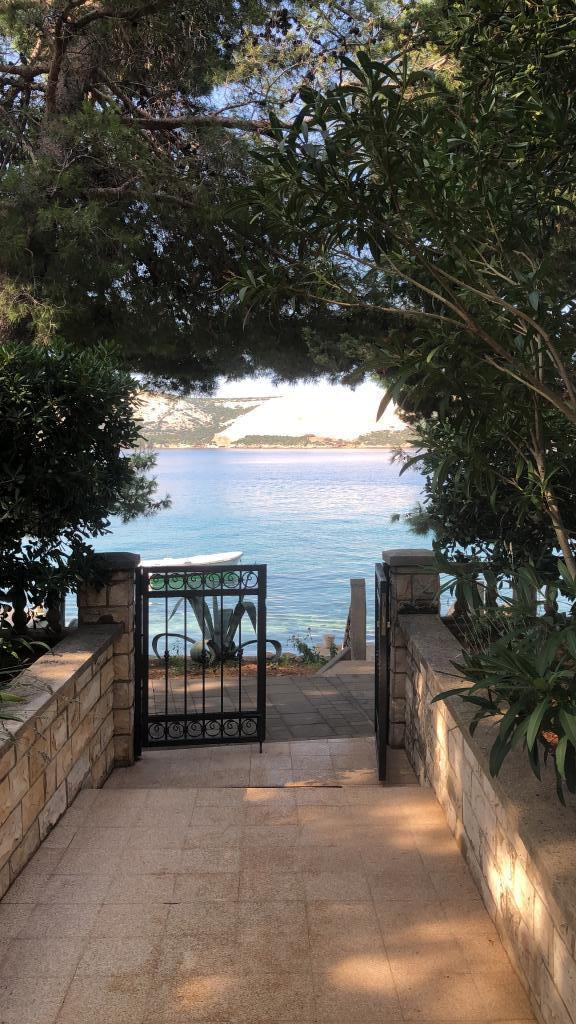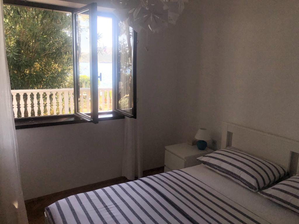 Alle 4 lejligheder benytter en privat strand foran huset med liggestole og bruser samt skygge fra fyrretræer. 1. Lejlighed A4+2 i stueetagen i et romantisk hus, første række til havet (10 m). Den har to soveværelser og en sovesofa i stuen. Lejligheden har adgang til sin egen store terrasse med en smuk havudsigt. Ideel til en familie med børn og også til en gruppe på op til 5 venner. Det er muligt at leje lejlighed A4+1 på første sal i samme hus og bruge hele huset. 2. Lejlighed A4+1 på 1. sal har 2 soveværelser og en ekstra seng i stuen. Den har en balkon med en fantastisk udsigt og en privat terrasse på 20m2. 3. Studiolejligheden ligger i et andet mindre hus i haven bag det første hus, 30 meter fra havet. 4. Lejlighed A2+2 ligger i et andet mindre hus i haven bag det første hus, 30 meter fra havet. Fred og privatliv, især i juni og september, er fordelene ved disse lejligheder, som mange har kaldt som himlen på jorden. Kæledyr er ikke tilladt (små hunde op til 7 kg efter anmodning).