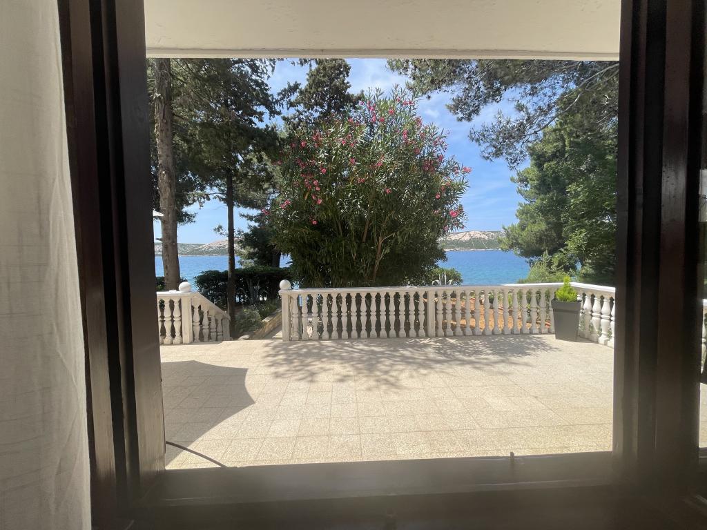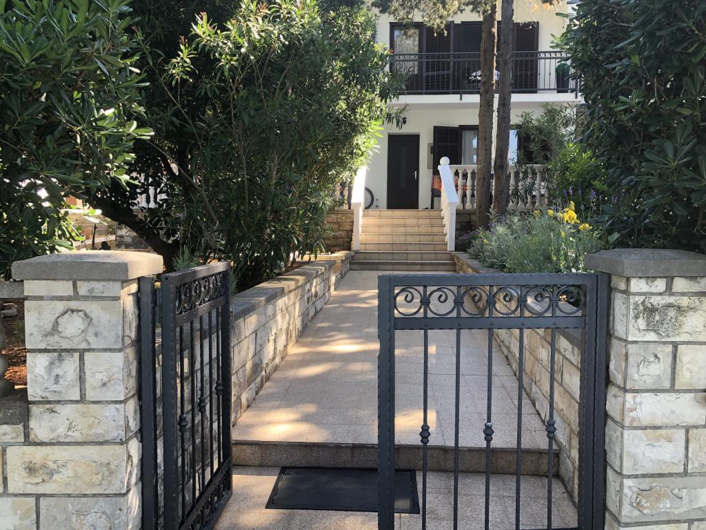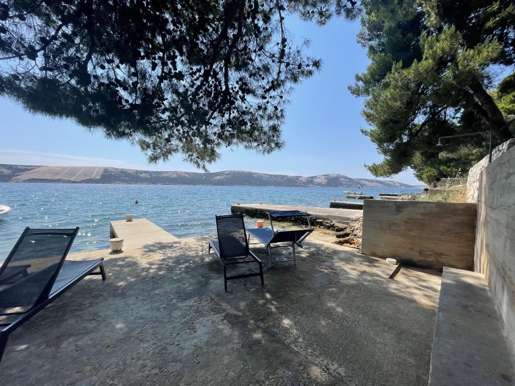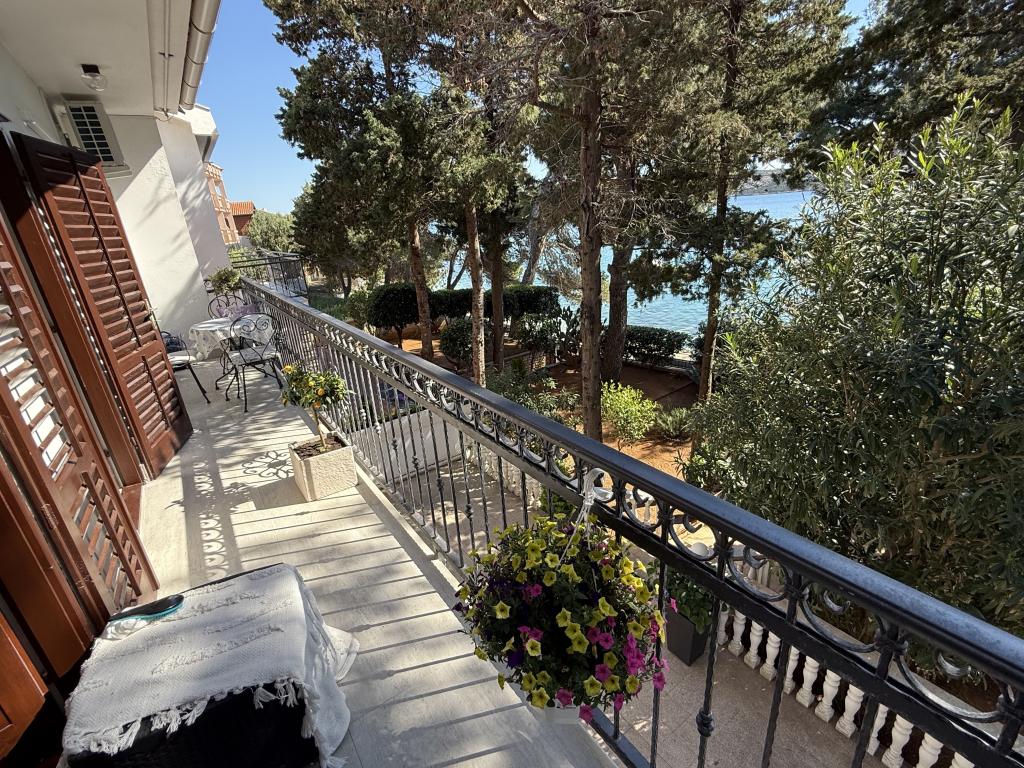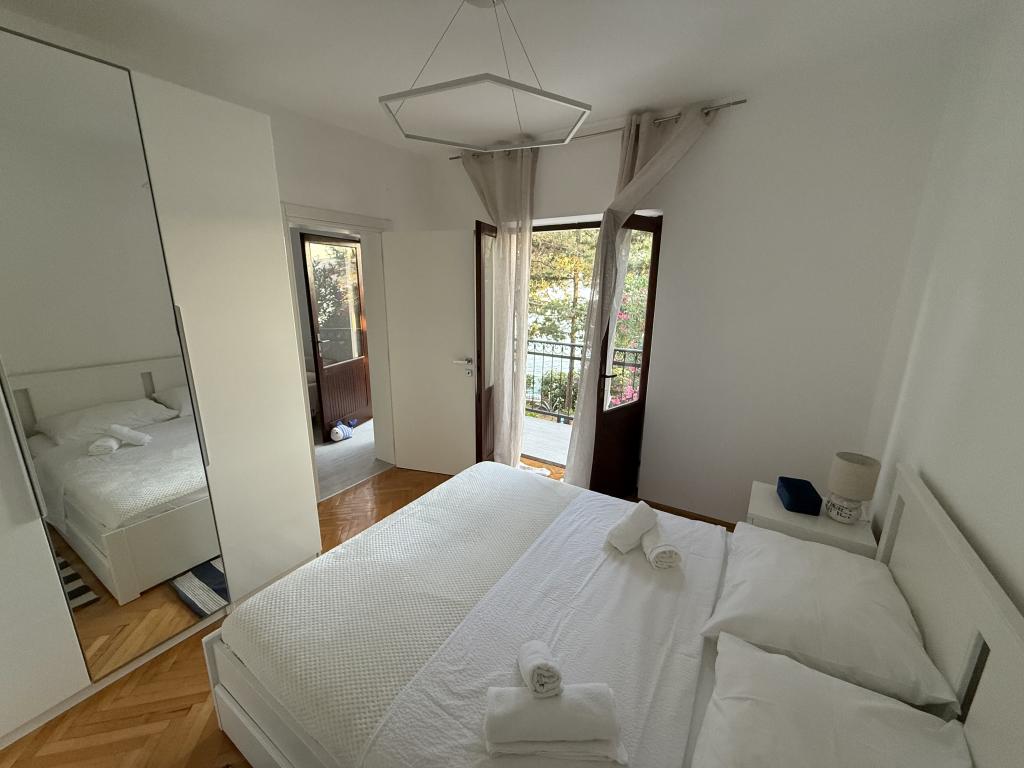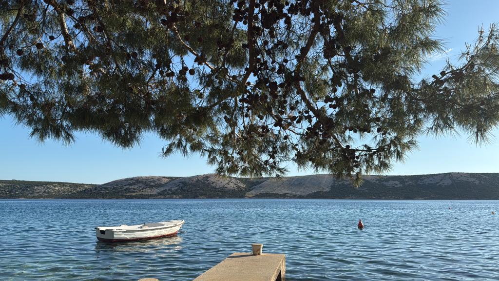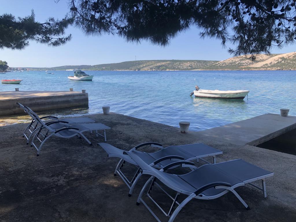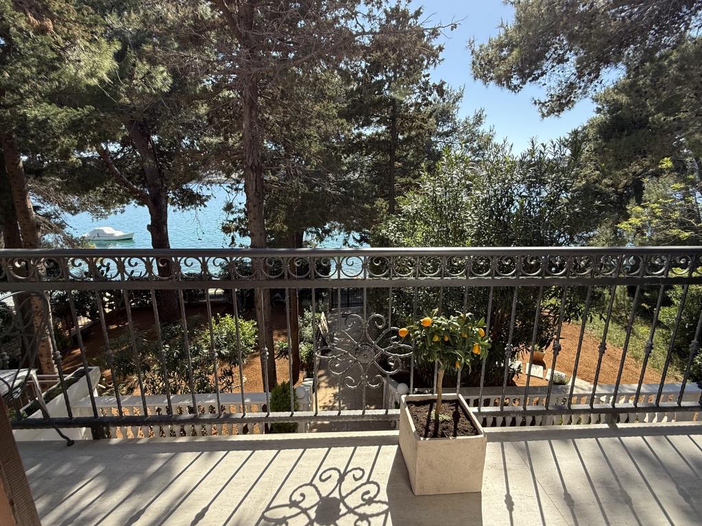 Alle 4 lejligheder benytter en privat strand foran huset med liggestole og bruser samt skygge fra fyrretræer. 1. Lejlighed A4+2 i stueetagen i et romantisk hus, første række til havet (10 m). Den har to soveværelser og en sovesofa i stuen. Lejligheden har adgang til sin egen store terrasse med en smuk havudsigt. Ideel til en familie med børn og også til en gruppe på op til 5 venner. Det er muligt at leje lejlighed A4+1 på første sal i samme hus og bruge hele huset. 2. Lejlighed A4+1 på 1. sal har 2 soveværelser og en ekstra seng i stuen. Den har en balkon med en fantastisk udsigt og en privat terrasse på 20m2. 3. Studiolejligheden ligger i et andet mindre hus i haven bag det første hus, 30 meter fra havet. 4. Lejlighed A2+2 ligger i et andet mindre hus i haven bag det første hus, 30 meter fra havet. Fred og privatliv, især i juni og september, er fordelene ved disse lejligheder, som mange har kaldt som himlen på jorden. Kæledyr er ikke tilladt (små hunde op til 7 kg efter anmodning).