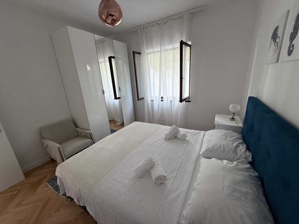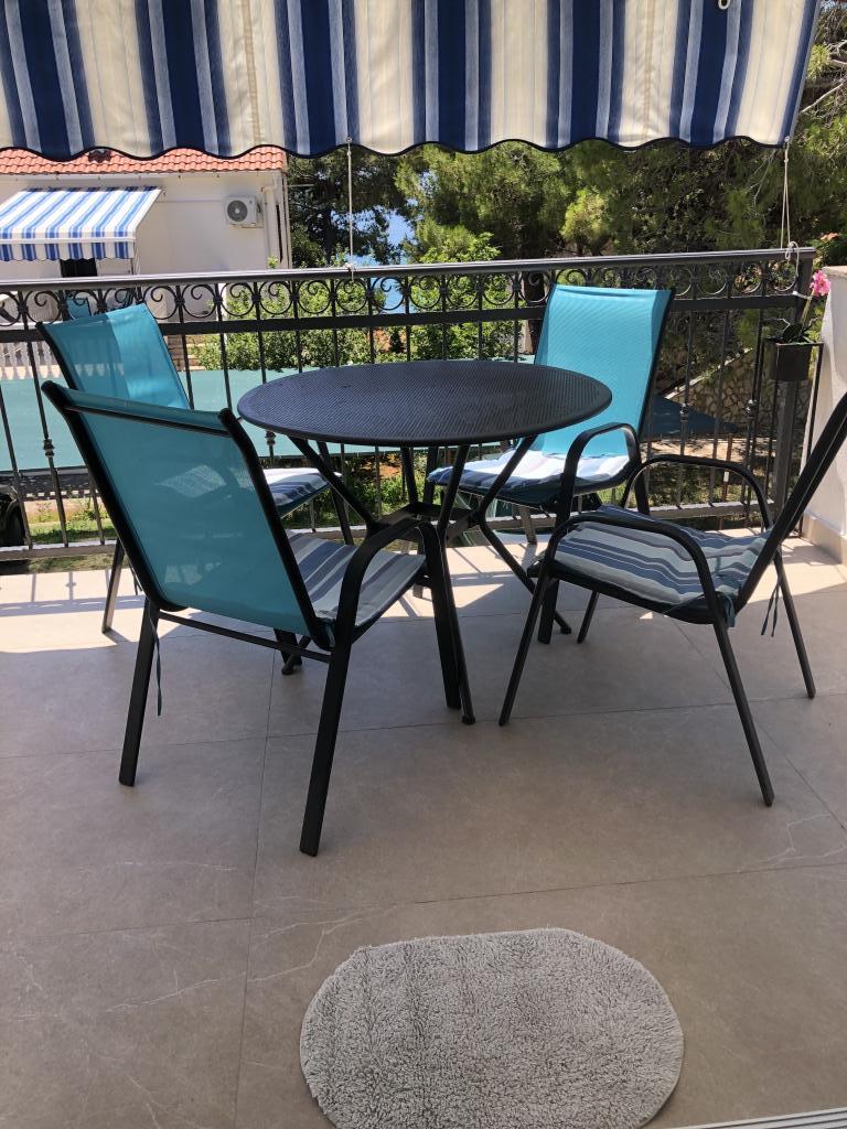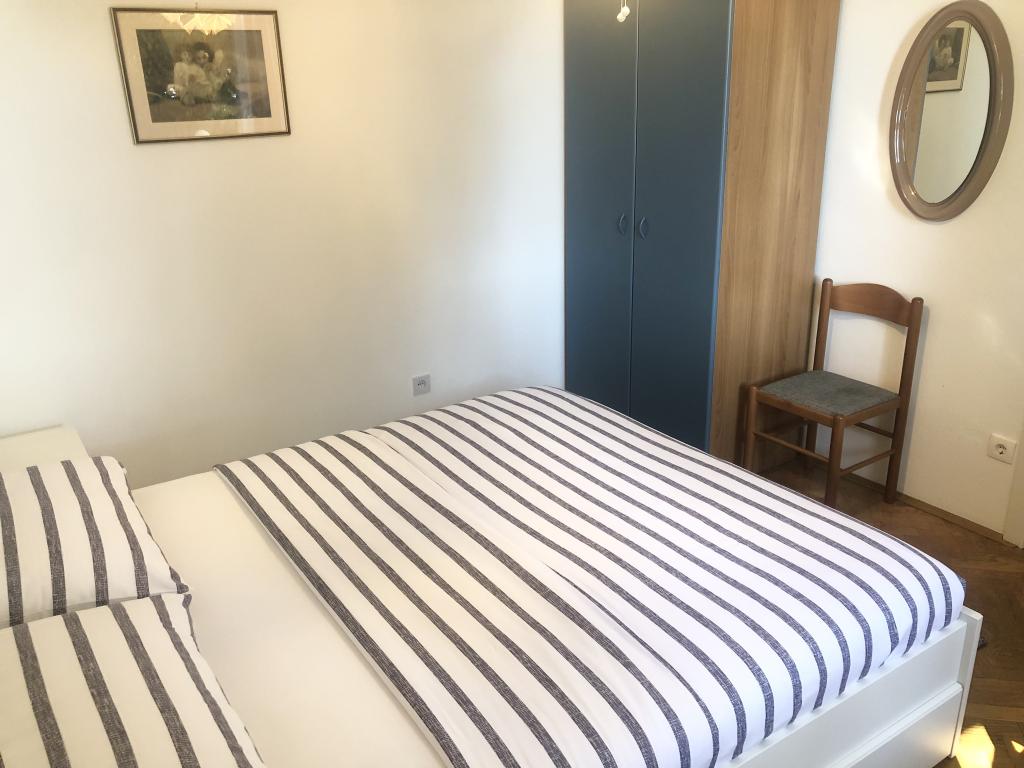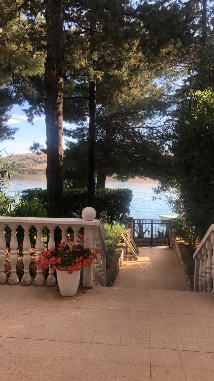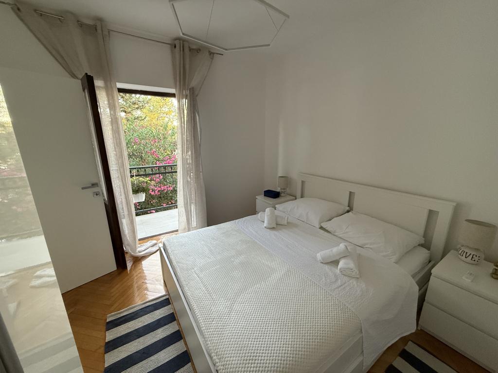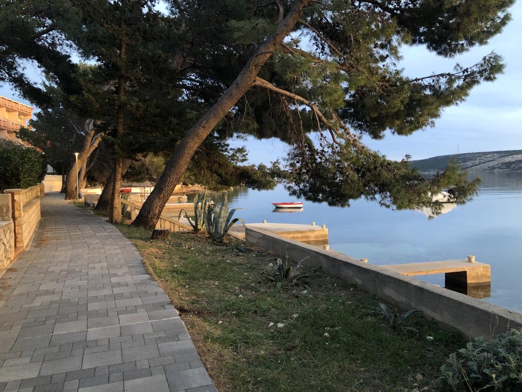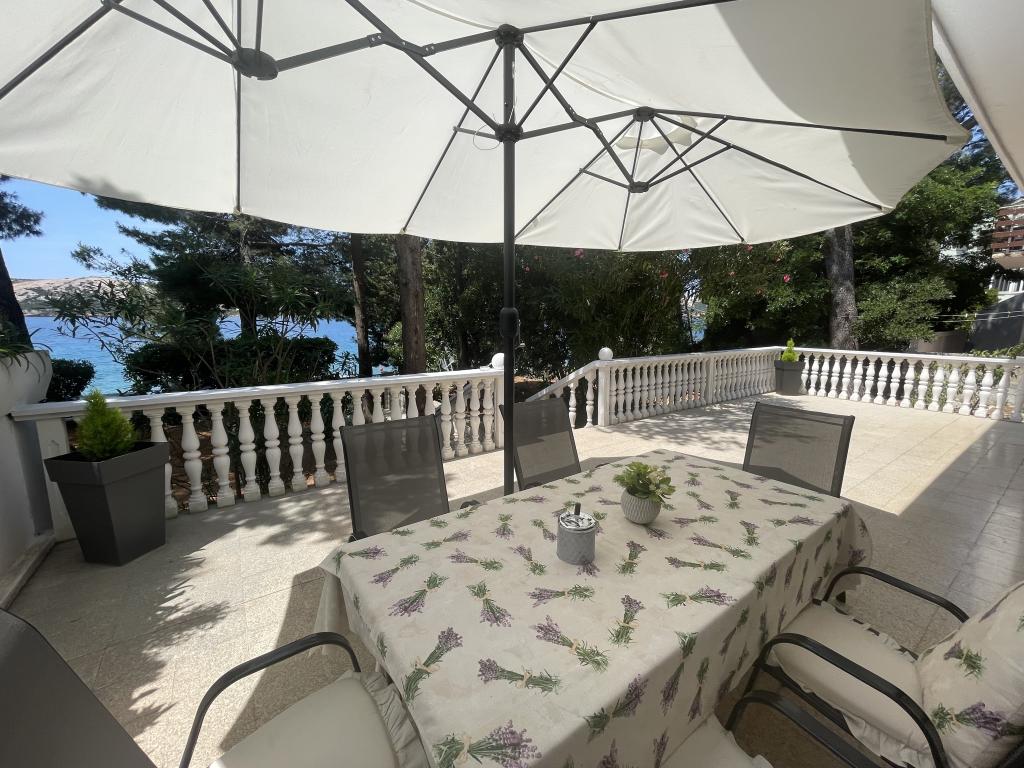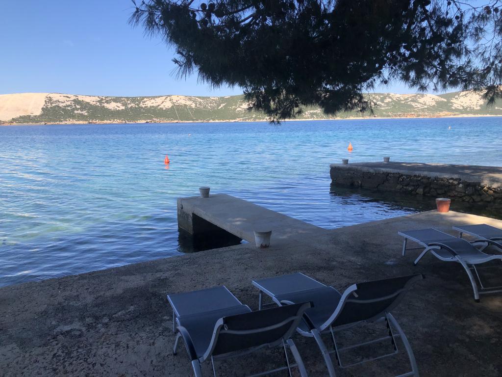 Alle 4 lejligheder benytter en privat strand foran huset med liggestole og bruser samt skygge fra fyrretræer. 1. Lejlighed A4+2 i stueetagen i et romantisk hus, første række til havet (10 m). Den har to soveværelser og en sovesofa i stuen. Lejligheden har adgang til sin egen store terrasse med en smuk havudsigt. Ideel til en familie med børn og også til en gruppe på op til 5 venner. Det er muligt at leje lejlighed A4+1 på første sal i samme hus og bruge hele huset. 2. Lejlighed A4+1 på 1. sal har 2 soveværelser og en ekstra seng i stuen. Den har en balkon med en fantastisk udsigt og en privat terrasse på 20m2. 3. Studiolejligheden ligger i et andet mindre hus i haven bag det første hus, 30 meter fra havet. 4. Lejlighed A2+2 ligger i et andet mindre hus i haven bag det første hus, 30 meter fra havet. Fred og privatliv, især i juni og september, er fordelene ved disse lejligheder, som mange har kaldt som himlen på jorden. Kæledyr er ikke tilladt (små hunde op til 7 kg efter anmodning).