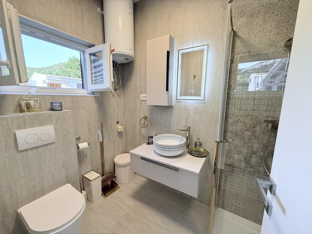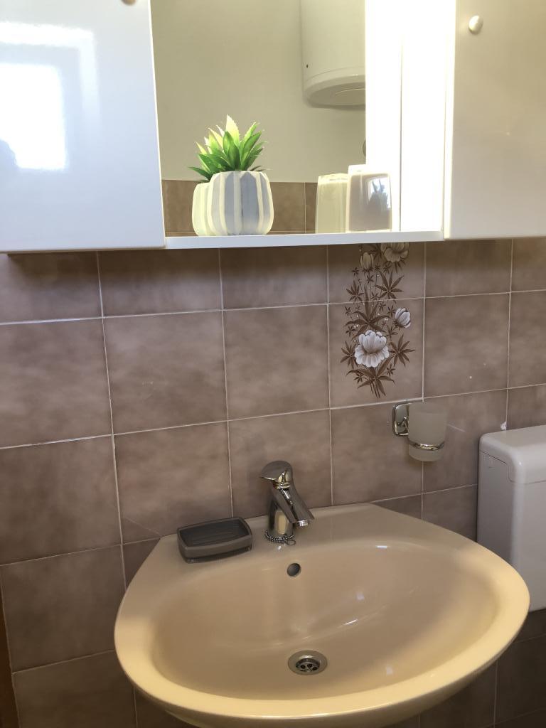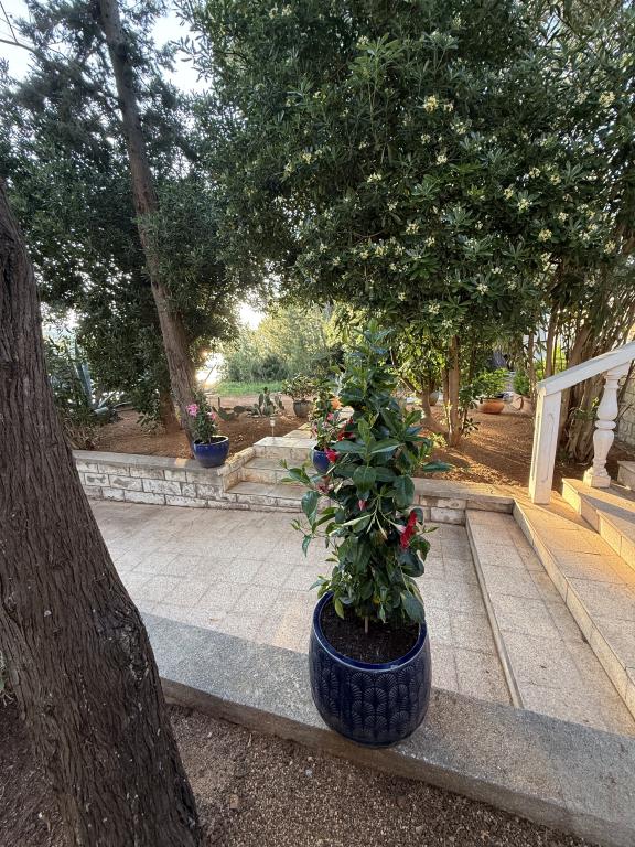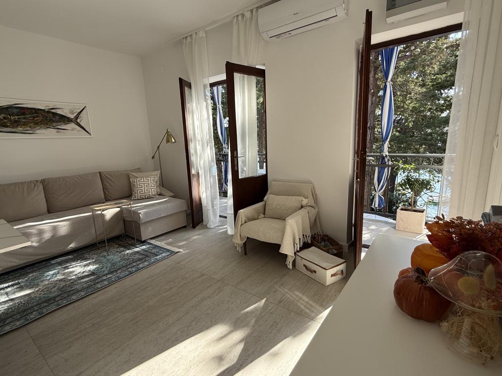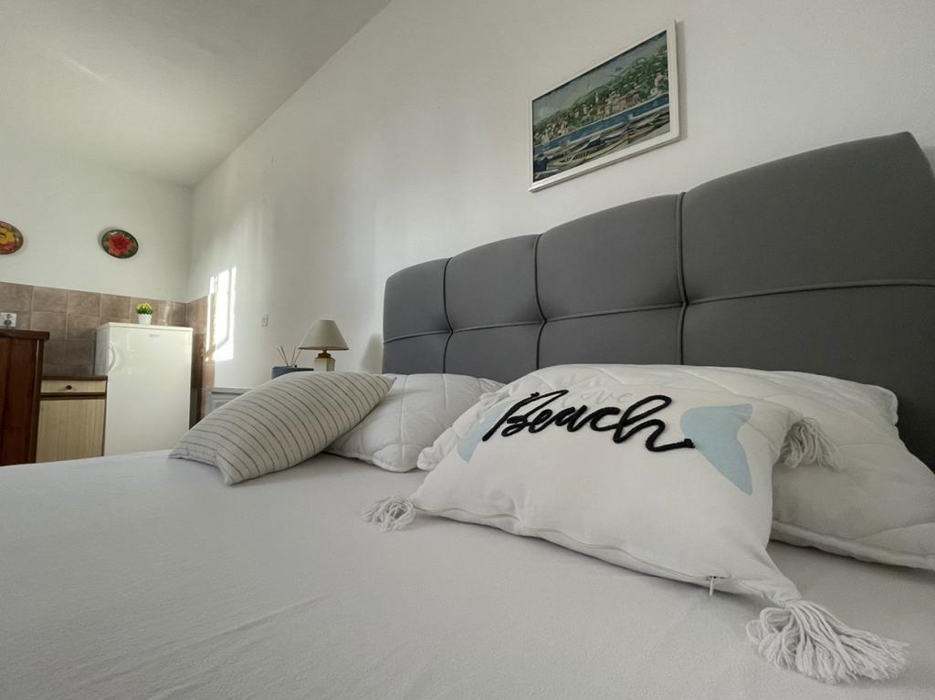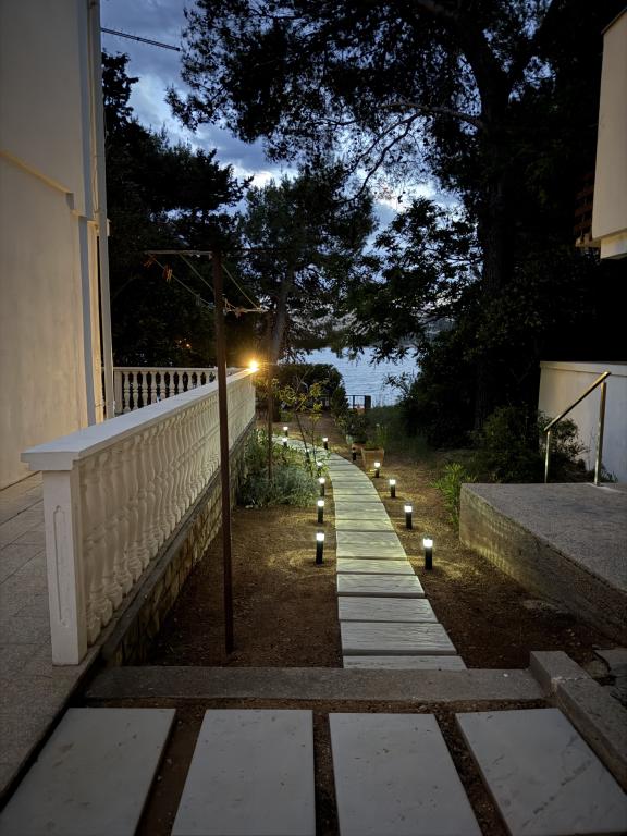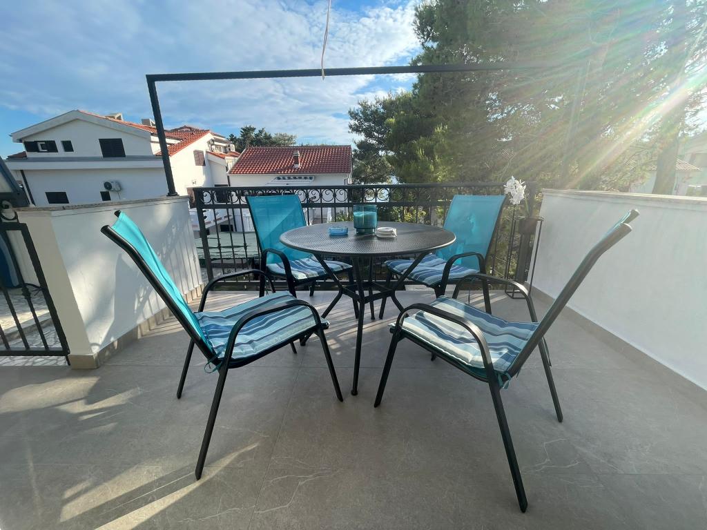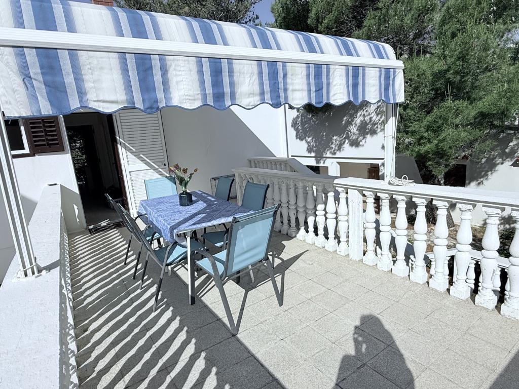 Alle 4 lejligheder benytter en privat strand foran huset med liggestole og bruser samt skygge fra fyrretræer. 1. Lejlighed A4+2 i stueetagen i et romantisk hus, første række til havet (10 m). Den har to soveværelser og en sovesofa i stuen. Lejligheden har adgang til sin egen store terrasse med en smuk havudsigt. Ideel til en familie med børn og også til en gruppe på op til 5 venner. Det er muligt at leje lejlighed A4+1 på første sal i samme hus og bruge hele huset. 2. Lejlighed A4+1 på 1. sal har 2 soveværelser og en ekstra seng i stuen. Den har en balkon med en fantastisk udsigt og en privat terrasse på 20m2. 3. Studiolejligheden ligger i et andet mindre hus i haven bag det første hus, 30 meter fra havet. 4. Lejlighed A2+2 ligger i et andet mindre hus i haven bag det første hus, 30 meter fra havet. Fred og privatliv, især i juni og september, er fordelene ved disse lejligheder, som mange har kaldt som himlen på jorden. Kæledyr er ikke tilladt (små hunde op til 7 kg efter anmodning).