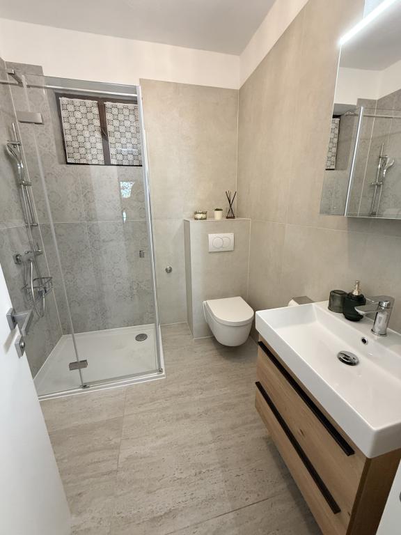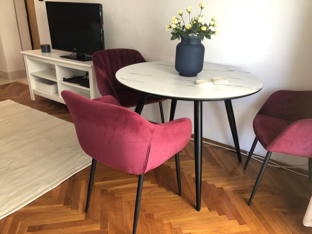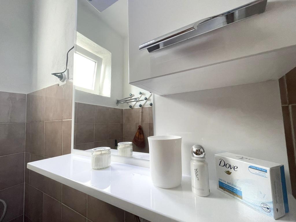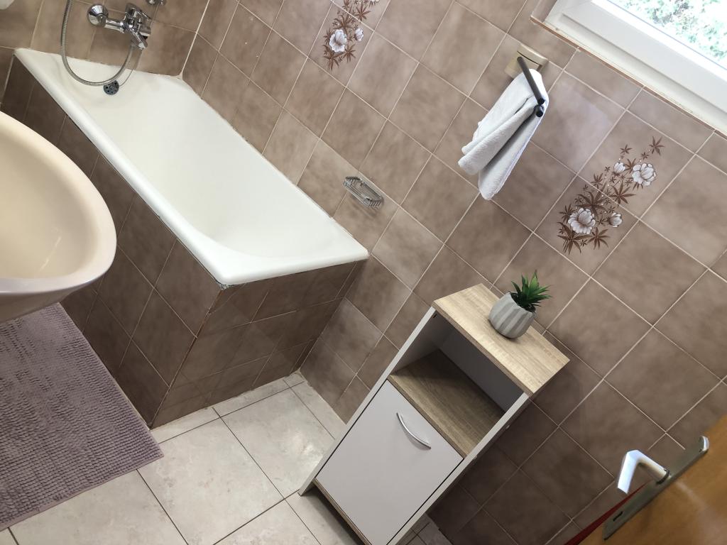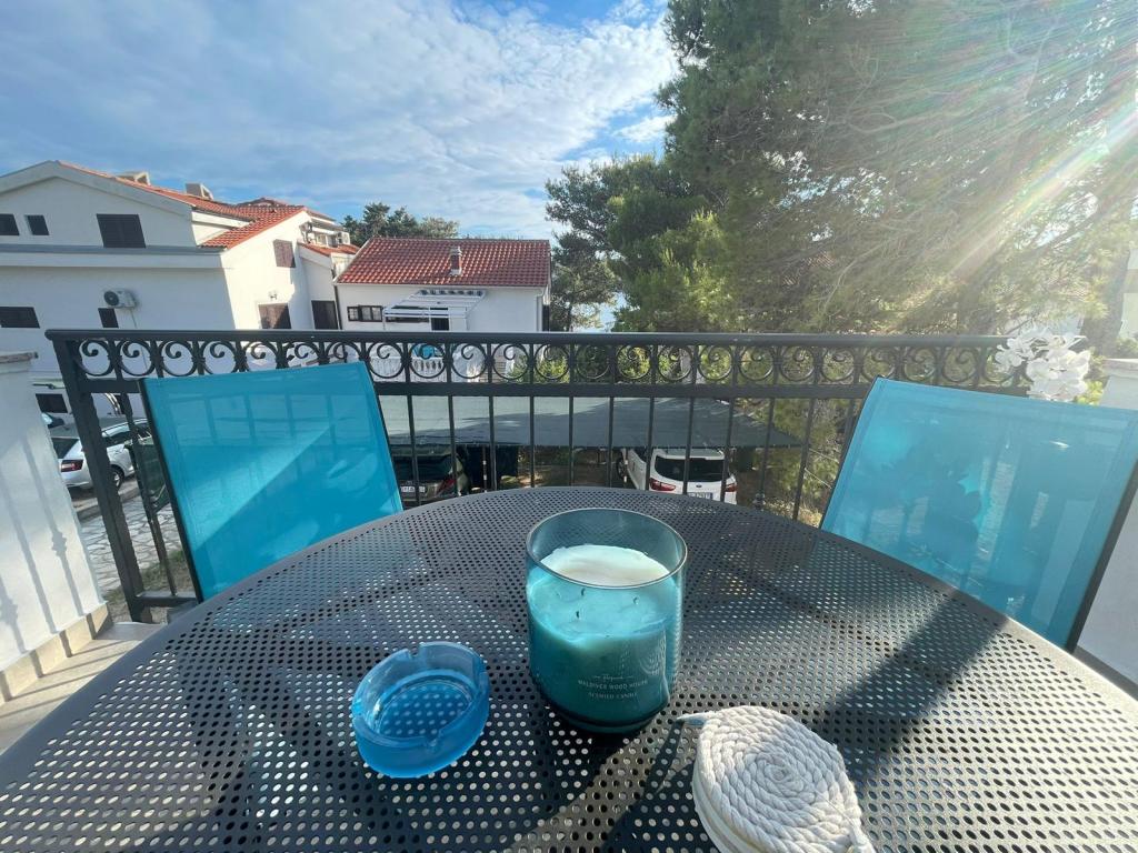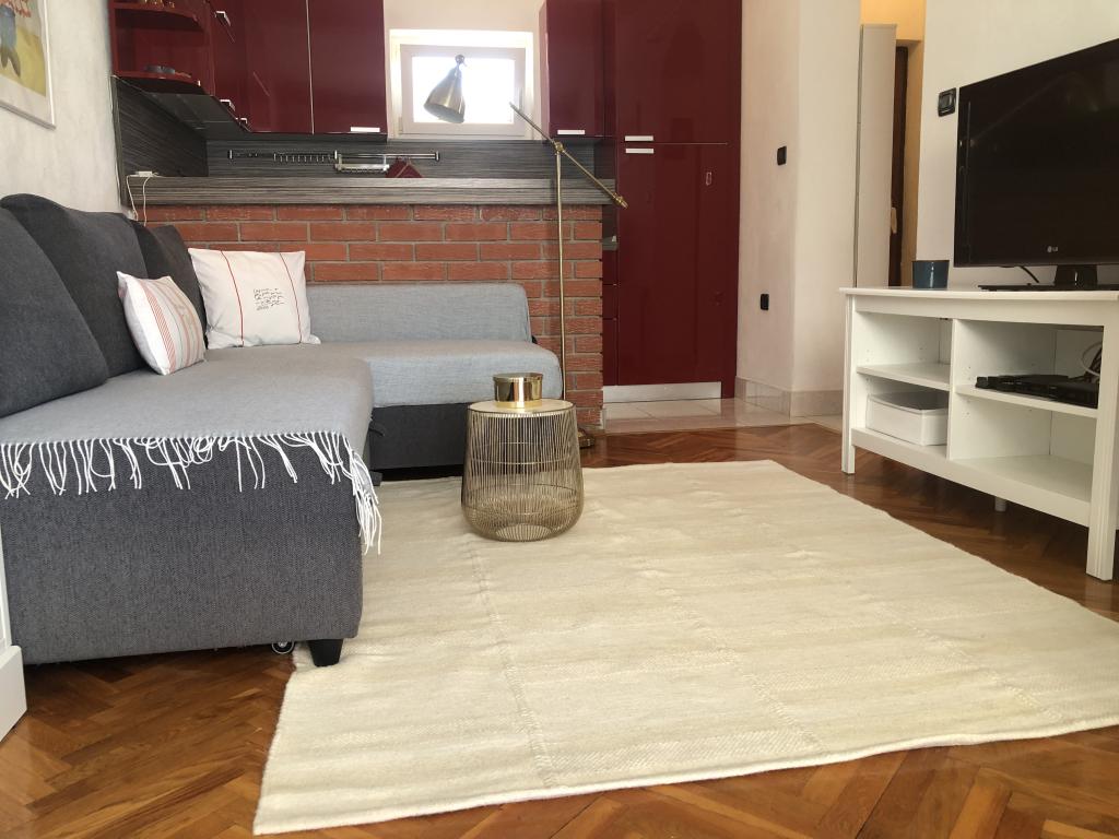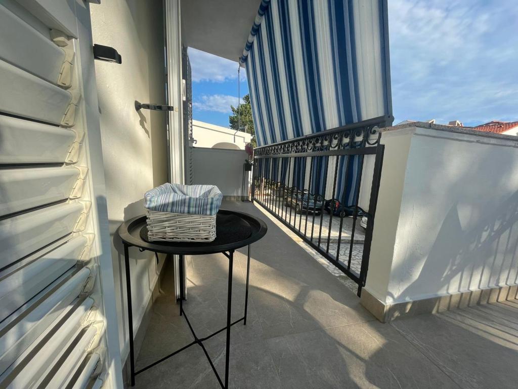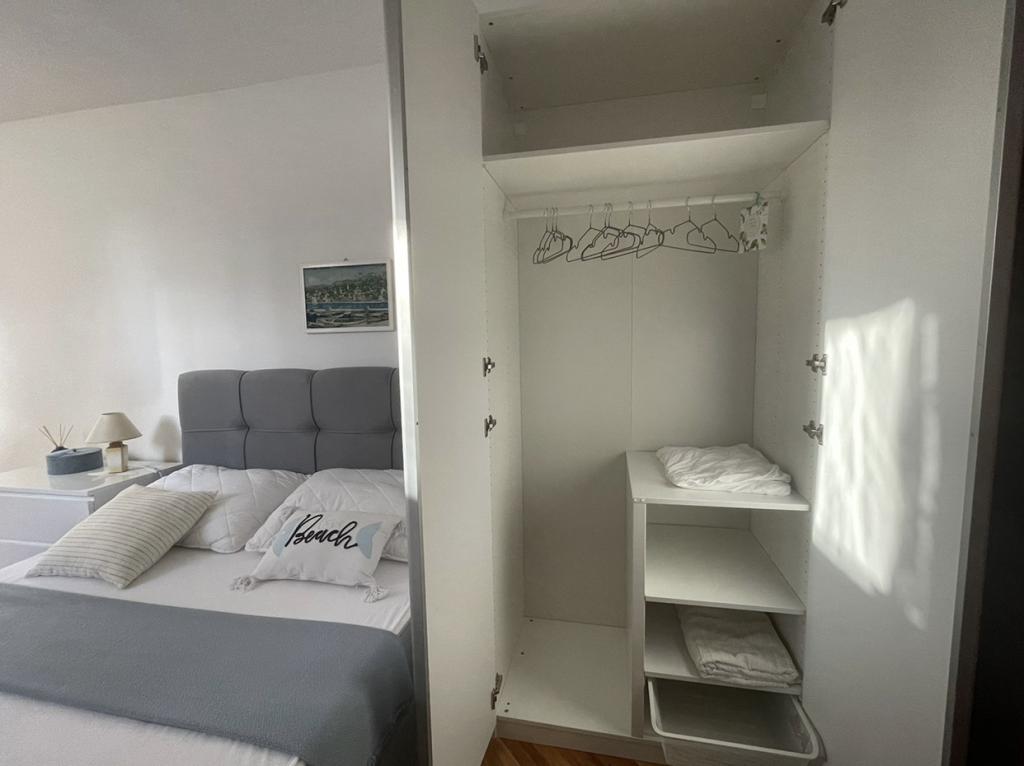 Alle 4 lejligheder benytter en privat strand foran huset med liggestole og bruser samt skygge fra fyrretræer. 1. Lejlighed A4+2 i stueetagen i et romantisk hus, første række til havet (10 m). Den har to soveværelser og en sovesofa i stuen. Lejligheden har adgang til sin egen store terrasse med en smuk havudsigt. Ideel til en familie med børn og også til en gruppe på op til 5 venner. Det er muligt at leje lejlighed A4+1 på første sal i samme hus og bruge hele huset. 2. Lejlighed A4+1 på 1. sal har 2 soveværelser og en ekstra seng i stuen. Den har en balkon med en fantastisk udsigt og en privat terrasse på 20m2. 3. Studiolejligheden ligger i et andet mindre hus i haven bag det første hus, 30 meter fra havet. 4. Lejlighed A2+2 ligger i et andet mindre hus i haven bag det første hus, 30 meter fra havet. Fred og privatliv, især i juni og september, er fordelene ved disse lejligheder, som mange har kaldt som himlen på jorden. Kæledyr er ikke tilladt (små hunde op til 7 kg efter anmodning).
