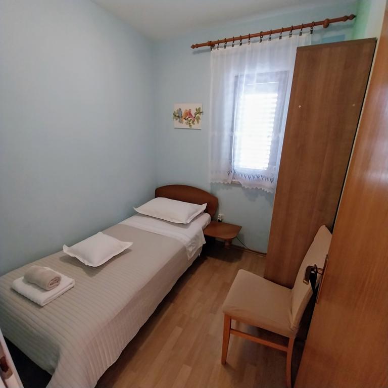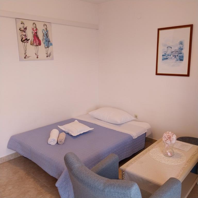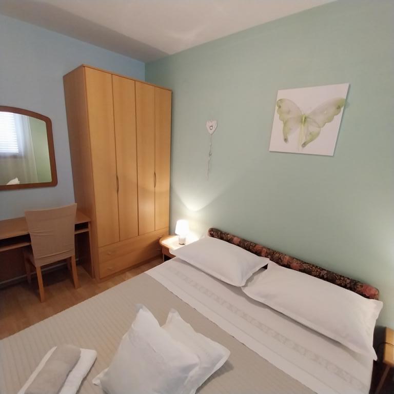 Lejlighed 3+1 har et køkken med spisestue og stue, et dobbeltværelse og et enkeltværelse samt et badeværelse med toilet. Lejligheden er komfortabel til tre personer og har mulighed for en ekstra seng i spisestuen til 1 person. Lejlighed 2 har køkken, spisestue, soveværelse og badeværelse. Lejligheden er komfortabel til to personer og har mulighed for en ekstra seng i spisestuen til et lille barn. Lejlighed 2+1 er placeret på husets loft og er den eneste boligenhed på etagen. Lejligheden har et køkken med spiseplads, et soveværelse, et toilet og et badeværelse samt en terrasse. Lejligheden er komfortabel til 2 personer og har en ekstra seng i spisestuen til en tredje person. Huset med lejligheder ligger i en rolig del af byen, kun 5 minutters gang fra stranden og 10 minutters gang fra byen. Lejlighederne Zlata, byen Stari Grad på øen Hvar, er det rette sted til din ferie. Nyd havet, solen og de veludstyrede lejligheder, og tilbring en uforglemmelig ferie på Hvar, en af de smukkeste øer i verden.