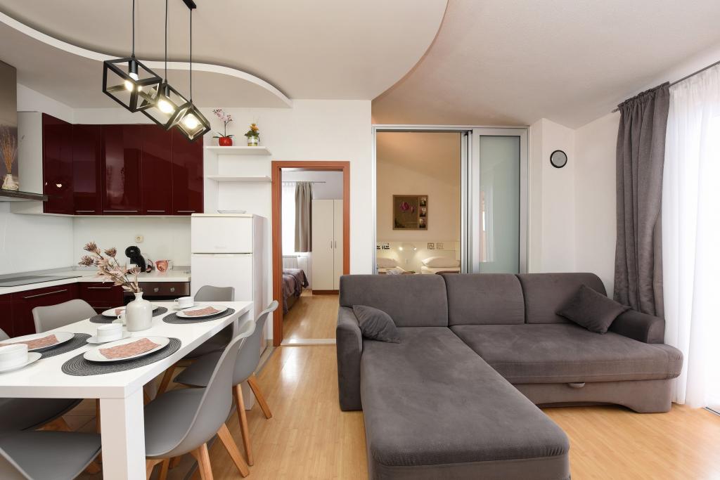 Lejligheder i Starigrad Paklenica, 190 m fra havet, 2 km fra Paklenica National Park. Vi har flere lejligheder: studielejlighed til 2 personer, lejlighed til 2 personer og 1 soveværelse, lejlighed til 4 personer med to soveværelser. Lejlighederne er fuldt udstyrede, aircondition, wifi, kaffemaskine, mikroovn, kedel, TV / 2Sat, pengeskab, opvaskemaskine, håndklæder pr. person, hårtørrer, aircondition, centralvarme, ... Du kan tilbringe din ferie med svømning og solbadning på stranden eller aktiv ferie, gå gennem Velebit, klatring i Paklenica National Park, cykling, kajaksejlads, rafting på Zrmanja, bådtur ...