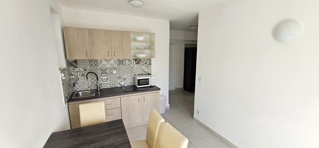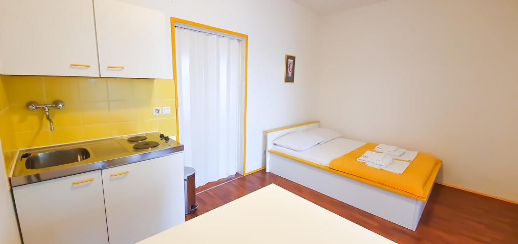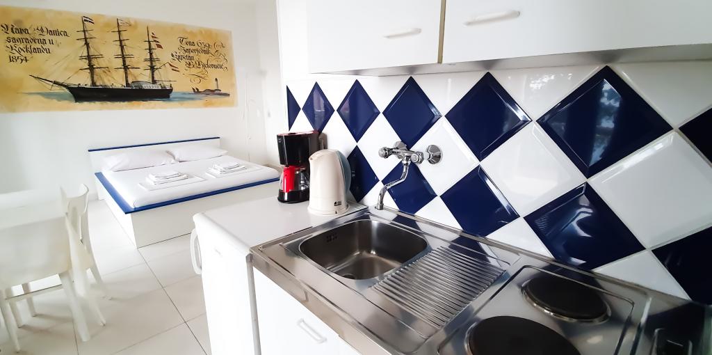 Hyggelig studiolejlighed med smuk udsigt og terrasse kun få skridt fra havet. Venlige ejere. Vi anbefaler.
