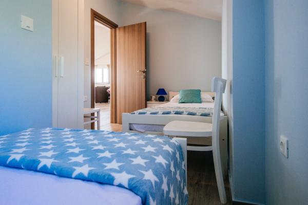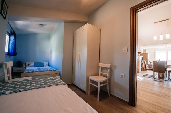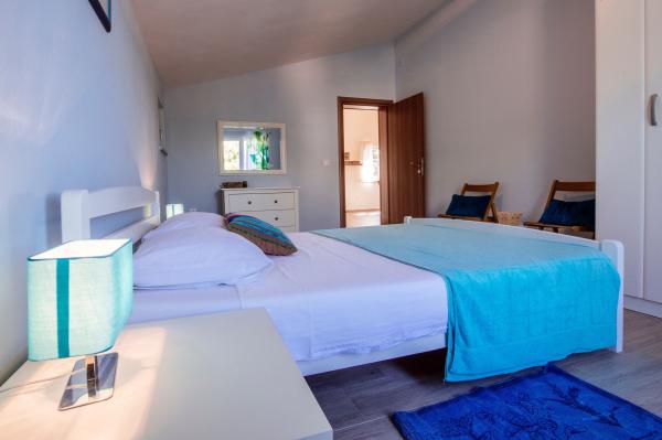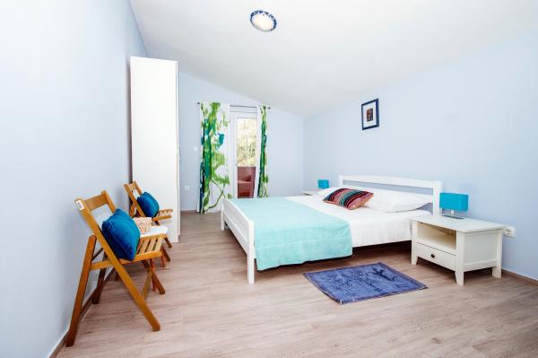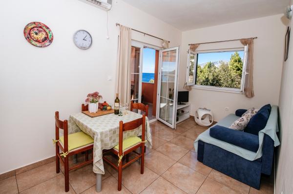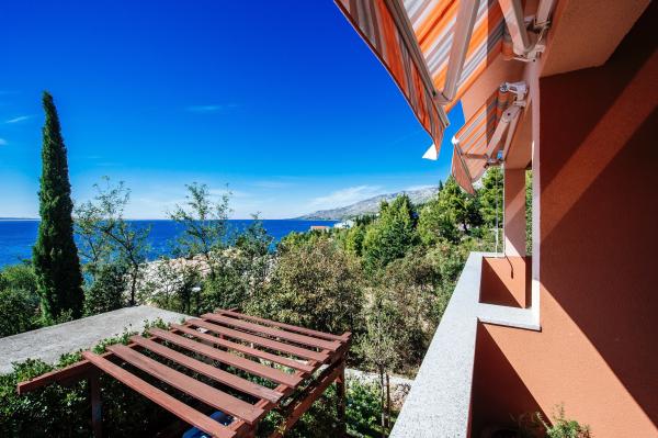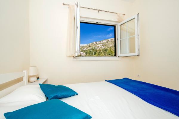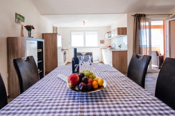 moderne udstyrede lejligheder med balkon, to soveværelser og stue med køkken, havudsigt i en rolig del af Starigrad. 60 m fra havet og 1,5 km fra Nationalparken. Afstand fra centrum 500 m. Parkering i gården.