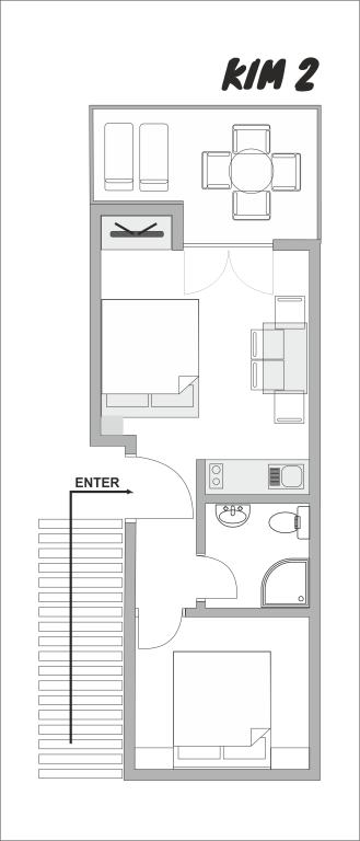 Vi udlejer i alt 2 lejligheder. Apartments Kim ligger i Starigrad-Paklenica, kun 130 meter fra stranden. Inden for 400 meter finder man caféer, restauranter, butikker, en slagter og alt hvad man behøver for at tilbringe sin ferie ubekymret. Der er også en direkte buslinje fra Zagreb (Zagreb-Starigrad Paklenica), der kører hver dag fra 15.06.-31.8. Lejlighederne ligger på 1. sal i huset med separat indgang fra bagsiden. Lejlighederne Kim 1 og Kim 2 er ens, med et opholdsareal på 30m2 og består af 1 soveværelse (med en seng på 160×200 cm og et klædeskab), badeværelse med bruser, stue med køkken og sovesofa (160×200 cm) og en balkon på 10m2. Lejlighederne er fuldt udstyrede og inkluderer håndklæder, sengelinned og service. Lejlighedsudstyr: • WiFi • GRILL i haven • MIKROOVN • AIRCONDITION • PARKERING • HÅRTØRRER • BRØDRISTER, KOMFUR, KAFFEMASKINE • SMART TV