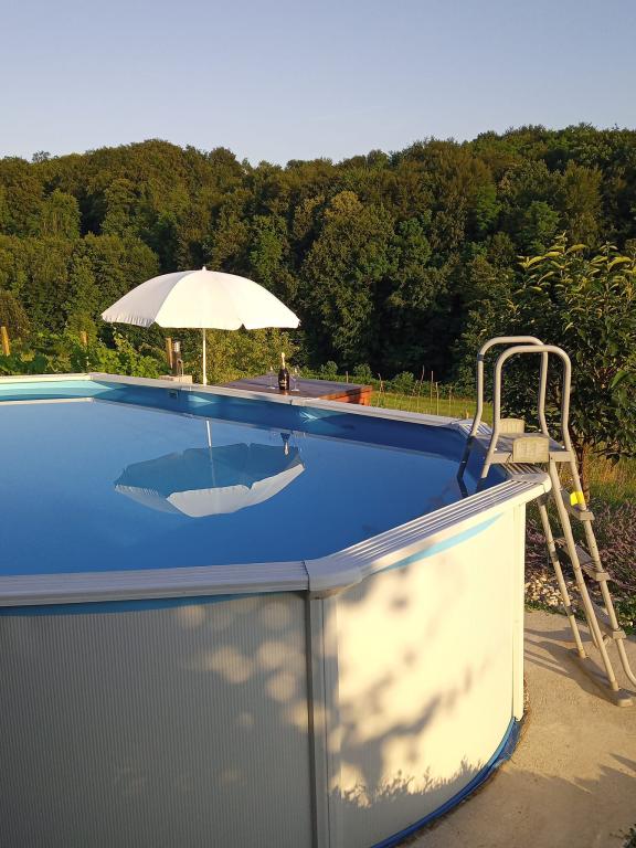 I en oase af fred og ro og 100 procent grønt, med duft af planter, i Grabrovnik 139, ligger Apartment Arena på første sal i et familiehus med 2 soveværelser x 2, stue. værelse og badeværelse. Den udvendige sydlige terrasse på 60 m2 tilhører ham til brug. med møbler til at sidde, solbade, grille, og der er også en præfabrikeret pool 610x360x120 cm. Badning, svømning eller solbadning i poolen, du har et bord med en paraply ved siden af poolen. Udsigten mod engen og skoven vil fange jer hjorte, spidser af græs i mange grønne nuancer. Der er også bål i haven, tag jer sammen og tænd bål og steg pølser eller nogle af jeres lækkerier på pind. Til udendørsaktiviteter har vi designet et sommerkøkken med vask og varmt vand til dig, en vaskemaskine og apparater, der skal bruges til dit udendørs ophold eller madlavning. I nærheden ligger kurbadene i St. Martin, Jelena farm, Mađerka lookout, skotsk kvægfarm, udendørs sports- og rekreationscenter, 25. vingård med topvine, Zmajev vrt, og tilbud om grøntsager i den indenlandske OP