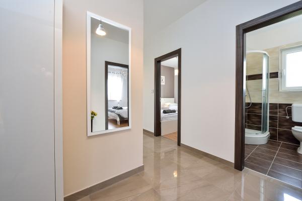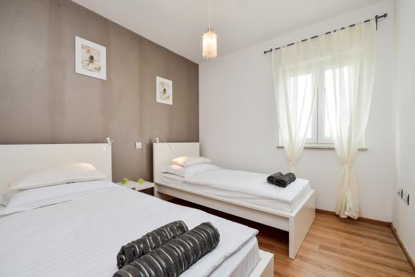 Lejligheden er indrettet på en moderne måde, ekstremt ren og tilgængelig med alt hvad du har brug for i husholdningen, hvert værelse har aircondition (vi har ikke haft det overalt endnu) Værterne har udarbejdet alle mulige instruktioner for at gøre det lettere at bo i lejligheden og kaldte den (f.eks. De nærmeste restauranter, butikker, steder, du kan besøge, prislister for levering af mad ....) for at nævne hjemmelavede urter, som du kan købe fra dem til en overkommelig pris og god. På hver etage er der et hjørne, hvor der er arrangeret bøger, billedbøger, puslespil, spil til børn ... Stranden ligger omkring 150 m væk fra lejligheden. Værter Kristina og Vinko er meget tilgængelige, venlige og klar til at besvare ethvert spørgsmål. Her sender vi dem hilsener og alt det bedste !! Sanja, Damir og Mia