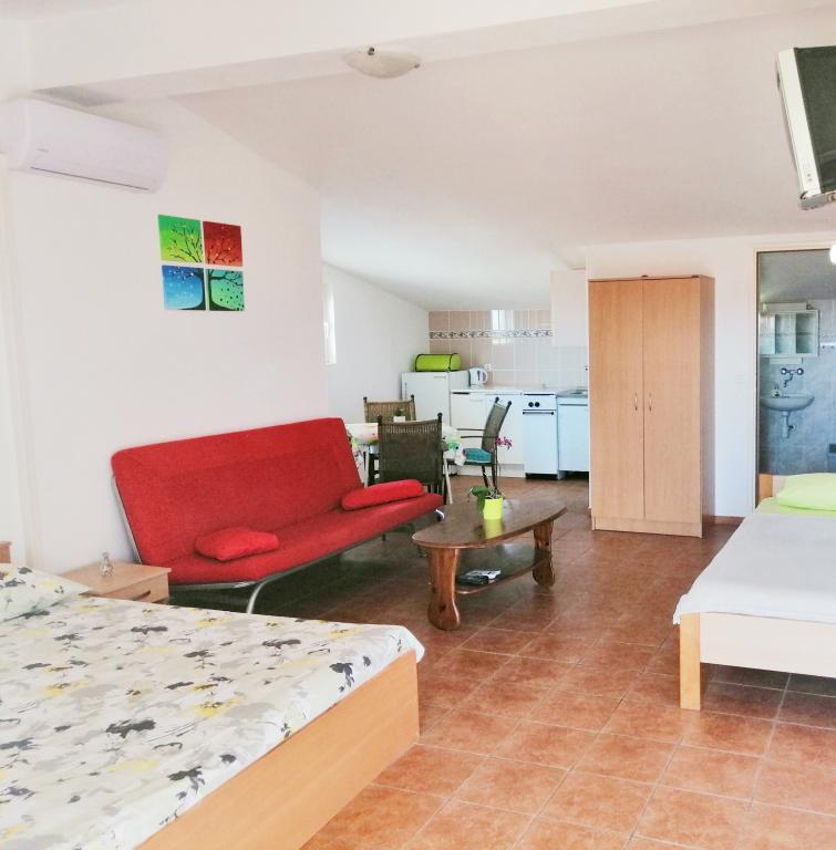 Vi er beliggende i Sukošan, 8 km fra byen Zadar. Lejlighederne ligger mellem hovedvejen og havet i et roligt område af byen. På første sal har vi lejligheder med et soveværelse, mens der på anden sal er studiolejligheder med terrasser med åben udsigt over havet. Lejlighederne ligger 10 minutters gang fra hovedstranden "Dječji raj", 5-7 minutters gang fra sidestranden "Soline" og 5 minutter fra byens centrum. Prisen inkluderer turistskat, aircondition og Wi-Fi. Vi ønsker dig en dejlig ferie!