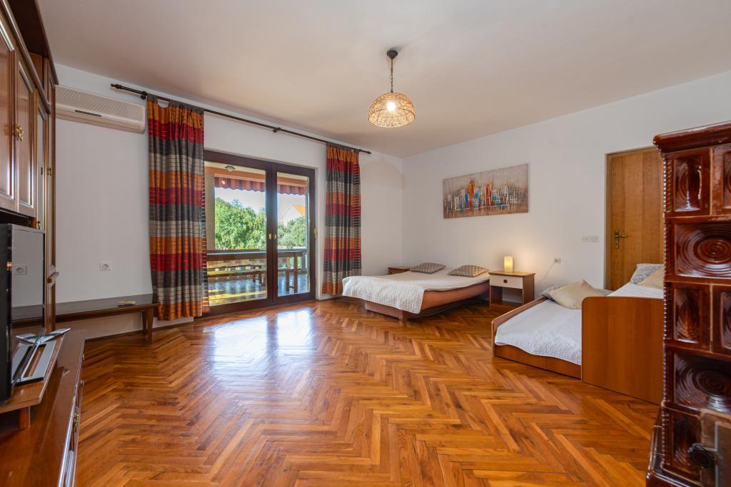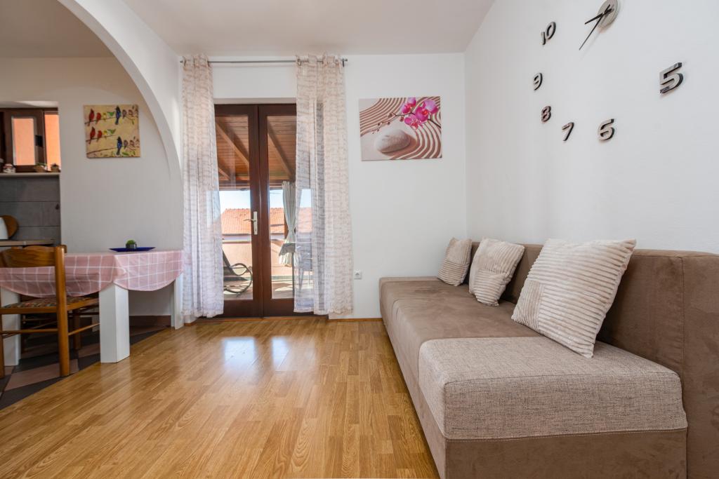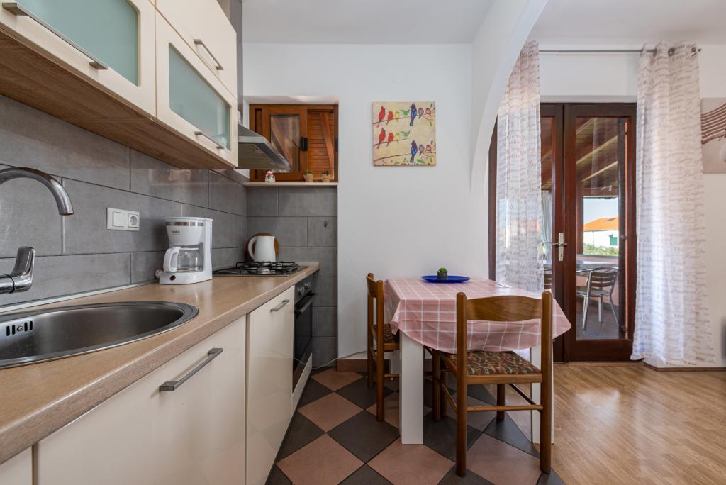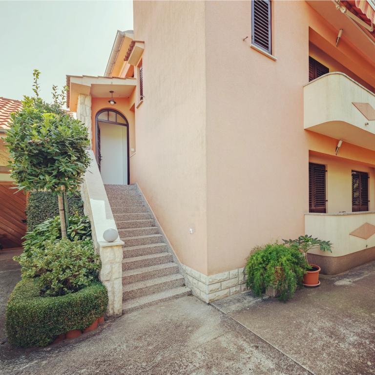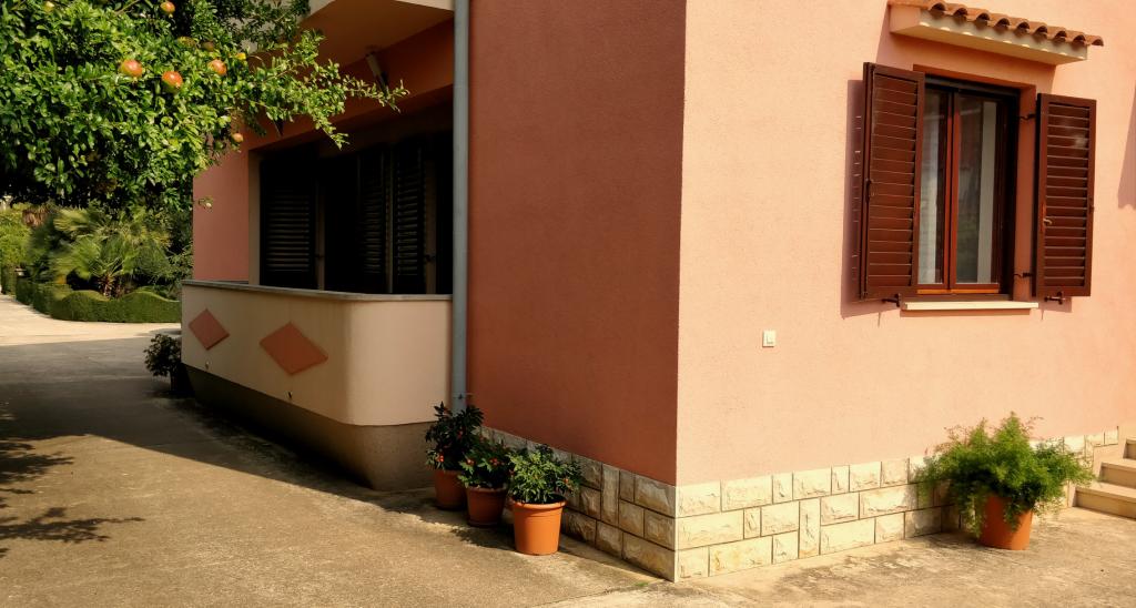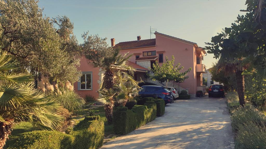 Apartments DARIO ligger i Sukošan, 10 km sydøst for Zadar. Selve bebyggelsen ligger på turistvejen midt på den kroatiske adriaterhavskyst mellem Zadar og Biograd. Sukošan er et fredeligt sted med klart hav, sand- og stenstrande og gæstfrie mennesker og traditioner. På grund af dette anerkendte mange det som et sted for en ideel ferie. Huset har fire lejligheder. APP1 (Studio) er en studielejlighed på første sal. APP2 (A2+1) er også et studie med stor overdækket terrasse. APP3 (A5) er en toværelses lejlighed på første sal med altan. APP4 (A7) er en treværelses lejlighed i stueetagen med stor terrasse. I husets gård er der en stor parkeringsplads og en have med gynger og trampolin. Der er også en grill og en fortøjning til en båd ved havet. AFSTAND - nærmeste lufthavn: Zadar (10 km) - nærmeste motorvejsforbindelse: Zadar Øst betalingsanlæg - A1 (17 km) - nærmeste færgehavn: Zadar (14 km) - nærmeste national- og naturparker: Vranasøen - 22 km, Velebit og Paklenica