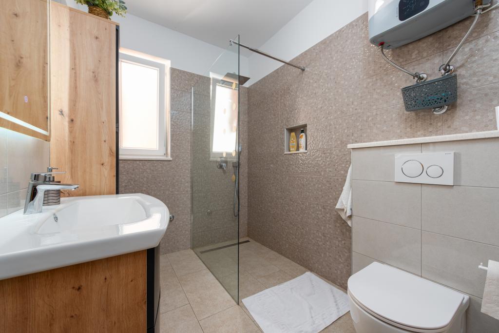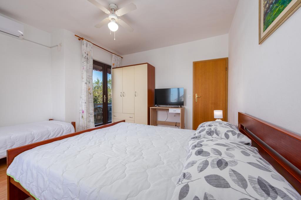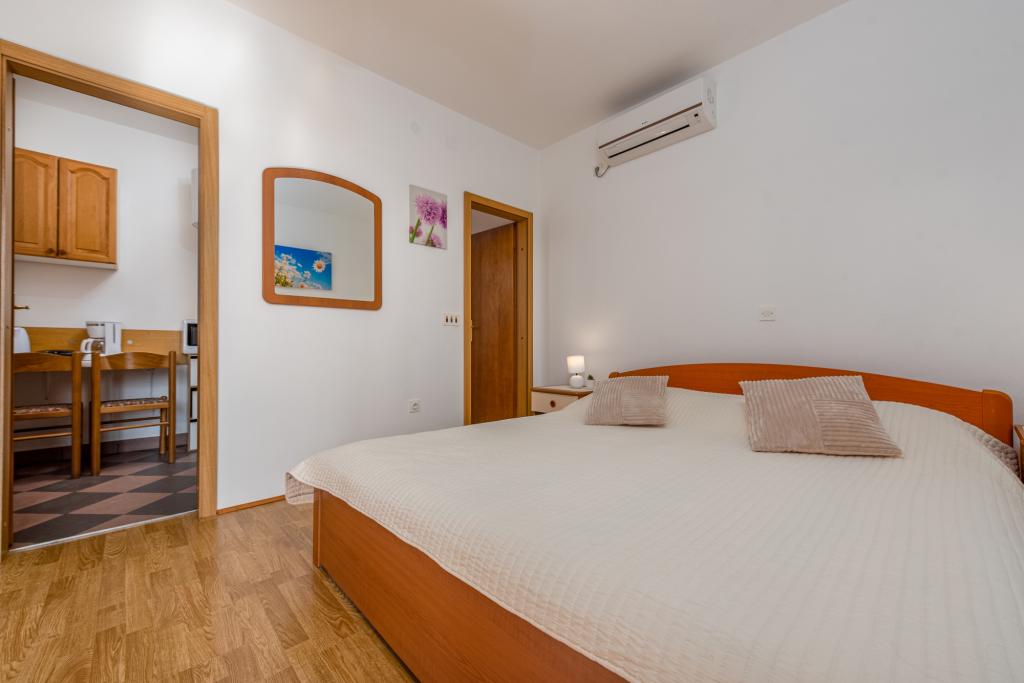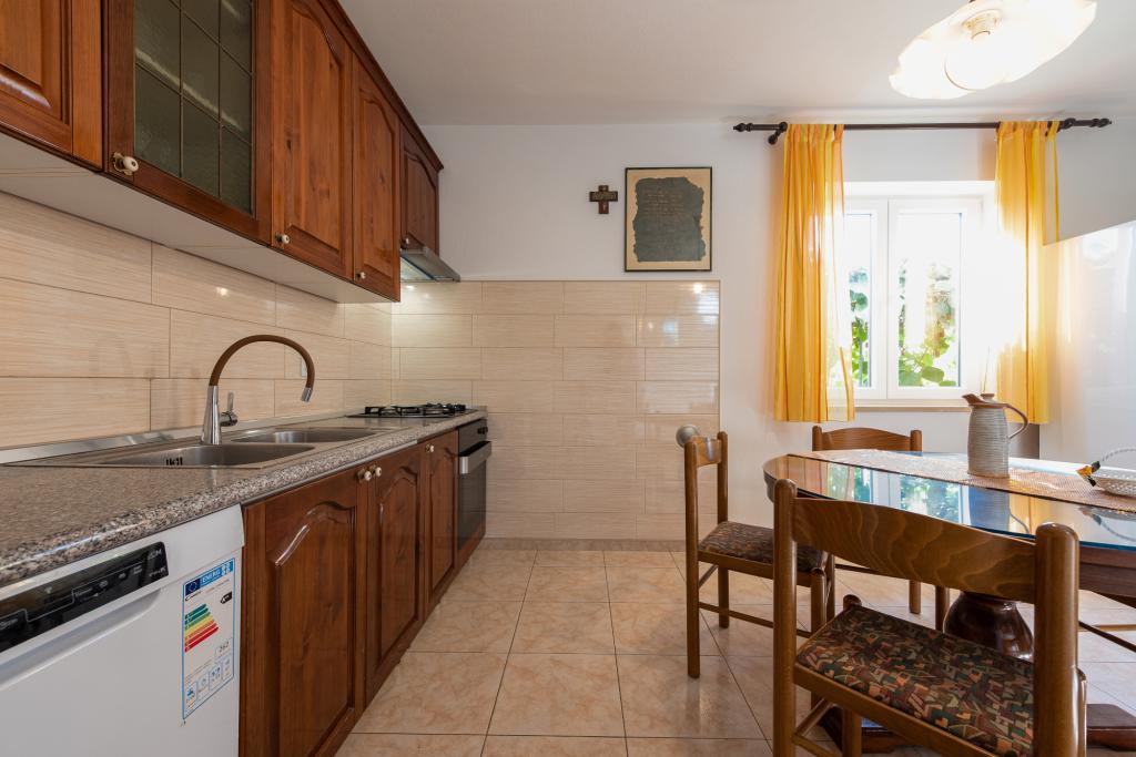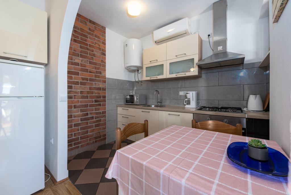 Apartments DARIO ligger i Sukošan, 10 km sydøst for Zadar. Selve bebyggelsen ligger på turistvejen midt på den kroatiske adriaterhavskyst mellem Zadar og Biograd. Sukošan er et fredeligt sted med klart hav, sand- og stenstrande og gæstfrie mennesker og traditioner. På grund af dette anerkendte mange det som et sted for en ideel ferie. Huset har fire lejligheder. APP1 (Studio) er en studielejlighed på første sal. APP2 (A2+1) er også et studie med stor overdækket terrasse. APP3 (A5) er en toværelses lejlighed på første sal med altan. APP4 (A7) er en treværelses lejlighed i stueetagen med stor terrasse. I husets gård er der en stor parkeringsplads og en have med gynger og trampolin. Der er også en grill og en fortøjning til en båd ved havet. AFSTAND - nærmeste lufthavn: Zadar (10 km) - nærmeste motorvejsforbindelse: Zadar Øst betalingsanlæg - A1 (17 km) - nærmeste færgehavn: Zadar (14 km) - nærmeste national- og naturparker: Vranasøen - 22 km, Velebit og Paklenica