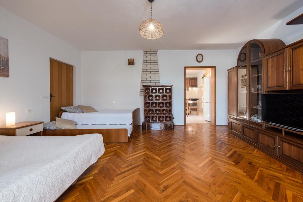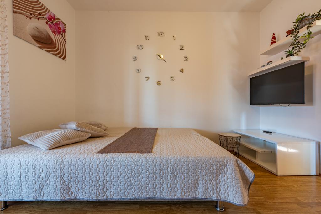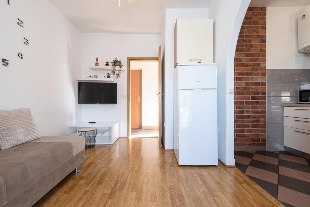 Så jeg vil anbefale denne lejlighed til os alle ti. Der boede flere familier der, så jeg kan bedømme alle værelserne. Lejlighederne er hyggelige og rene. Der er aircondition i hver lejlighed. Tekøkkenet har alt, hvad man behøver. Gryder, pander, glas, bare alt. Ejeren skiftede håndklæderne for os, hvilket jeg anser for at være et stort plus. Hvad angår det ydre, var det fantastisk for os, især for vores børn. Gynge, trampolin, siddepladser i haven, grønne områder og en stor gårdhave. Og hvad angår ejeren, er hun en fantastisk, venlig, hjælpsom og altid smilende kvinde. Jeg har aldrig mødt sådan en person i en lejlighed. Jeg kan kun anbefale hende, det var fantastisk for os, og jeg tror, at vi vil vende tilbage dertil igen.