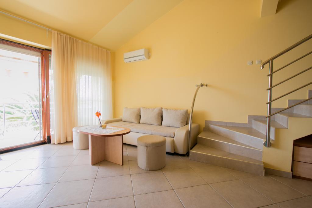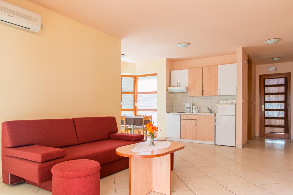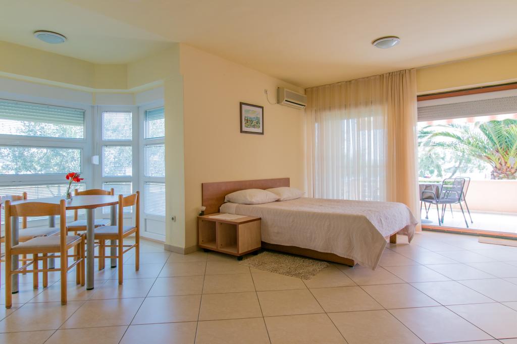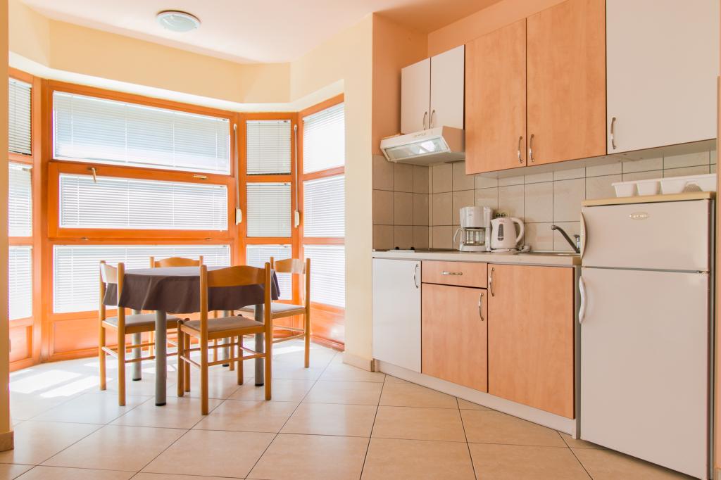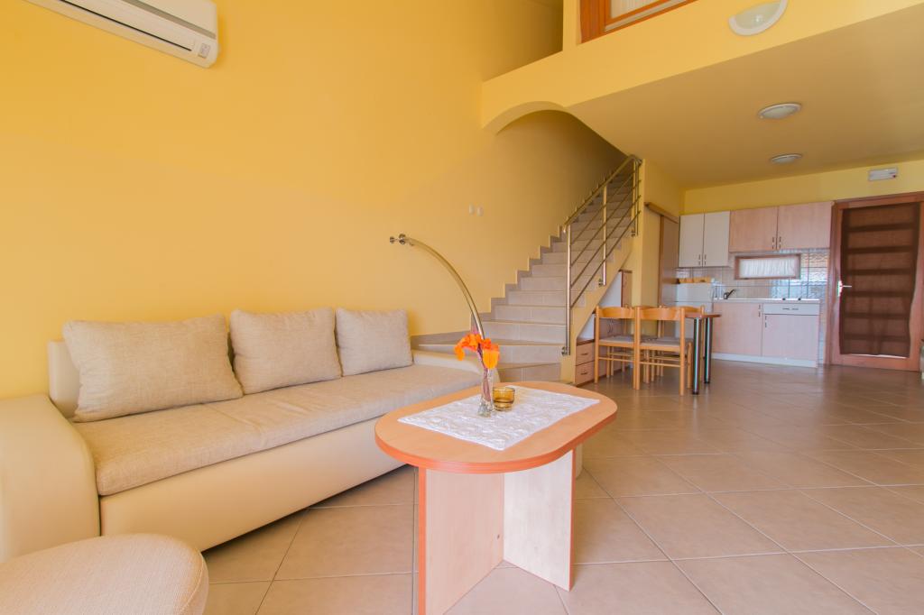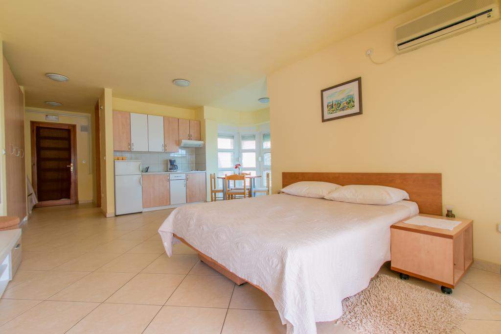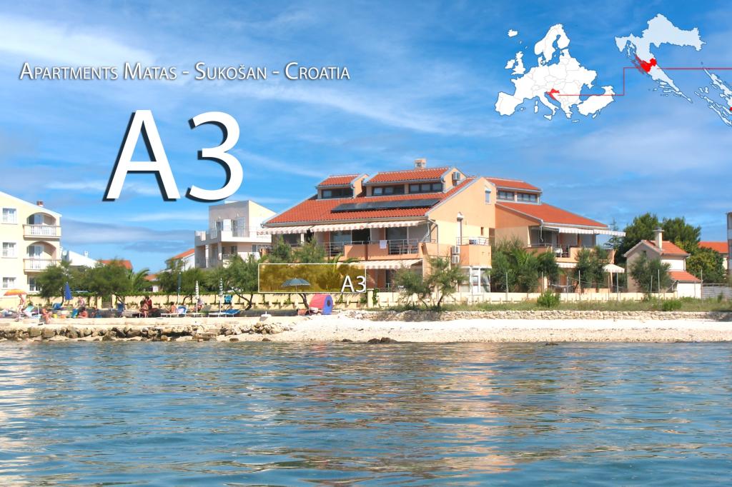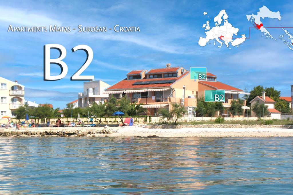 Lejlighederne Matas ligger kun få meter fra stranden! Den private strand er rolig, velholdt med småsten. Sandstranden ligger omkring 500 meter væk. Alle lejligheder har et soveværelse (studiolejligheden har kun en stue), stue, badeværelse, køkken, terrasse eller balkon og er velegnede til maks. 4 personer. Alle lejligheder har et areal på 64 m2, to værelser (soveværelse og stue/soveværelse), undtagen lejlighed A2 (32 m2, maks. 2 personer - soveværelse/stue) er udstyret med aircondition, satellit-tv, Wi-Fi og en kaffemaskine. Der er også et vaskerum med vaskemaskine i huset. I haven ved stranden er der en havebruser og en grill. Lejlighederne er fuldt udstyrede med bestik, tallerkener, sengelinned og håndklæder, så du ikke behøver at medbringe noget.