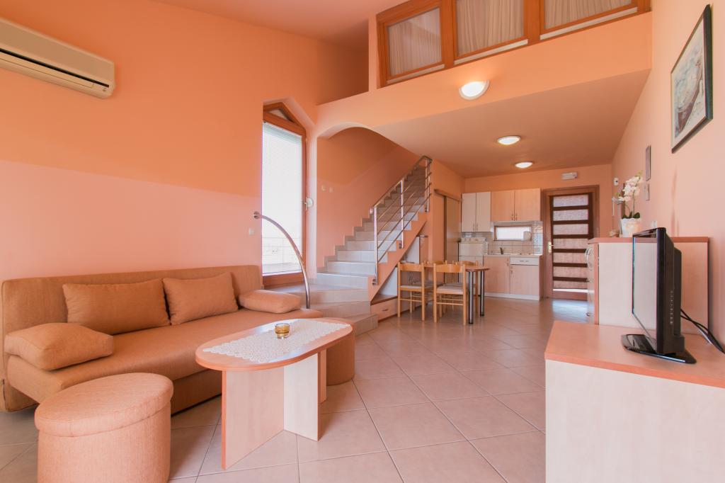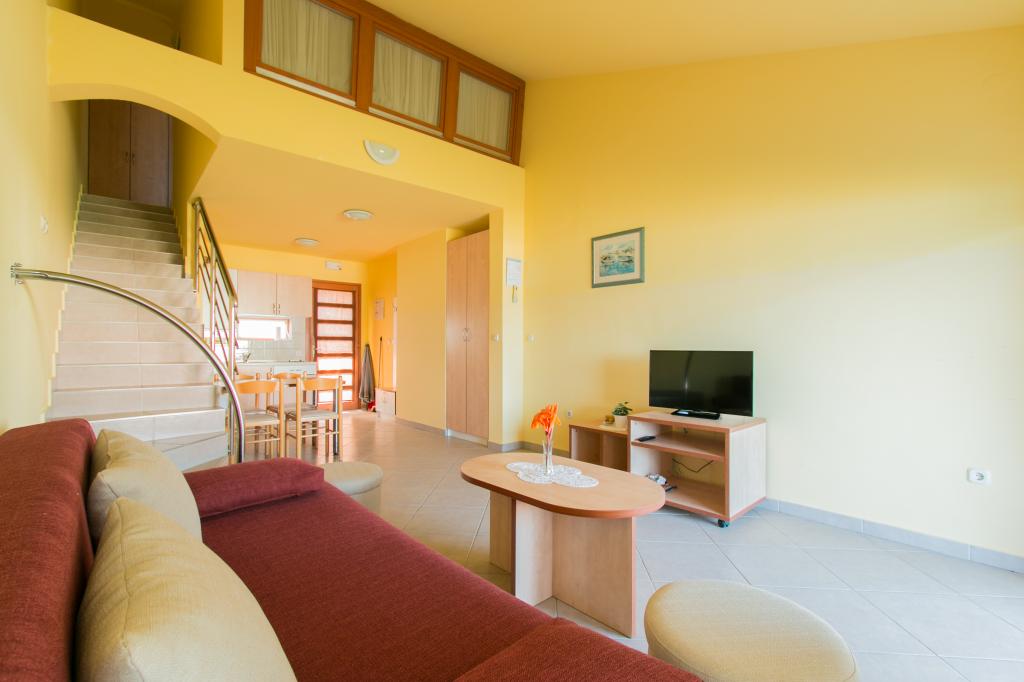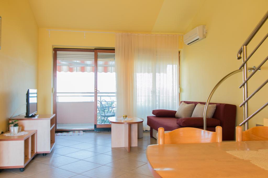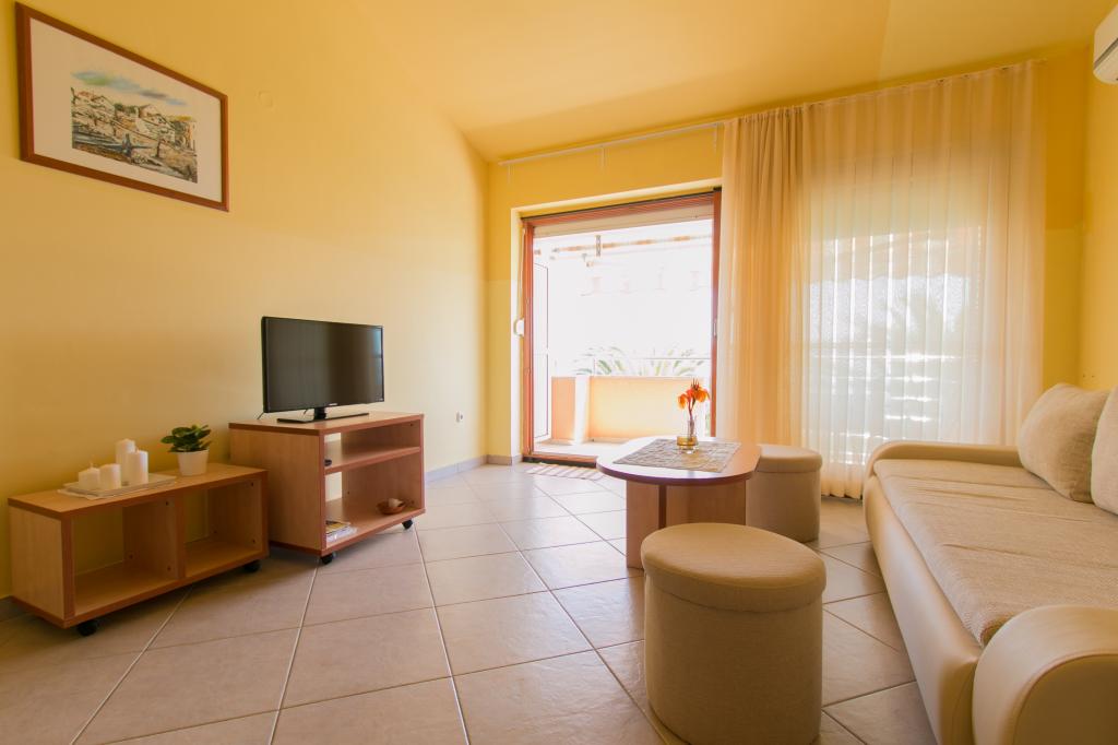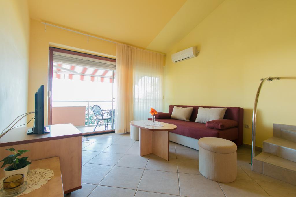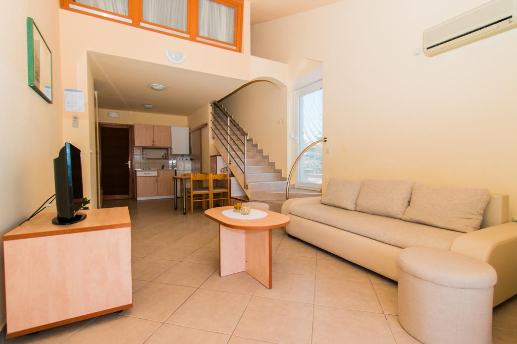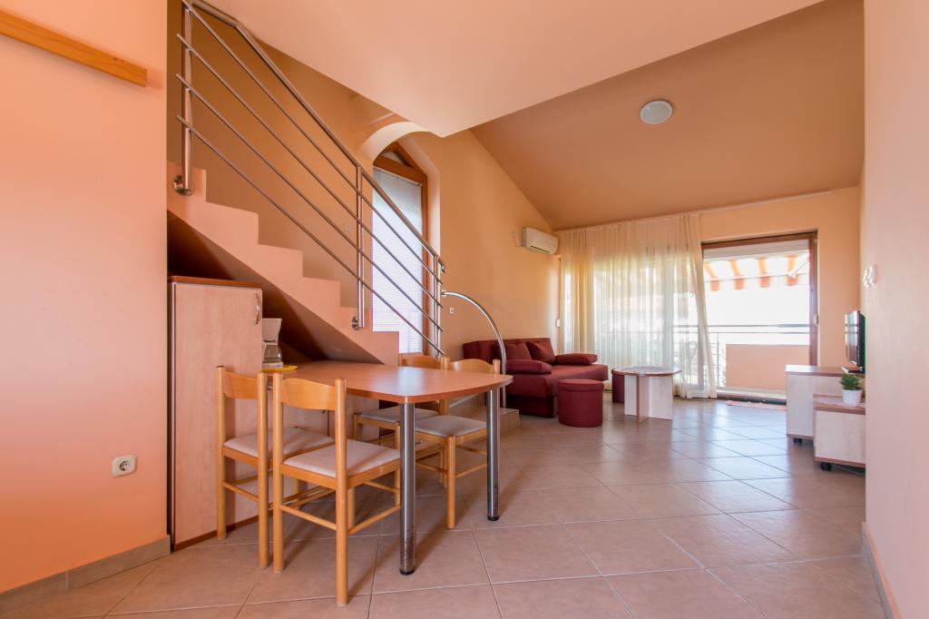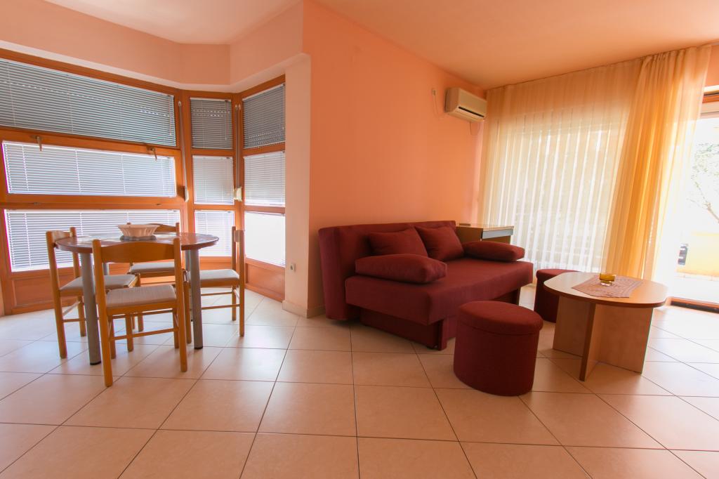 Lejlighederne Matas ligger kun få meter fra stranden! Den private strand er rolig, velholdt med småsten. Sandstranden ligger omkring 500 meter væk. Alle lejligheder har et soveværelse (studiolejligheden har kun en stue), stue, badeværelse, køkken, terrasse eller balkon og er velegnede til maks. 4 personer. Alle lejligheder har et areal på 64 m2, to værelser (soveværelse og stue/soveværelse), undtagen lejlighed A2 (32 m2, maks. 2 personer - soveværelse/stue) er udstyret med aircondition, satellit-tv, Wi-Fi og en kaffemaskine. Der er også et vaskerum med vaskemaskine i huset. I haven ved stranden er der en havebruser og en grill. Lejlighederne er fuldt udstyrede med bestik, tallerkener, sengelinned og håndklæder, så du ikke behøver at medbringe noget.