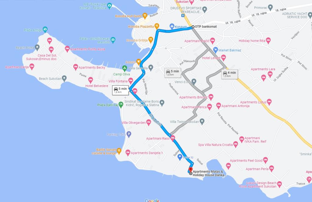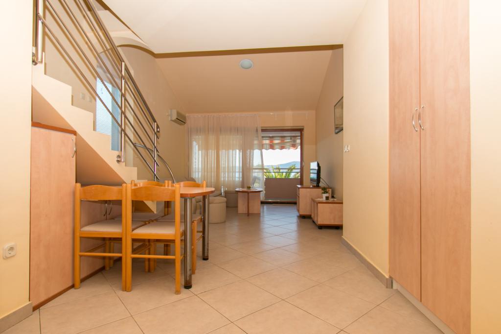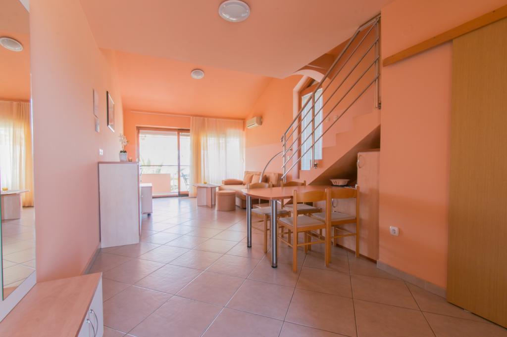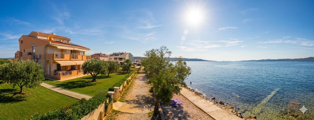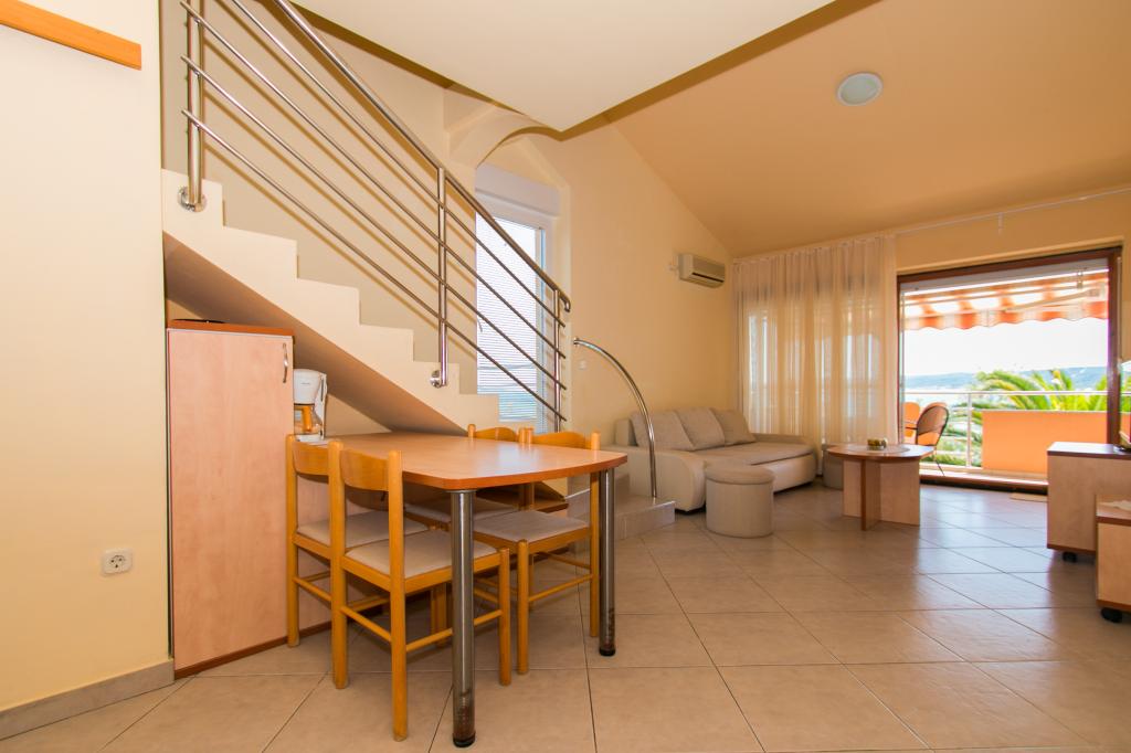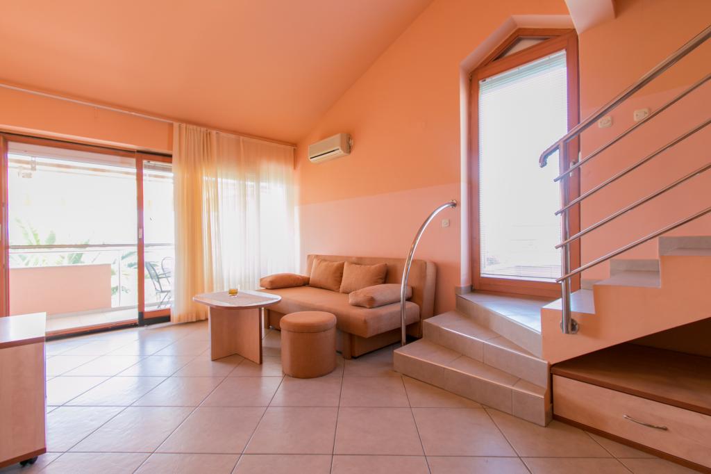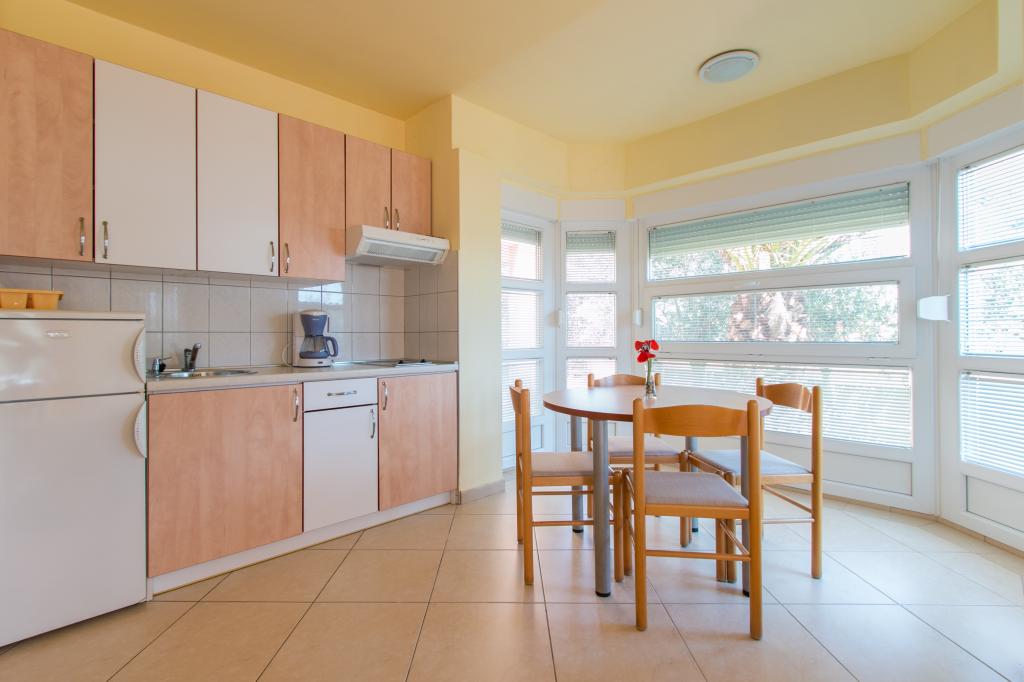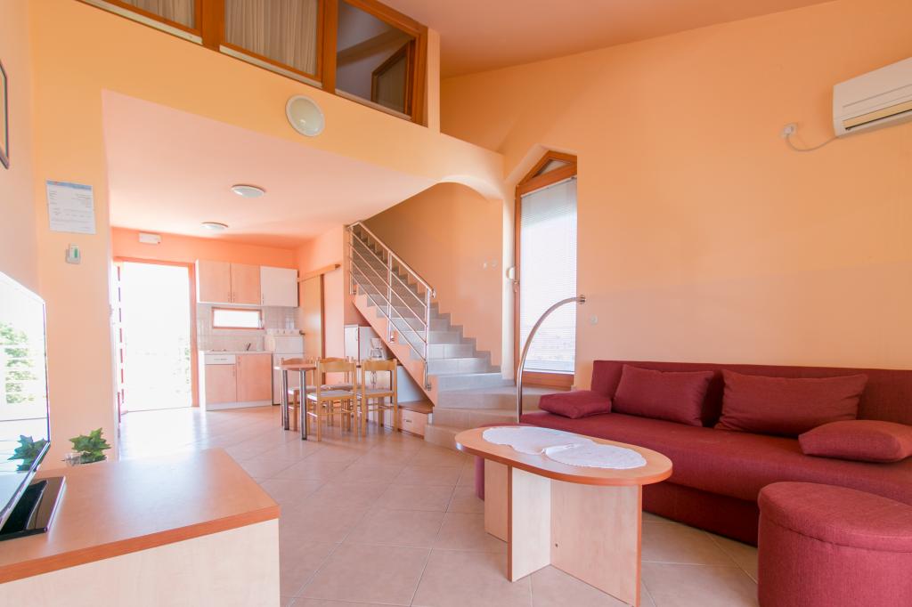 Lejlighederne Matas ligger kun få meter fra stranden! Den private strand er rolig, velholdt med småsten. Sandstranden ligger omkring 500 meter væk. Alle lejligheder har et soveværelse (studiolejligheden har kun en stue), stue, badeværelse, køkken, terrasse eller balkon og er velegnede til maks. 4 personer. Alle lejligheder har et areal på 64 m2, to værelser (soveværelse og stue/soveværelse), undtagen lejlighed A2 (32 m2, maks. 2 personer - soveværelse/stue) er udstyret med aircondition, satellit-tv, Wi-Fi og en kaffemaskine. Der er også et vaskerum med vaskemaskine i huset. I haven ved stranden er der en havebruser og en grill. Lejlighederne er fuldt udstyrede med bestik, tallerkener, sengelinned og håndklæder, så du ikke behøver at medbringe noget.
