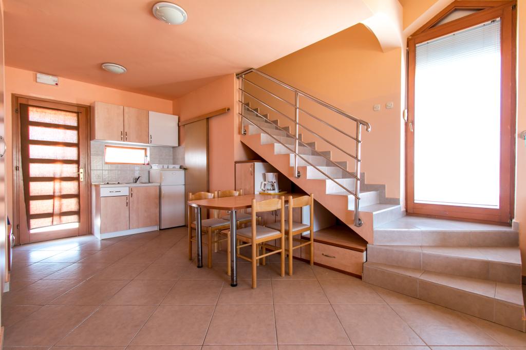 Lejlighederne Matas A1 og A3 (til 4 personer) og A2 (til 2 personer) ligger i stueetagen. Lejlighederne Matas B1, B2, B3, B4, B5 (til 4 personer) ligger på første sal og er af duplex-typen. En rummelig stue med køkken og spiseplads samt store døre til terrassen giver det perfekte sted at slappe af. I lejlighederne finder du alt, hvad du behøver til din ferie. Lejlighederne har aircondition og er udstyret med satellit-tv, trådløst internet, komfur, køleskab og service. Lejlighederne består af et soveværelse (2 personer), stue (sofa til 2 personer), køkken, badeværelse og en rummelig terrasse med en smuk udsigt over Zadar-øgruppen. Lejlighed A2 er et studio til 2 personer. Om nødvendigt har vi også en barneseng til børn op til 2 år.