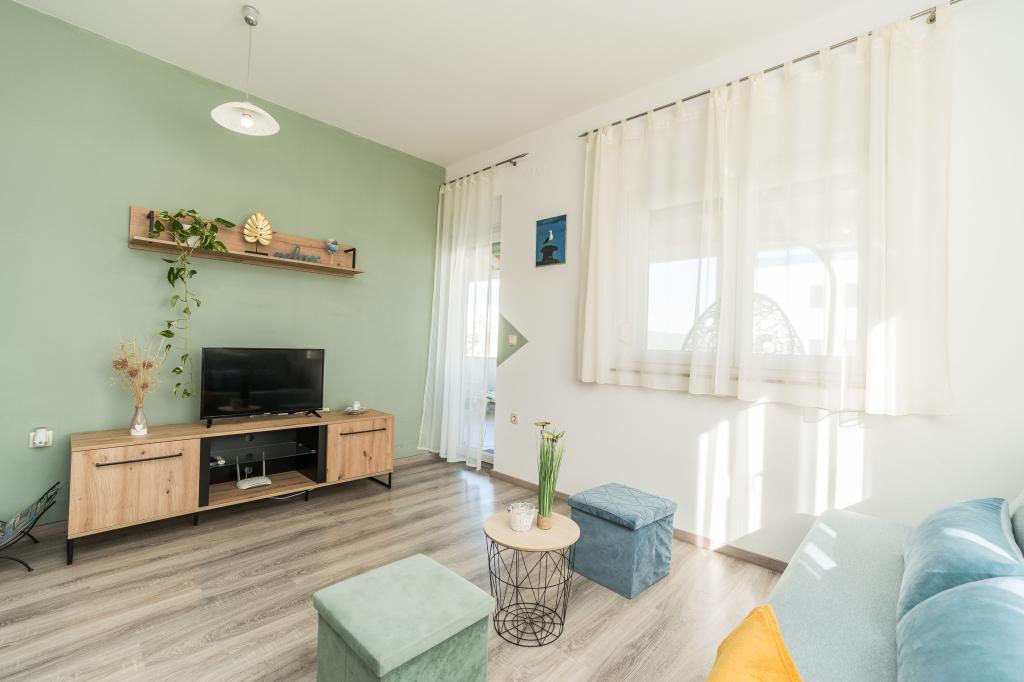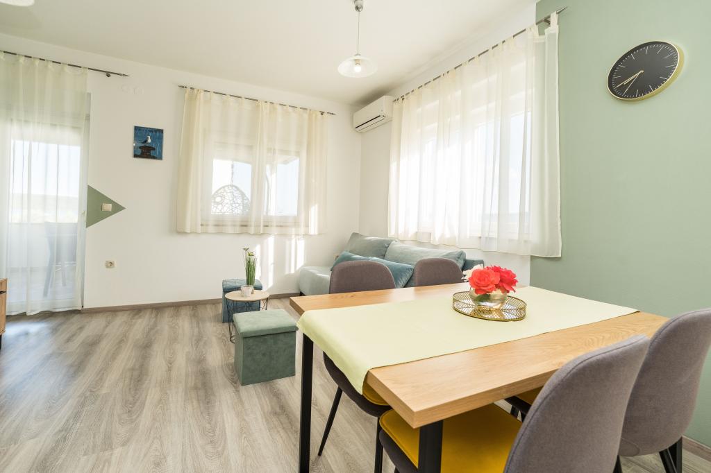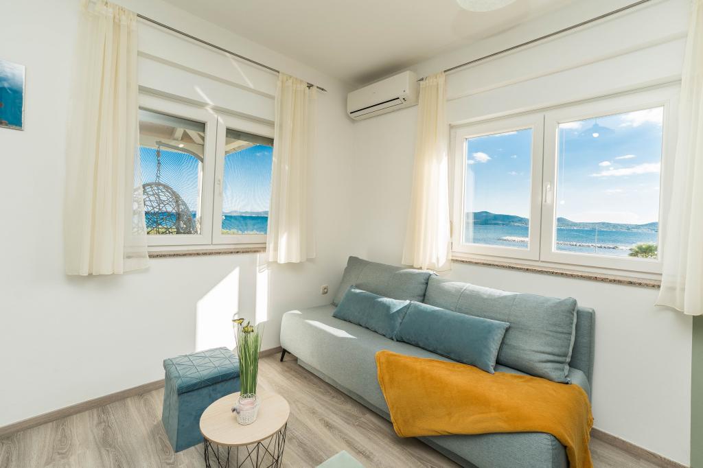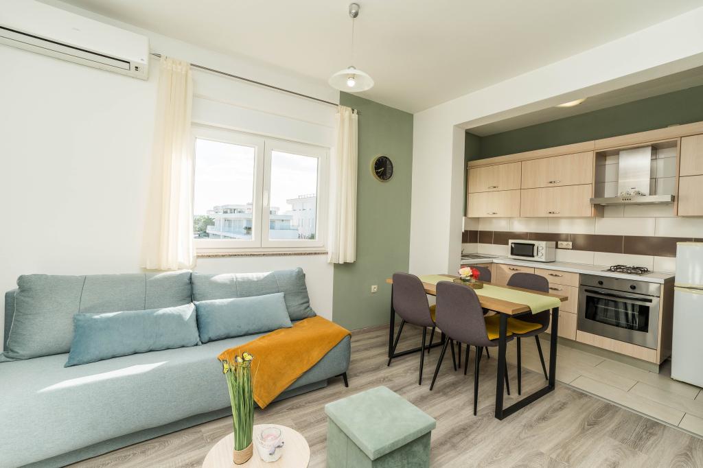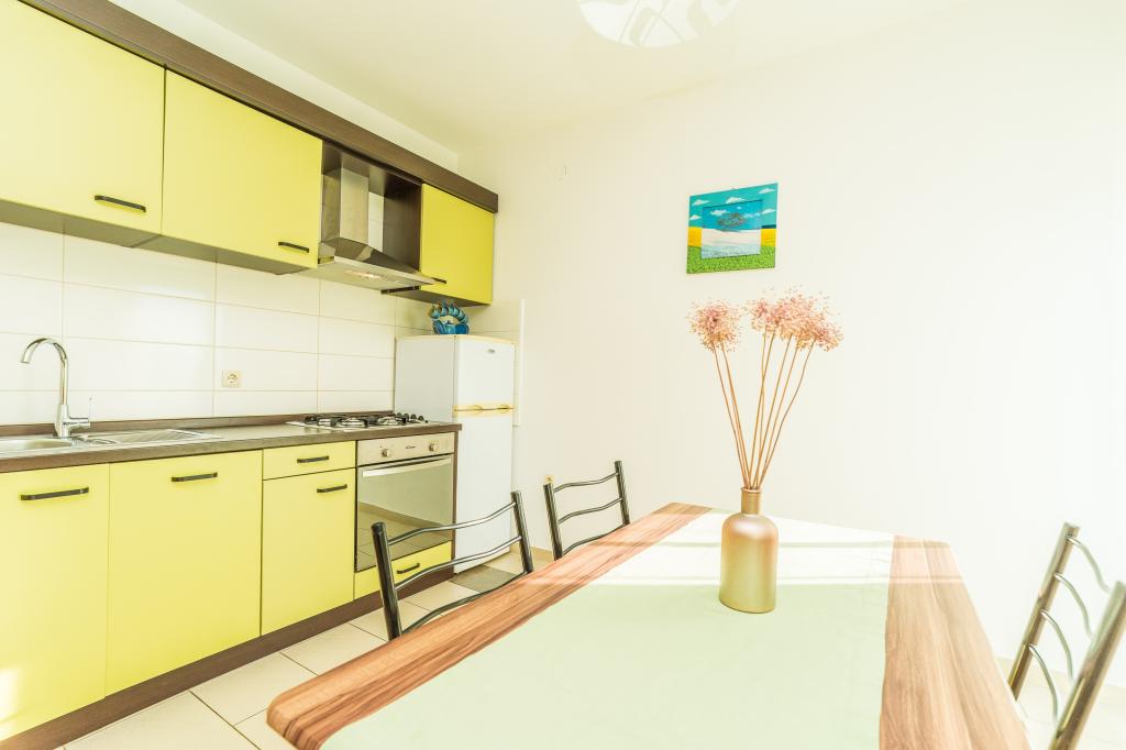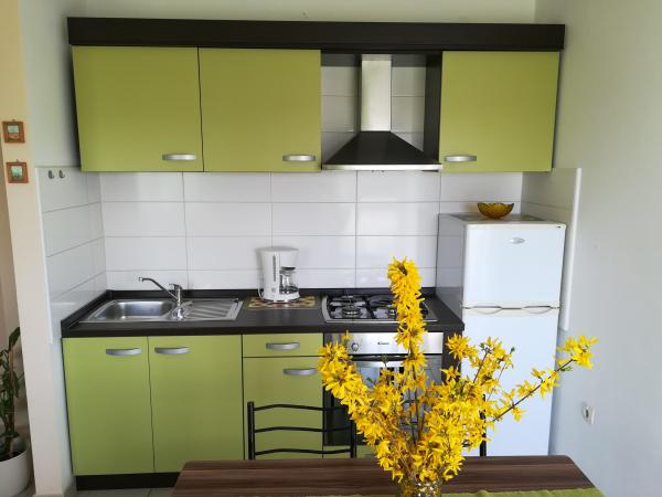 Fuldt udstyret ned til mindste detalje. Rummelig terrasse, havudsigt, strand ved siden af lejligheden, grønne områder omkring huset, sikker parkeringsplads. Værterne ønsker, varme, hjertelige, får dig til at føle dig hjemme, overrasker dig med middag, hjemmelavet frugt, grøntsager og olivenolie ... Vi planlægger at vende tilbage!