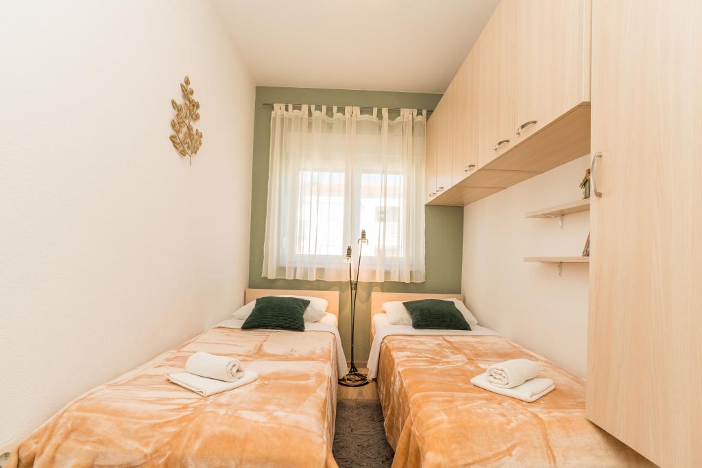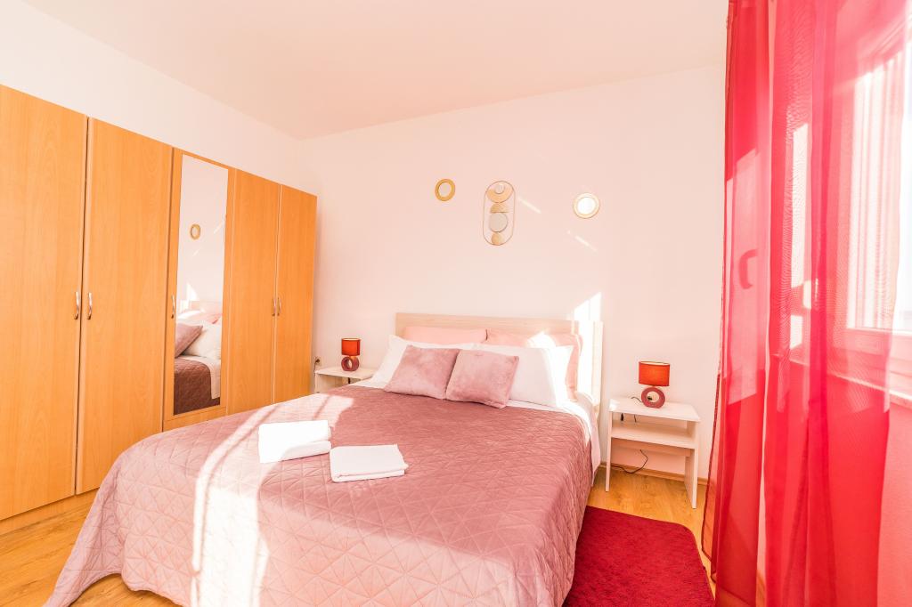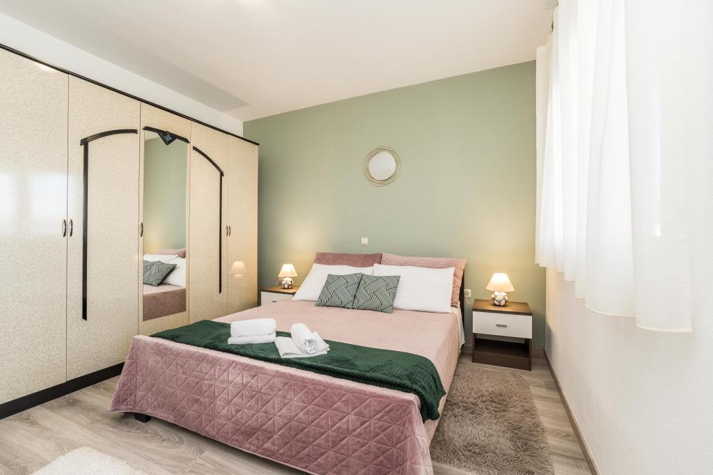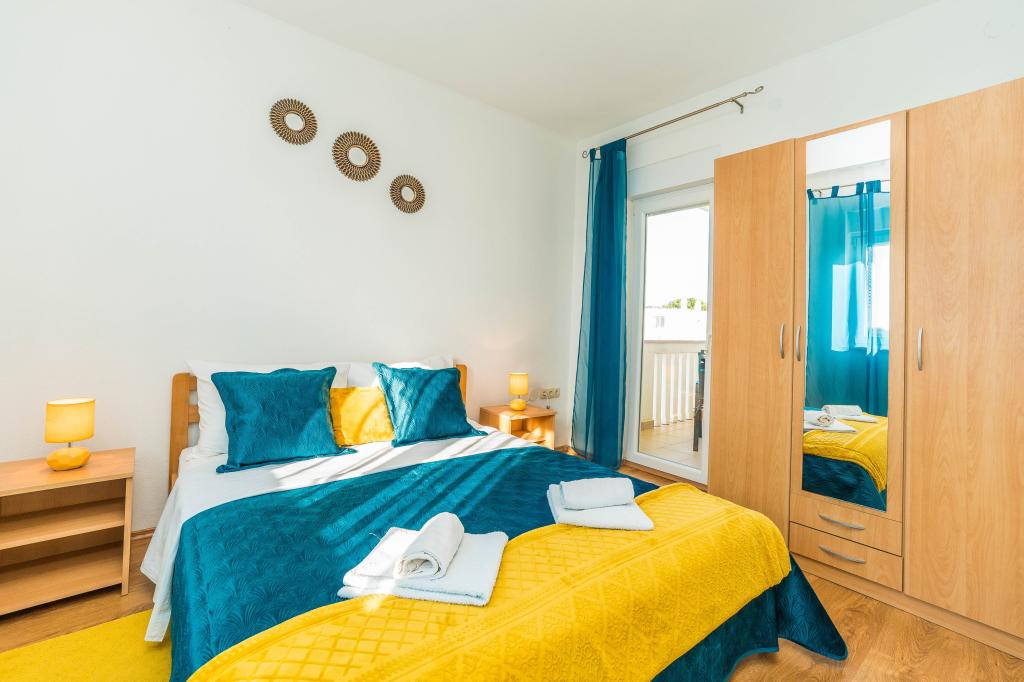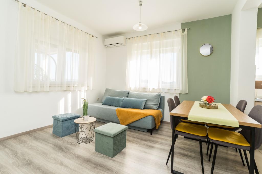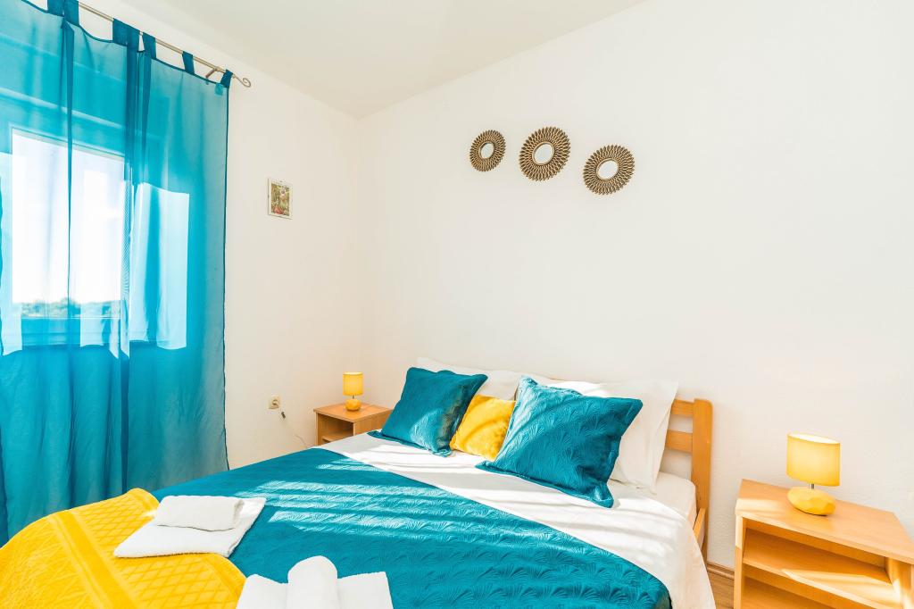 Lejlighederne er beliggende i et familiehus, i en rolig del af Sukosan, 60 m fra havet, 15 minutters gang til centrum. Gæsterne har til deres rådighed to komfortable to-værelses lejligheder med havudsigt og en separat indgang. Hver lejlighed er fuldt og moderne udstyret med aircondition, SAT/TV og Wi-Fi internet. Der er parkering til hver lejlighed, og gæsterne kan benytte grillen. I nærheden ligger en åben legeplads med faciliteter for børn, en basketballbane og en beachvolleybane. Vi ønsker dig et behageligt ophold hos os.