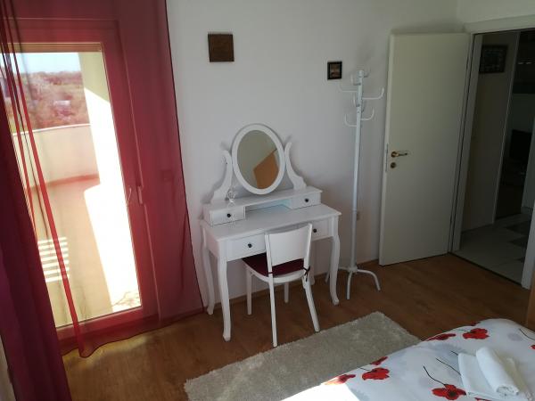 Vi tilbragte 10 smukke dage med dig, Franić, som virker for korte set fra et par dage efter vores hjemkomst. Begge lejligheder (fordi den anden var lejet af vores venner, som vi rejste med) levede fuldt ud op til vores forventninger og behov. Terrasser på flere sider af lejligheden er en rigtig god løsning, når du vil overliste den brændende sol. Fra lejlighederne meget tæt på strandene 50-100 m (afhængigt af det valgte sted på stranden), kan du endda se børnene lege på stranden fra terrassen. Udsigt over havet, øerne og Velebit spænder fra den modsatte side. Tæt på markedet, bageri, frugt og grøntsager, restaurant - ca. 200 m, og de ligger ved siden af hinanden. Kvarteret og stranden er stille og fredeligt. Fuld afslapning garanteret. I nærheden af langrends- og cykelruter. Jeg valgte personligt den 5,2 km lange Trip Stanza-rute. For dem, der ikke er tilfredse med svømning, snorkling, jogging og solbadning, anbefaler vi ture og sightseeing ikke kun af Sukosan, men også andre steder. Placeringen af Sukosan tillod os at besøge Zadar og Šibenik. Vi var også i Krka National Park (vandfald), ved udsigtspunktet Kamenjak, hvorfra man kan se Vrana-søen og Adriaterhavet. Vi besøgte endda Cerovackie-hulerne, der åbnede for en måned siden, og den smukke dal ved floden Zrmanja, hvor film om Winnetou blev optaget. Vi er selvfølgelig klar over, at der var mange flere muligheder for sightseeing, men der var ikke tid nok. Hvad angår værterne, var de meget høflige og gæstfrie. De er klar til at hjælpe og støtte med råd, sprogligt forståelige under samtaler. Vi vil gerne takke fru Matylda for courgettepandekagerne, en monstrøst stor, men yderst velsmagende traditionel Peka-ret (vi observerede også Værtens store engagement her) og afskedssuvenias. Vi lovede, at vi ville komme tilbage, så... hvis vi var tolerable fra vores værters synspunkt, og hvis vi kunne, ville vi vende tilbage til dette smukke sted.