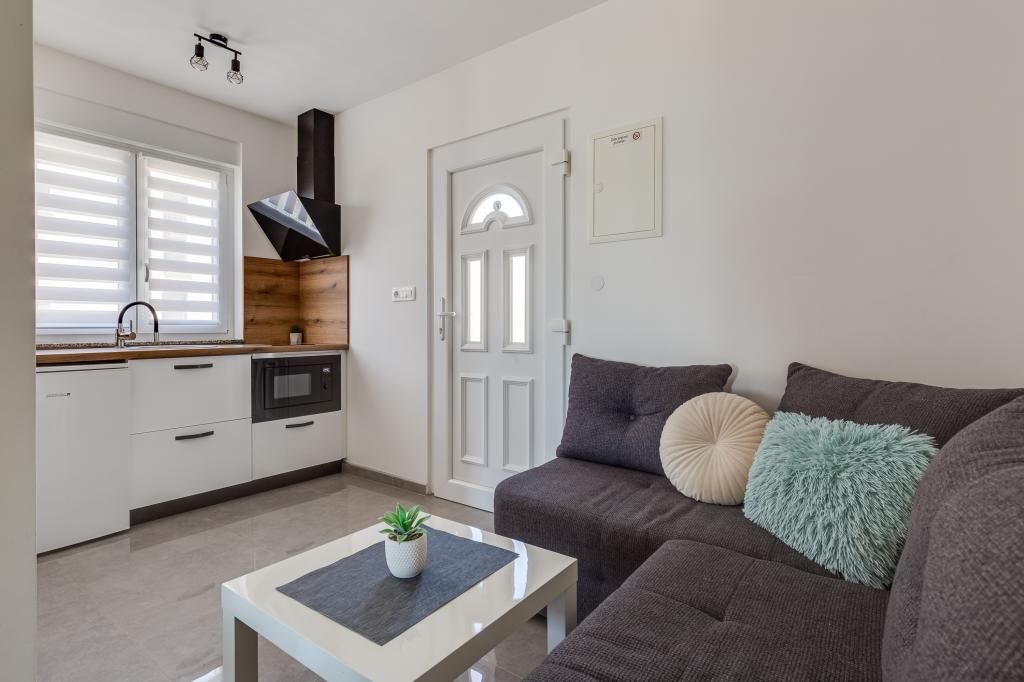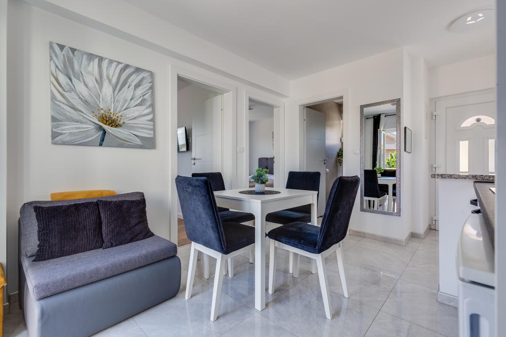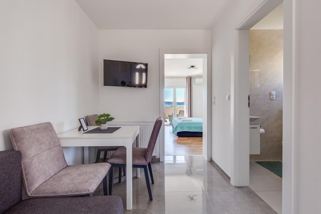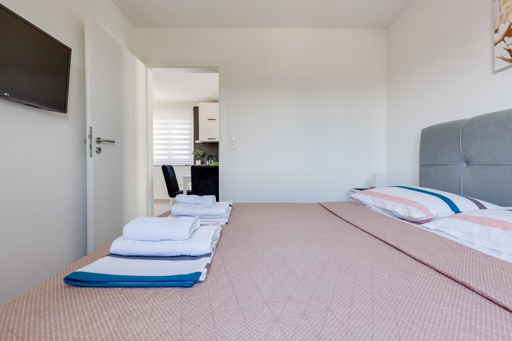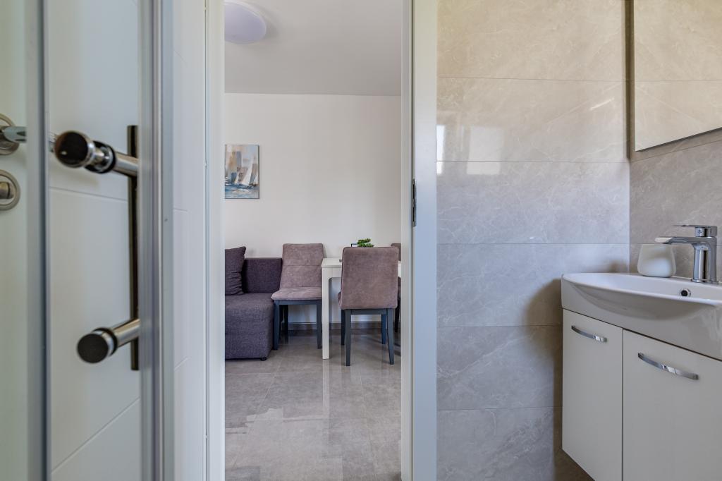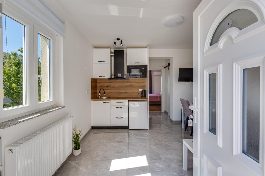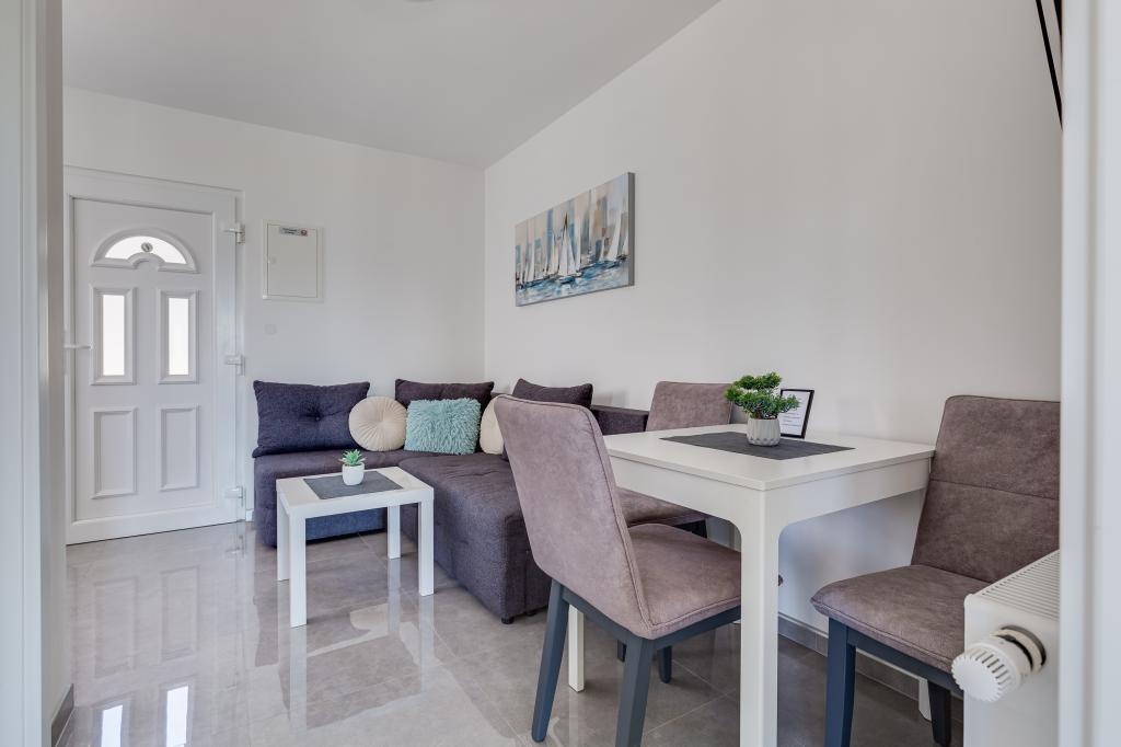 Fuldt og moderne udstyrede lejligheder i et roligt område af Sukošan.Beliggende 100 meter fra havet og en stenstrand Ejendommen er beliggende 400 meter fra sandstranden Djećji raj og 500 meter fra centrum af byen og andre faciliteter. Gæsterne kan slappe af og nyde denne komfortable indkvartering og udsigt over havet.Der er en fælles grill i gården