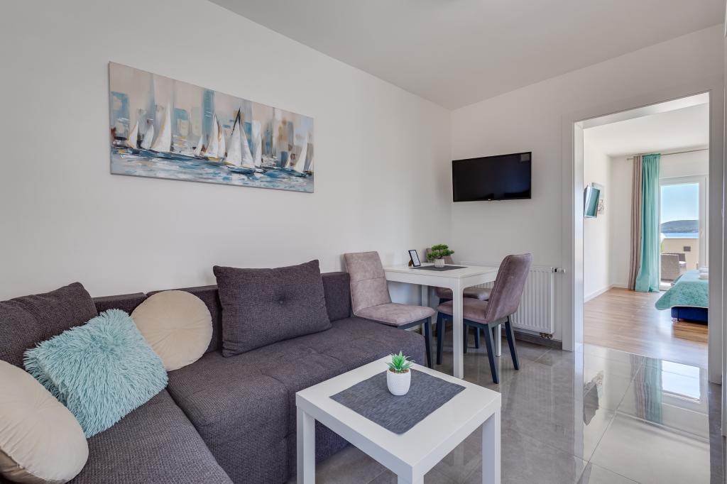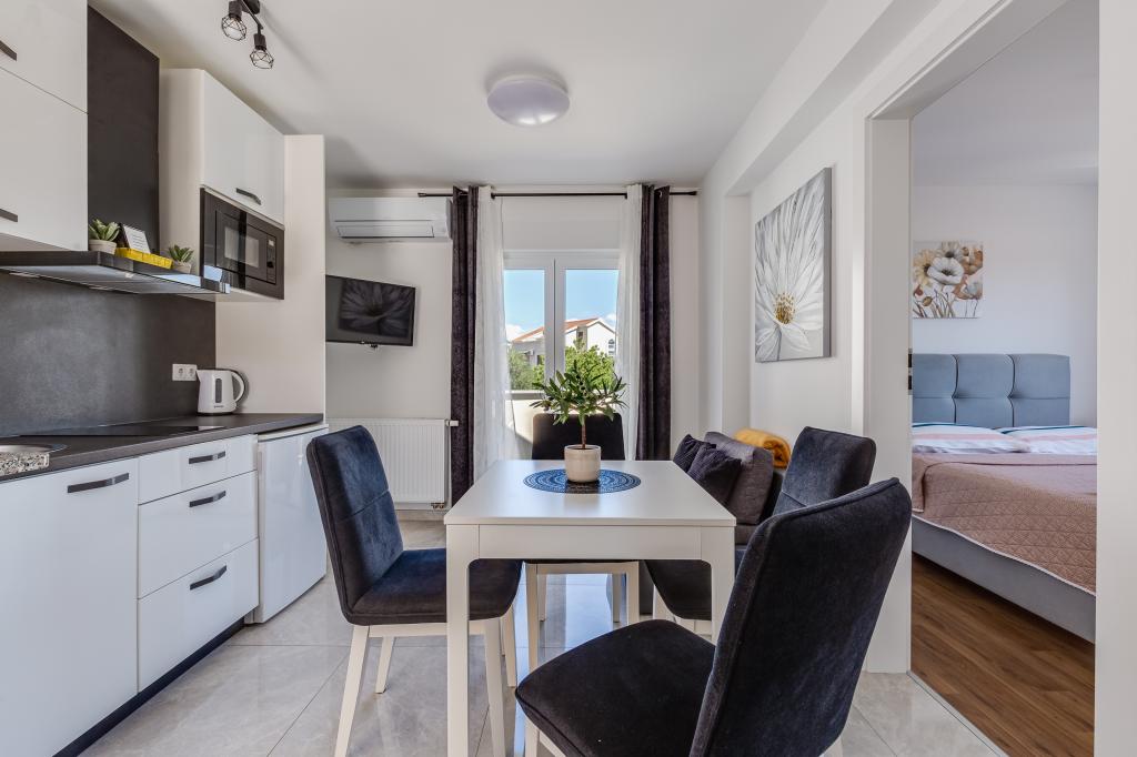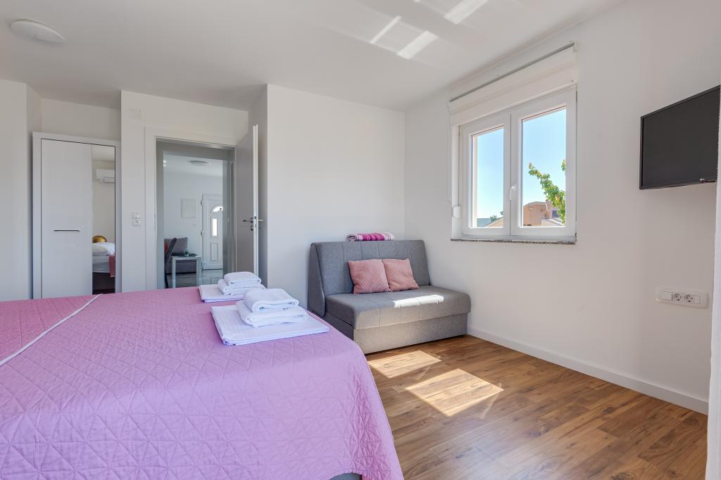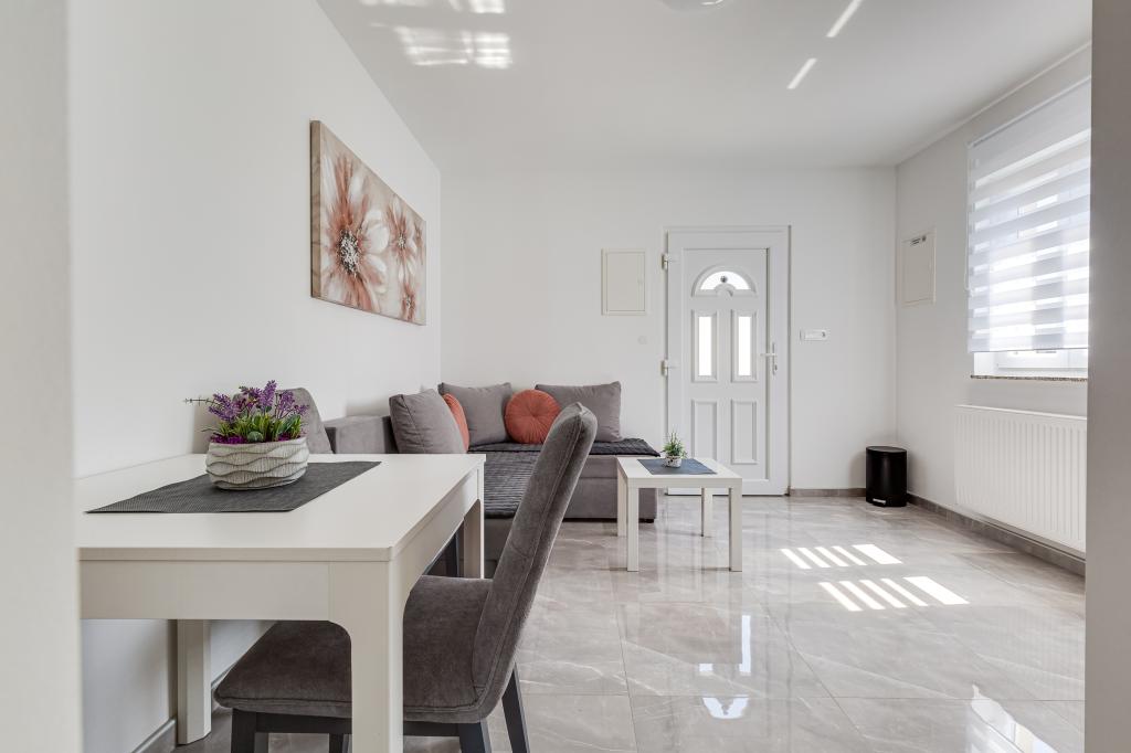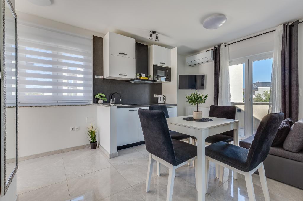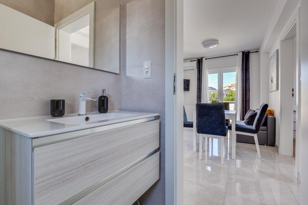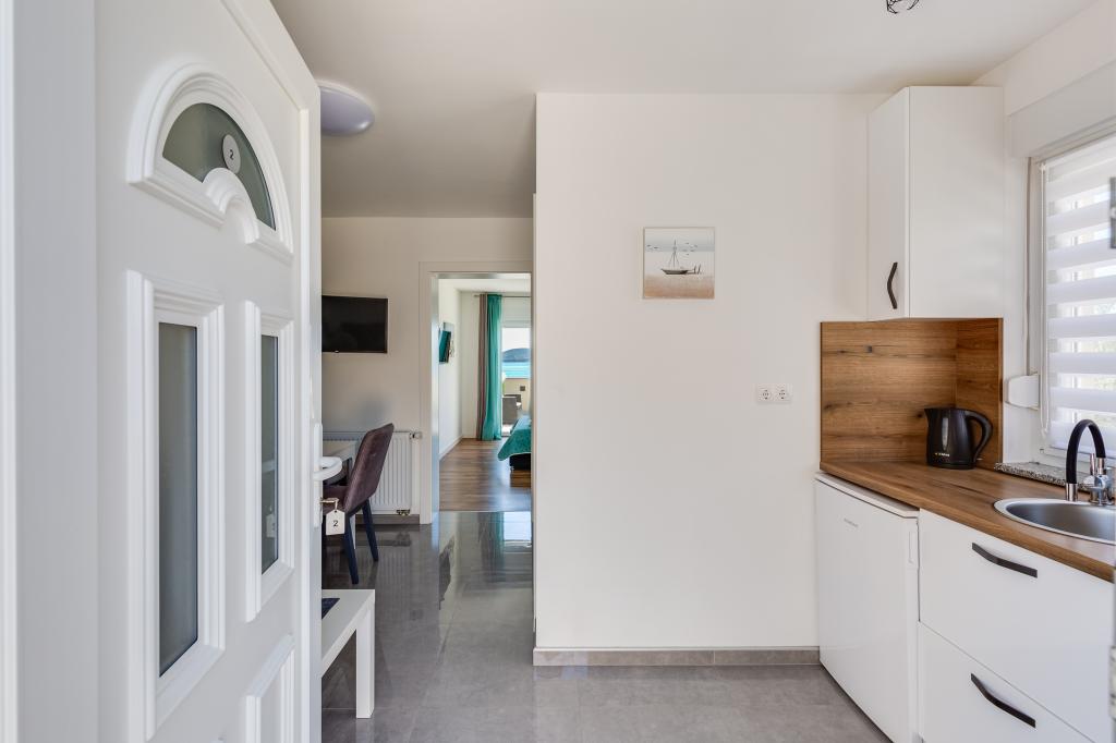Fuldt og moderne udstyrede lejligheder i et roligt område af Sukošan.Beliggende 100 meter fra havet og en stenstrand Ejendommen er beliggende 400 meter fra sandstranden Djećji raj og 500 meter fra centrum af byen og andre faciliteter. Gæsterne kan slappe af og nyde denne komfortable indkvartering og udsigt over havet.Der er en fælles grill i gården