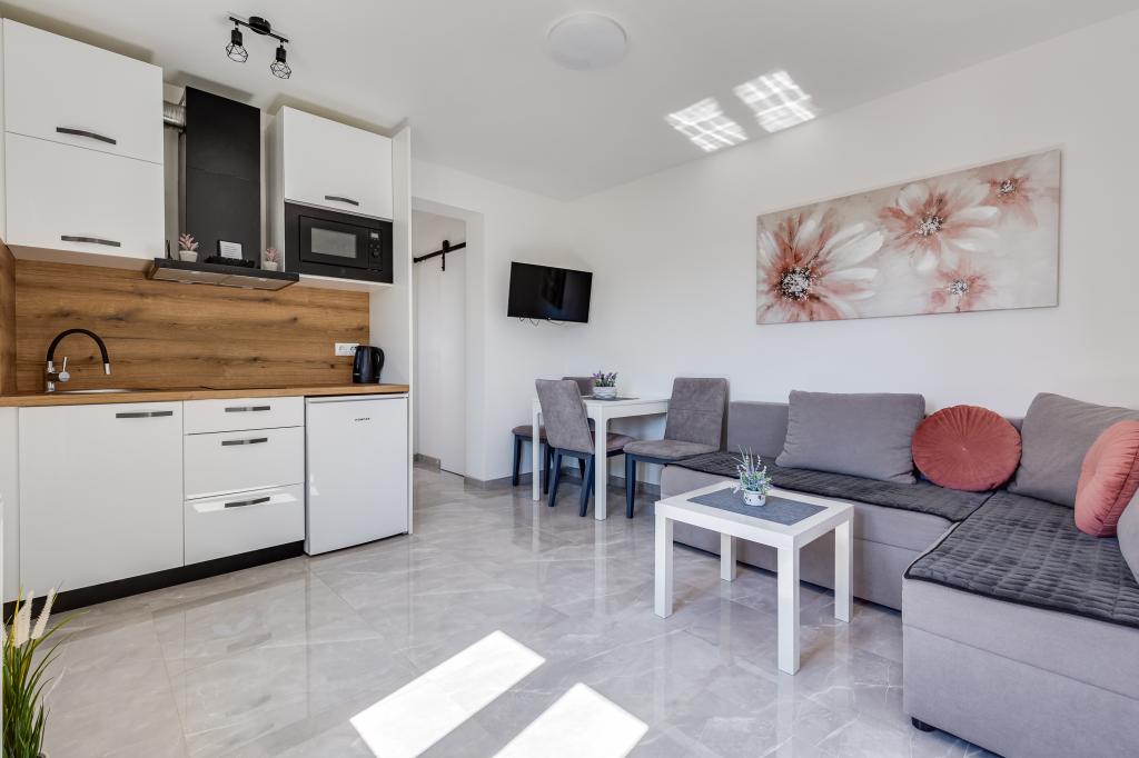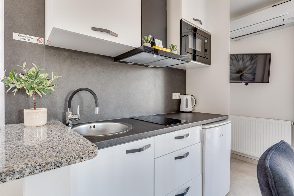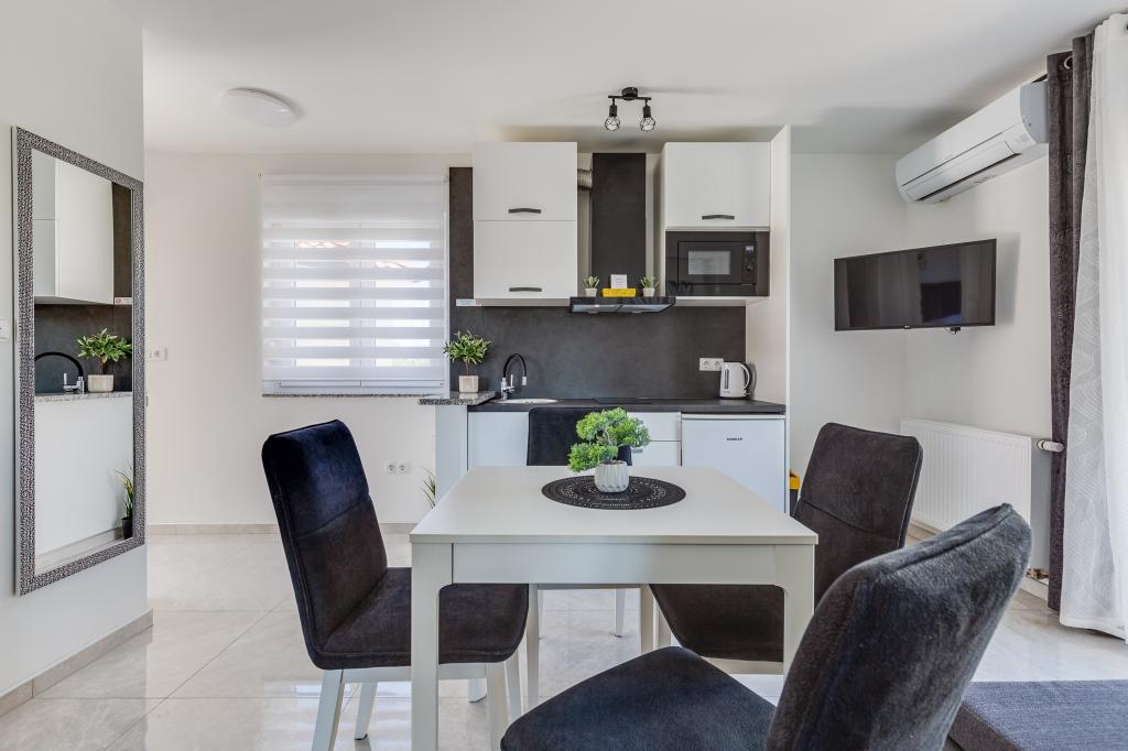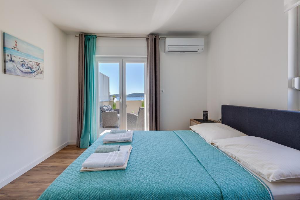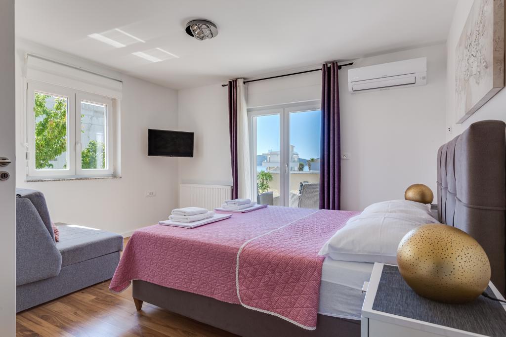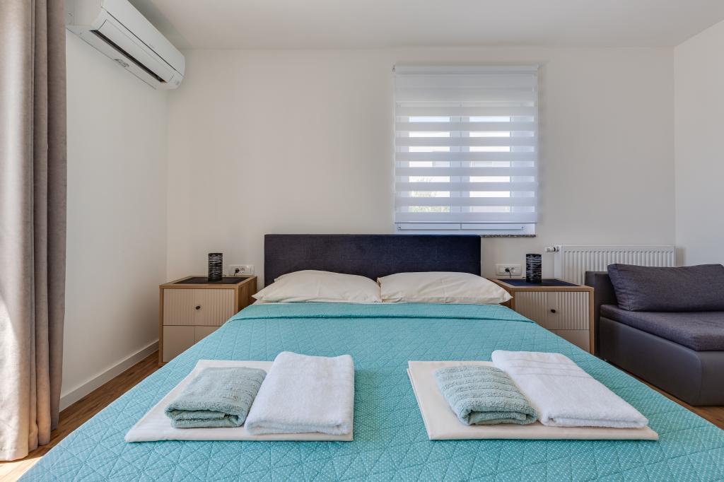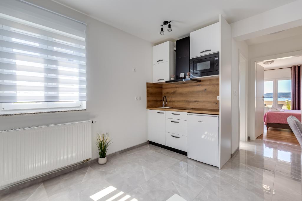 Fuldt og moderne udstyrede lejligheder i et roligt område af Sukošan.Beliggende 100 meter fra havet og en stenstrand Ejendommen er beliggende 400 meter fra sandstranden Djećji raj og 500 meter fra centrum af byen og andre faciliteter. Gæsterne kan slappe af og nyde denne komfortable indkvartering og udsigt over havet.Der er en fælles grill i gården