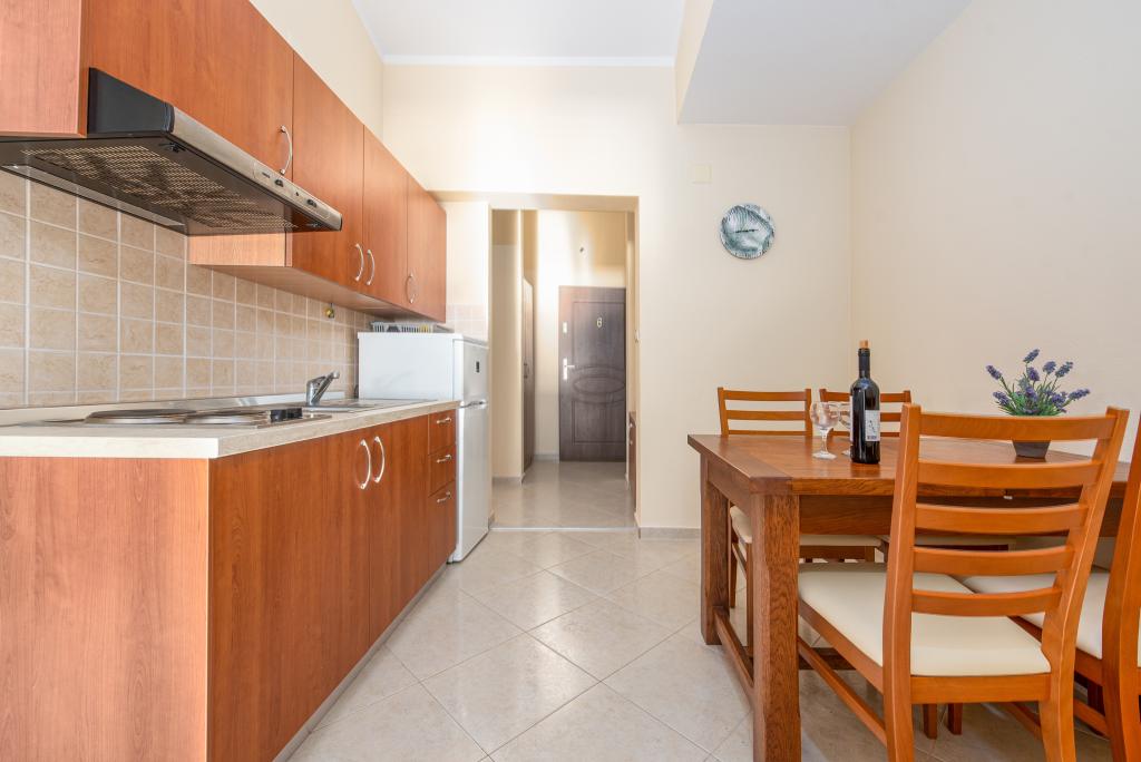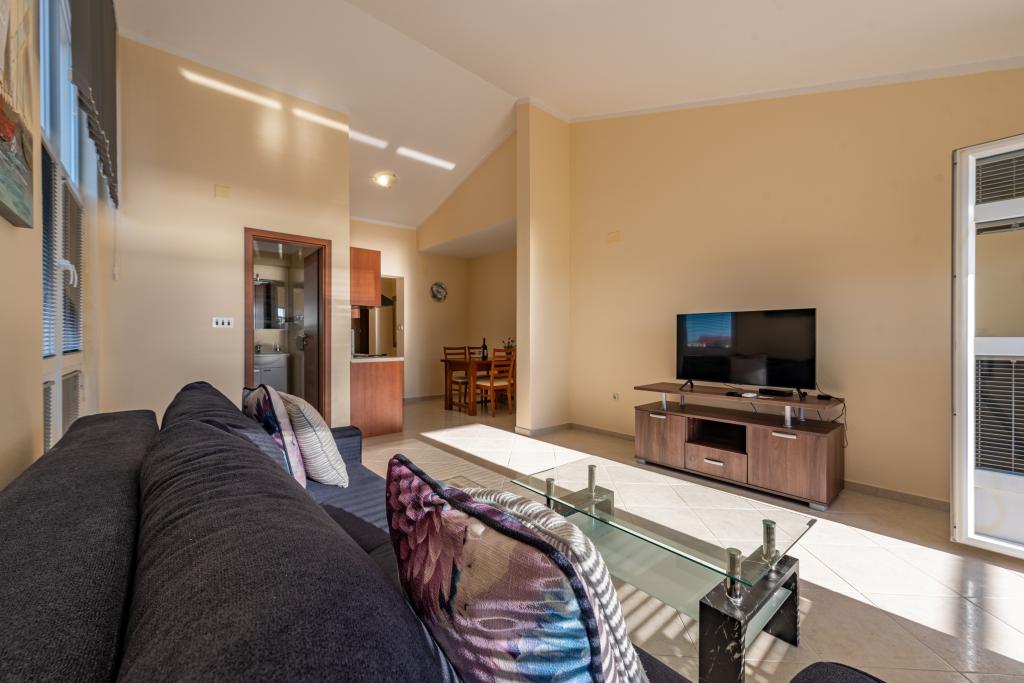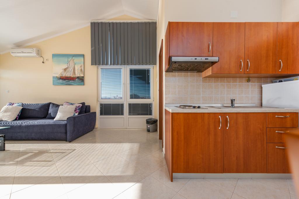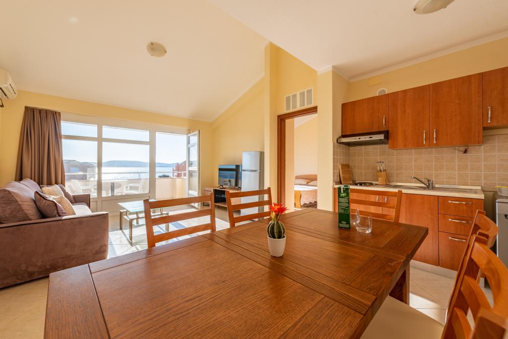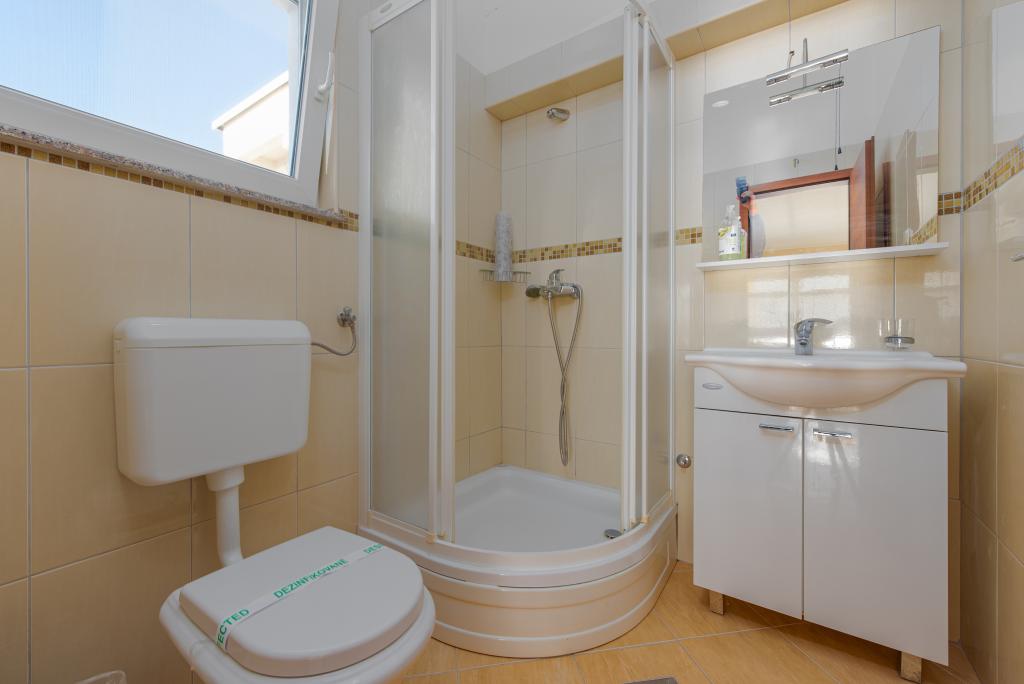En ideel beliggenhed for en fredelig familieferie. Apartments Villa Karolina ligger i Sukošan, kun få meter fra stranden, og tilbyder deres gæster muligheden for en fredelig familieferie. En privat sti fører til stranden. Anlægget har 6 boligenheder. Vi tilbyder dig 5 lejligheder og 1 studiolejlighed. Hver lejlighed har en stor terrasse med (for det meste) havudsigt. Der er også en udendørs grill med plads til socialt samvær. Lejlighederne har et fuldt funktionelt køkken (køleskab, komfur, service...), LCD-satellit-tv, aircondition, toilet, store dobbeltsenge, parkering og WI-FI internet er tilgængeligt for hver lejlighed. Anlægget er beliggende i et roligt område uden for mange folkemængder. Bymidten ligger 5 minutters gang væk, og Zadar Lufthavn og byen Zadar ligger kun 10 kilometer væk.