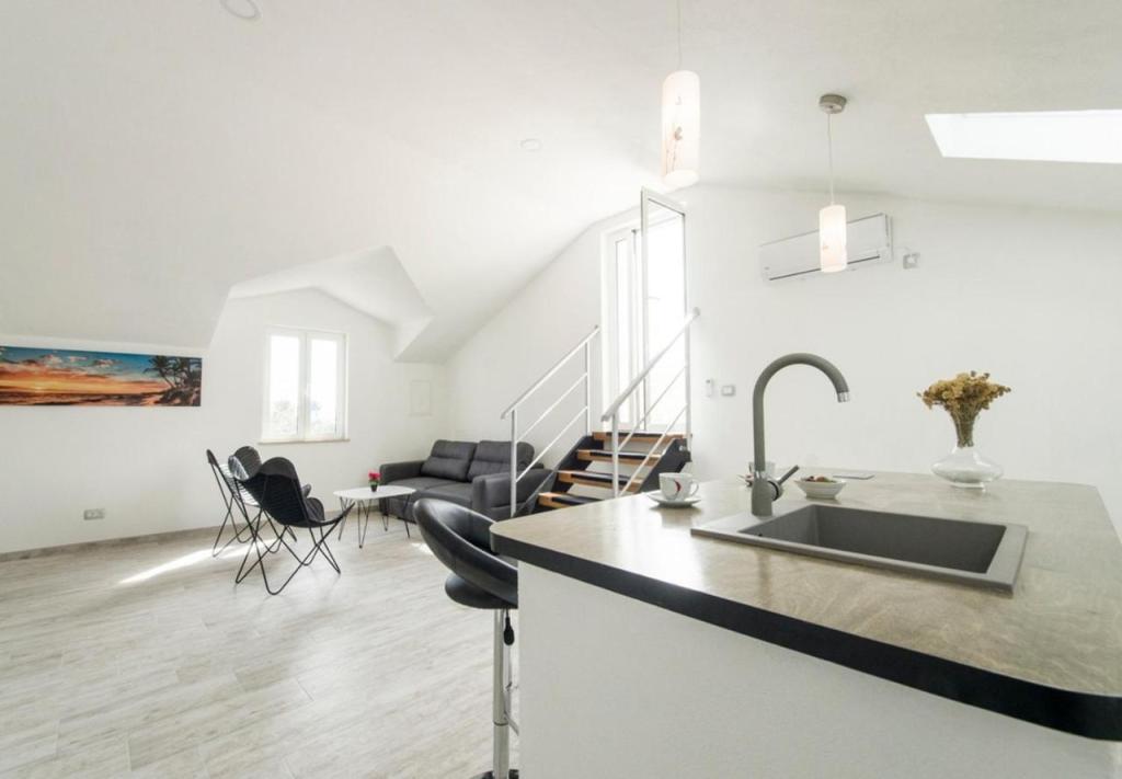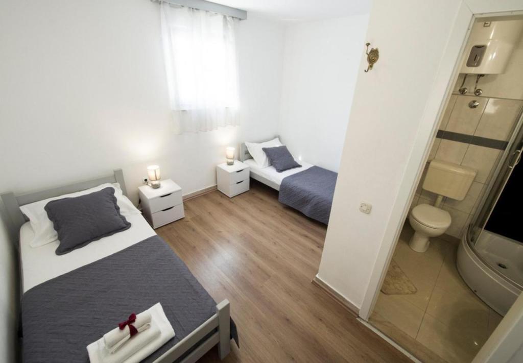 Meget rent, velindrettet og charmerende hus. Flere etager og badeværelser. Vi var 7 personer, inklusive 3 børn, med plads nok til alle. Den øverste terrasse har en malerisk udsigt over landsbyen og havet. Terrassen i stueetagen er beskyttet mod solen og har en pejs til dejlige grillaftener. Poolen er ren og behagelig. Huset ligger tæt på flere strande og centrum på 5 minutter. Roligt kvarter. Ejerne, Jaka og Vinko, er meget opmærksomme. Du vil blive budt velkommen med et smil, venlighed og fremragende brandy og olivenolie produceret af dem selv. Vi anbefaler uden tøven til enhver turist, der ønsker at blive budt velkommen med respekt og i kontakt med ægte dalmatinere, der vil dele smukke historier med dig.