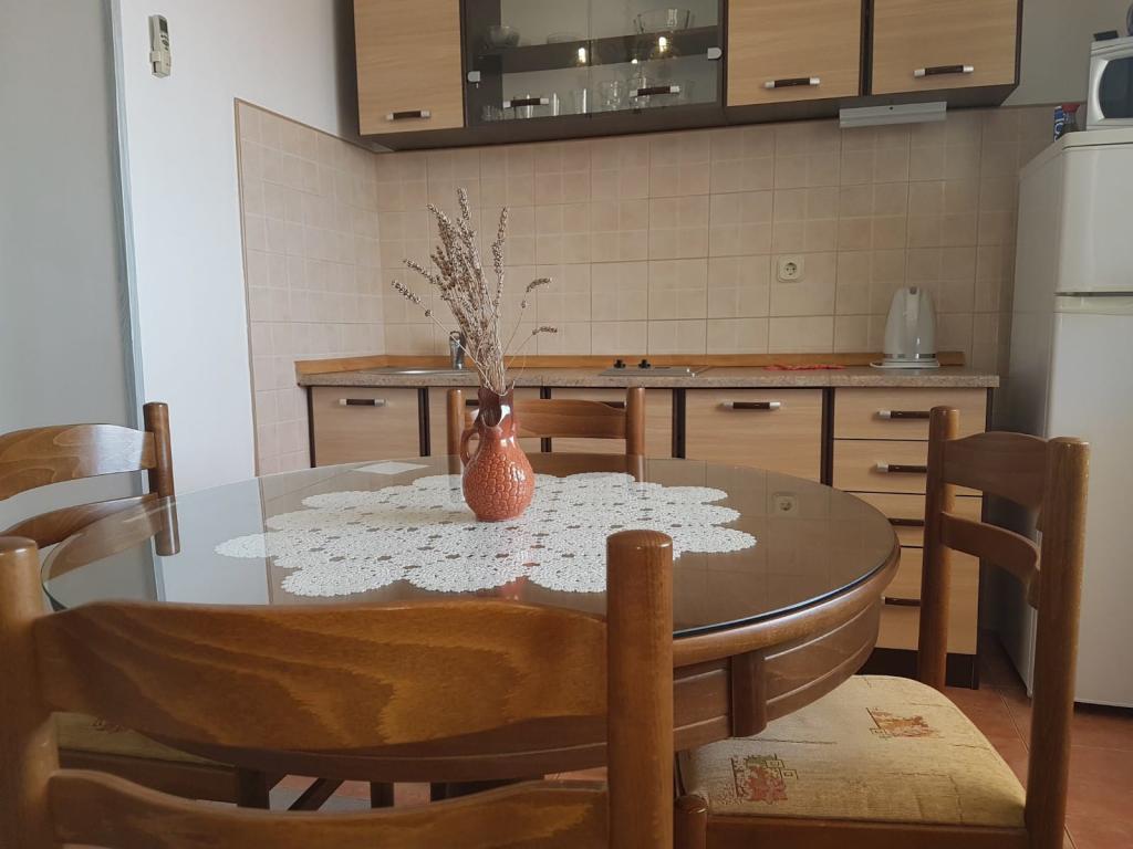 Vi kan varmt anbefale at bo her. Værterne er vidunderlige, meget omsorgsfulde og venlige. De bød os velkommen med et glas hjemmelavet likør og under vores ophold forkælede de os med lokal grillet fisk og deres egen rødvin (du kan købe lækker fisk direkte fra en fiskerven). Kommunikation på polsk er nem. Lejligheden er ren, kølig og har en meget behagelig seng. Der er to toiletter (hvoraf det ene er et toilet). Køkkenet er veludstyret. Der er et skyggefuldt område ved siden af bygningen til at efterlade og skylle dit SUP-board. Lejligheden har en privat parkeringsplads et par dusin meter væk, men der er også en parkeringsplads lige ved indgangen til parkering og aflæsning af bagage. Ret tæt på Jezero-stranden, som vi varmt kan anbefale i området. Tæt på en vingård, kirke, restaurant, Studenca og bageri. Vi vender gerne tilbage dertil, for første gang havde vi ikke så meget lyst til at tage hjem efter en ferie, mens vi var på dette sted.