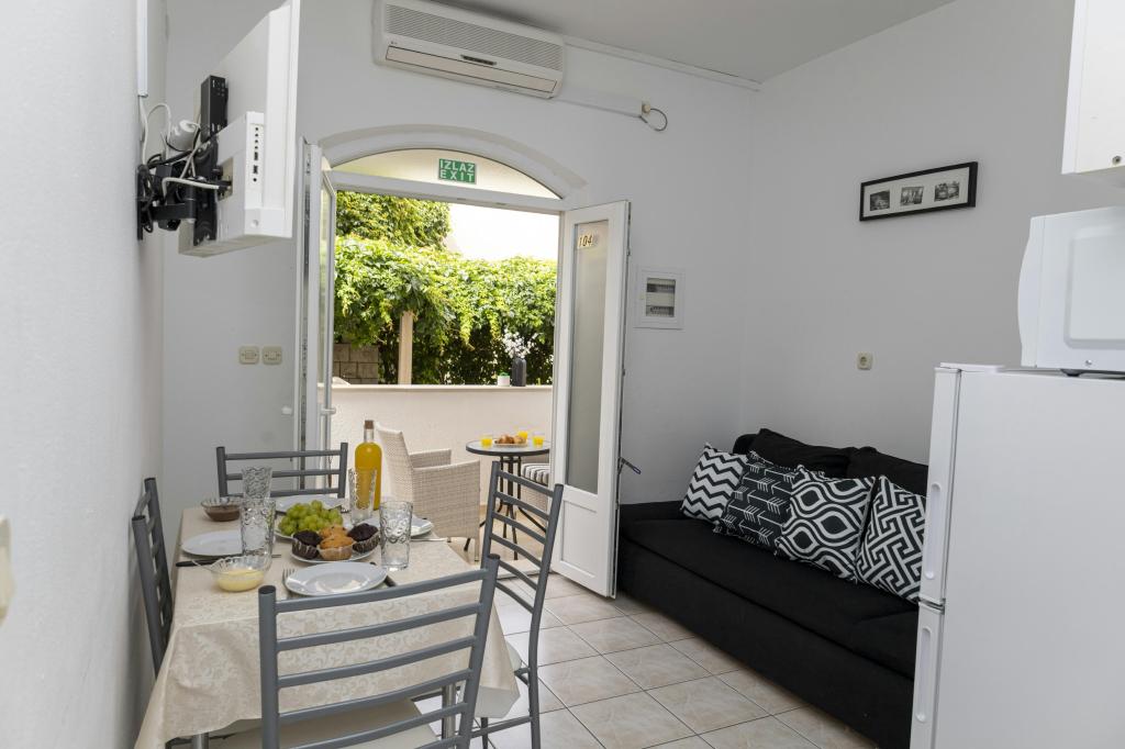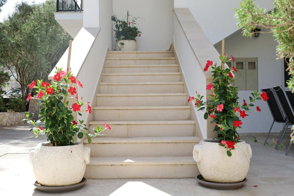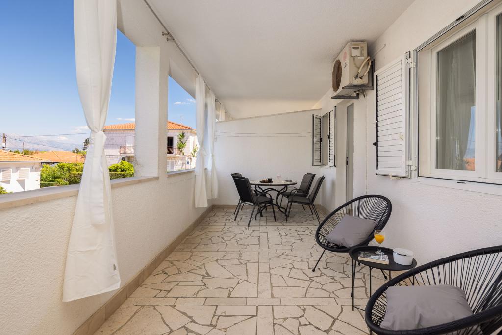 Apartments Ina er beliggende i den vestlige del af Supetar. Den største bystrand ligger kun 100 meter væk. I umiddelbar nærhed er der en promenade, der fører til centrum, restauranter, sportsbaner, butikker og et vekselkontor. De består af 21 lejligheder. Hver lejlighed har en overdækket terrasse eller balkon, de fleste med havudsigt.