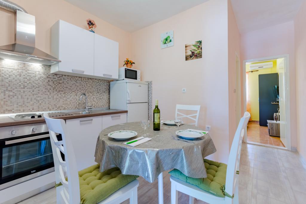 Bygningen ligger 30 m fra havet, en stenstrand, 10 minutters gang fra centrum af byen. Vores lejligheder er fuldt udstyret med alle fornødenheder. Foran bygningen er der en stor parkeringsplads med naturlig skygge. I gården er der en stor grill, som kan bruges af alle vores gæster. Alle lejligheder har egen terrasse. De er også udstyret med aircondition, tv, wi-fi, satellit. Kæledyr er velkomne (tillæg 7eur/dag). Turistskat er ikke inkluderet i prisen. Obligatorisk forudbetaling (200 eur) ved reservation. Vi ønsker alle et behageligt og ubekymret ophold i vores lejligheder. VELKOMMEN