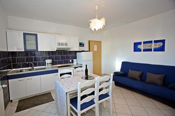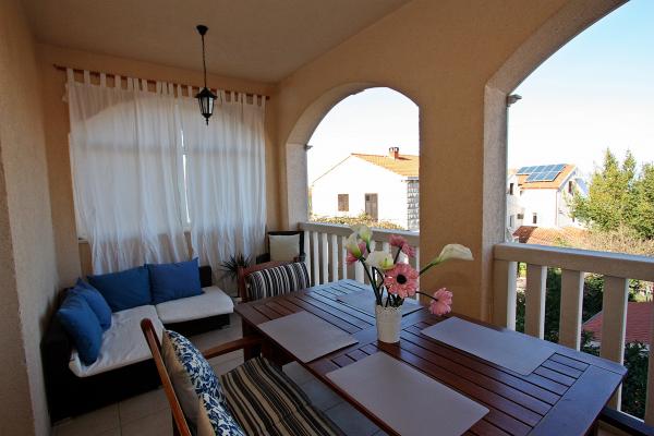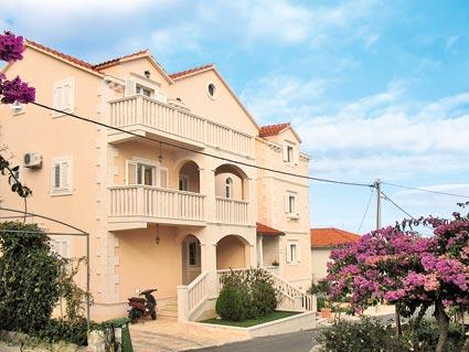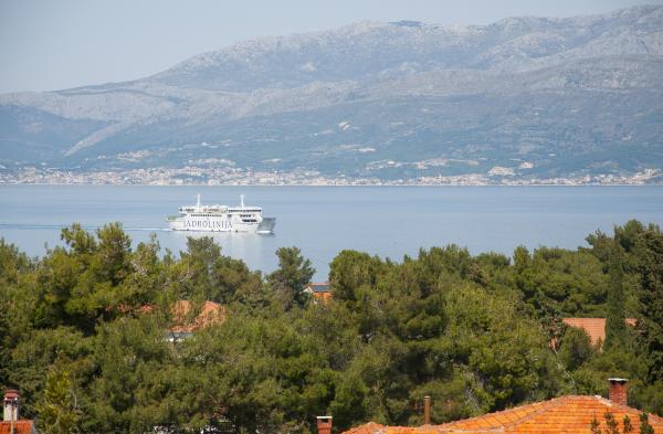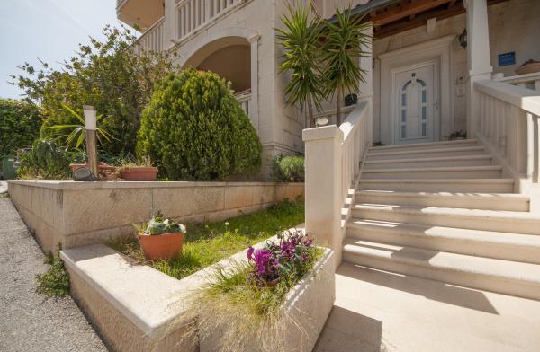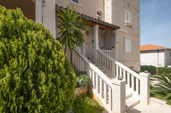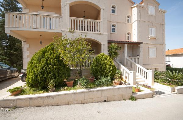 Nyt hus med i alt 4 lejligheder, Villa Maria, ligger i bolig- og rekreativt område Supetar i umiddelbar nærhed af centrum med et bredt udvalg af sports- og underholdningsfaciliteter. Tennisbaner 150 m væk, indkøbsmuligheder 200 m, stenstrand og restaurant ca. 350 m, bymidte ca. 800 m. Delvist indhegnet med en stenmur, ca. 600 m² grund med planter og grønne områder. Parkering er tilgængelig for alle gæster. Hver lejlighed har en overdækket terrasse/balkon med møbler, og nogle har havudsigt.