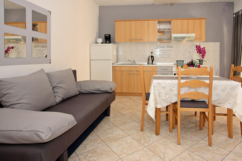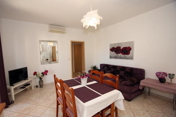 Ekstremt ren lejlighed og pænt møbleret. Det har masser af plads og en stor terrasse, der er skyggefuld hele dagen. Strøelse lugtede meget flot, de efterlod os sæbe, toiletpapir, to opvaskemaskiner til opvaskemaskine, håndopvaskemiddel, mel, te og mere. Den eneste ulempe var den kombinerede komfur, der havde to kogeplader og to gas, som ikke fungerede, da der overhovedet ikke var nogen gas. Kun to kogeplader og en ovn fungerede. Men du kan også lave mad sådan. Stranden er tæt, kun 5 minutters gang. Butikken er også temmelig tæt på vej til stranden, og byen ligger lige ved siden af, ca. 10 minutter væk. Kort sagt, alt er tæt (inklusive banker, pengeautomater, restauranter og barer). Byen Supetar er meget smuk, især om natten. Det lønner sig at gå langs havnefronten, hvor de sælger en række attraktioner. Langs stranden er der meget skygge under træerne, så det er overhovedet godt. De har også en enorm dias og et oppusteligt vandlegetøj til børnene. Vi gik for at spise på restauranten eller fastfood Jure og vi var meget tilfredse. Meget god mad og meget venligt personale. Selv lejlighedsejere og pigen, der hjælper, er alle meget venlige.