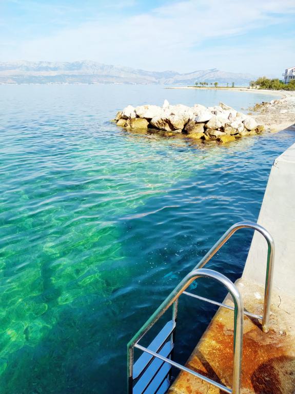 Vores lejligheder ligger i første række til havet, kun få meter fra stranden, i den lille og rolige by Mirca. Haven er fuld af grønne områder med mange blomster og middelhavsfrugttræer. Alle lejligheder er fuldt udstyrede, har balkon med havudsigt eller privat udendørs terrasse, aircondition og Wi-Fi. Parkeringspladser er placeret i husets gård. Vi tilbyder også en grill, hvor vores gæster kan tilberede deres yndlingsretter. Vi hjælper vores gæster med at forberede grillen, forkæle dem med en drink og vores olivenolie, som passer godt til enhver ret. Lejlighederne ligger tæt på adskillige stier for vandrere og cyklister, så gæsterne kan nyde den smukke natur.