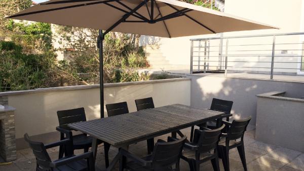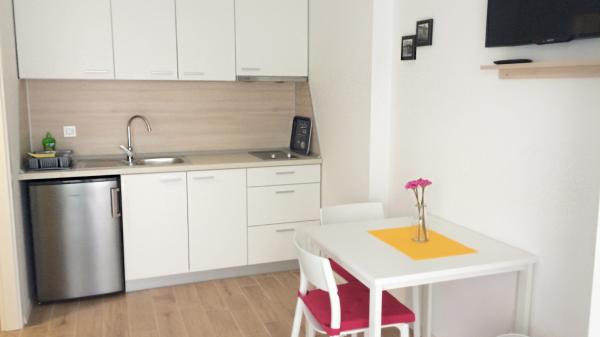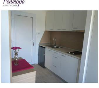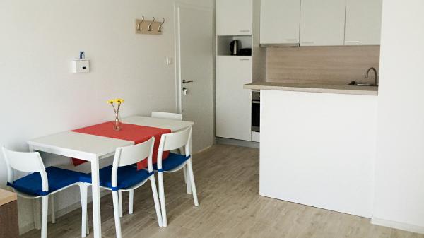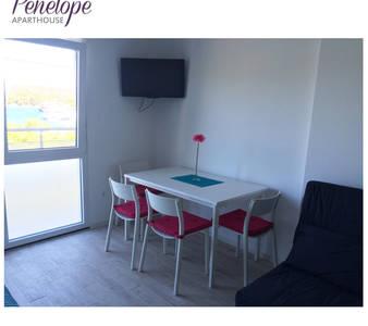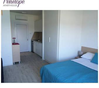 Aparthouse Penelope er et hus med 10 lejligheder. Huset ligger i et roligt sted kaldet Supetarska Draga, kun 5 km fra den gamle bydel Rab (5-10 minutter i bil). Et ideelt sted for familier, der ønsker at tilbringe en afslappende ferie nær havet. Foran lejligheden er en stor solrig terrasse (180m2) med udsigt over havet og øerne. Foran lejligheden (10m) er den første strand! Hver lejlighed har et værelse, køkken og toilet. Det er udstyret med tv og aircondition. Udendørs grill er tilgængelig for alle vores gæster samt en vaskemaskine (efter aftale). I nærheden af huset (100m) er der en offentlig parkeringsplads, og restauranter og caféer ligger 30 meter fra lejlighederne.