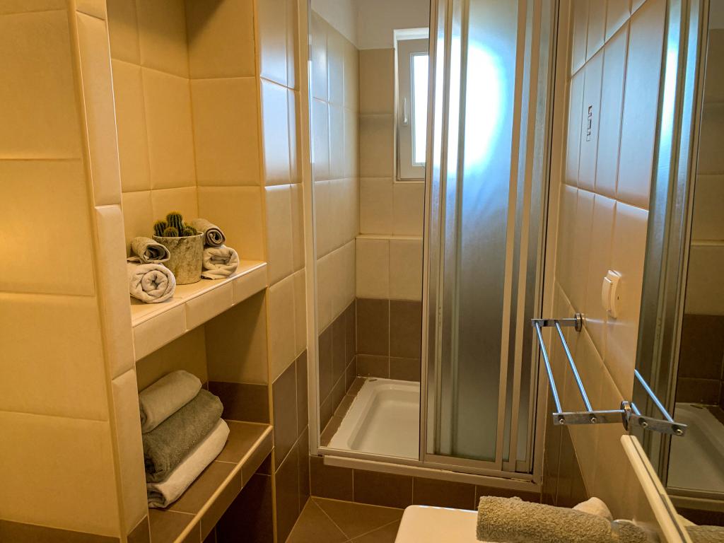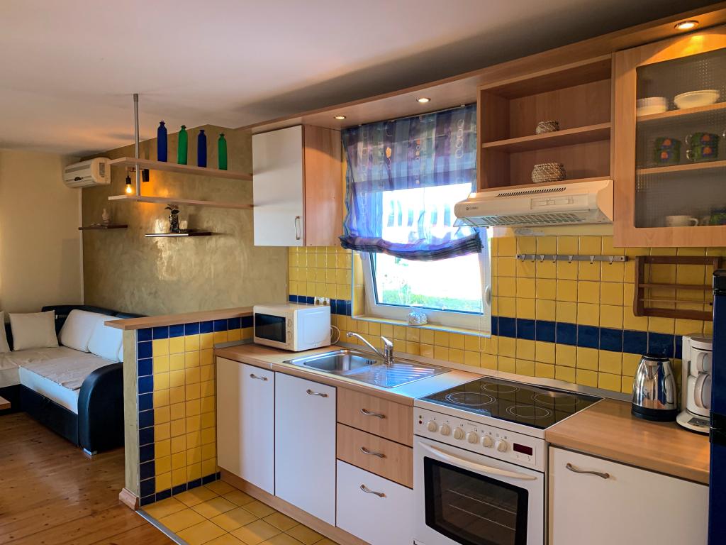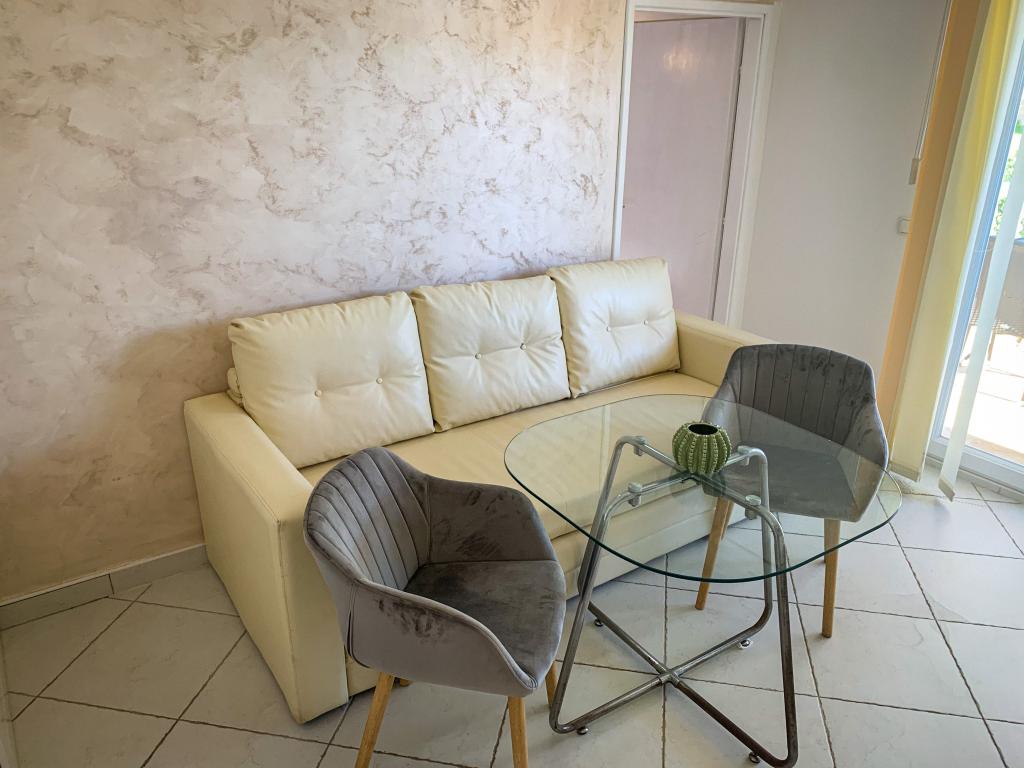 Direkte ved havet tilbyder vores familiefirma lejligheder til 2 og 4 personer, studier og værelser til 2 personer. Vores hus er velegnet til børn og kæledyr. Rolig beliggenhed, hver lejlighed er helt adskilt og har egen dejlig overdækket stor terrasse, der kan placeres barneseng i hver lejlighed.