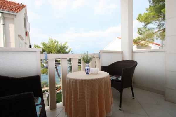 Den nyrenoverede Vila Marina-lejlighed ligger tæt på havet. Det har to soveværelser (dobbelt og tredobbelt), en stue, et fuldt udstyret køkken (opvaskemaskine, keramisk kogeplade, ovn og redskaber) og badeværelser (vaskemaskine, hårtørrer) og et pengeskab. Terrassen tilbyder en smuk udsigt over havet og Split. Lejligheden er fuldt udstyret (aircondition, tv) og har privat parkering. Foran huset er der en have med faciliteter til børn.