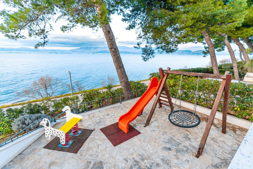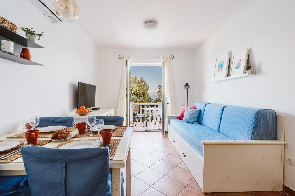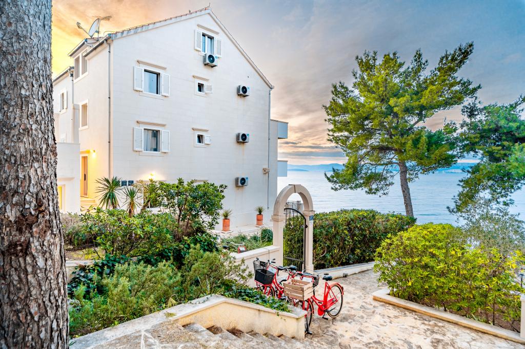 Du finder os i Sutivan på den smukke ø Brač. Sejl til os, hvis du ønsker det: Adriaterhavet kommer lige til døren. Tag en dyb indånding i vores middelhavshave, og glem alt om stress. Der er en legeplads foran huset, en sandstrand i nærheden, og i omgivelserne en tæt fyrreskov og endeløse cykelstier gennem olivenlunde. Lån vores gratis cykler til at drikke en kop kaffe eller handle. Find din ideelle indkvartering i vores villa ved havet. Vælg en rummelig lejlighed eller et kompakt studie, rigt udstyret med moderne møbler. Huset ligger lige ved havet, 15 minutters gang fra byens centrum, i en oase af harmoni mellem grønt, hav og sol, omgivet af en velholdt have og fyrretræer med direkte udsigt over det krystalklare hav fra alle lejligheder.
