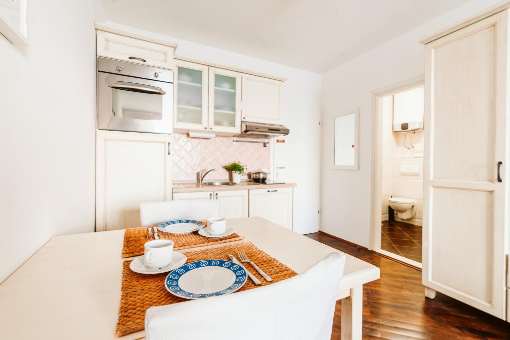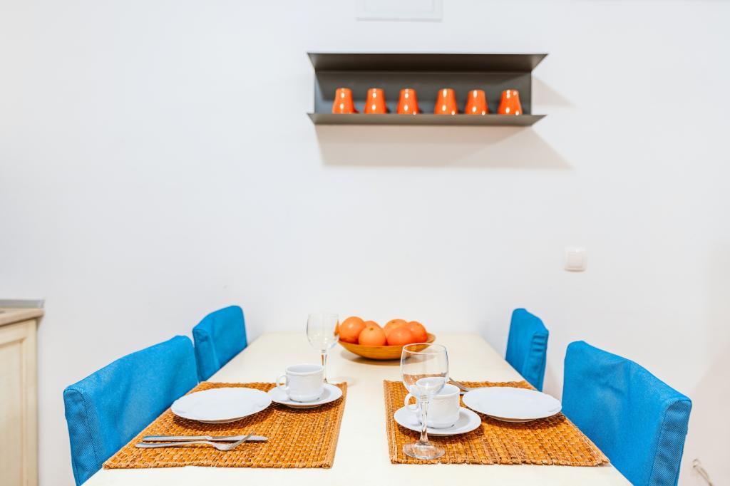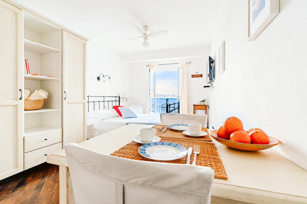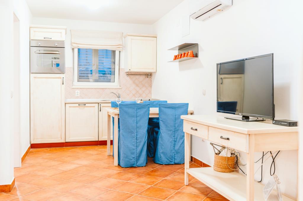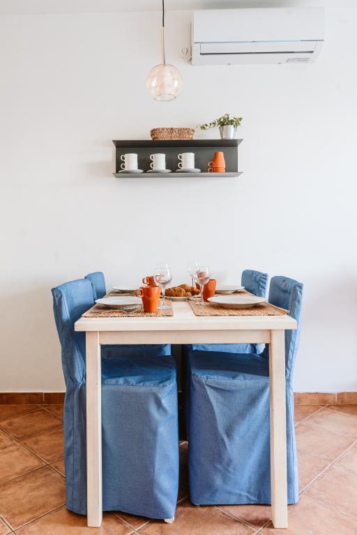 Turistskat er ikke inkluderet i prisen.Alle lejligheder har aircondition, derudover loftsventilatorer i soveværelserne, værdiskab, satellit-tv og wi-fi. Alle lejligheder har fuldt udstyrede køkkener (keramisk kogeplade, køleskab, opvaskemaskine, ovn og service), badeværelser (hårtørrer) og terrasser (med åben havudsigt). Møblerne er lavet af massivt træ, specielt fremstillet og tilpasset den komplette atmosfære og det omgivende indretning. Huset tilbyder brug af cykler og en udendørs legeplads.