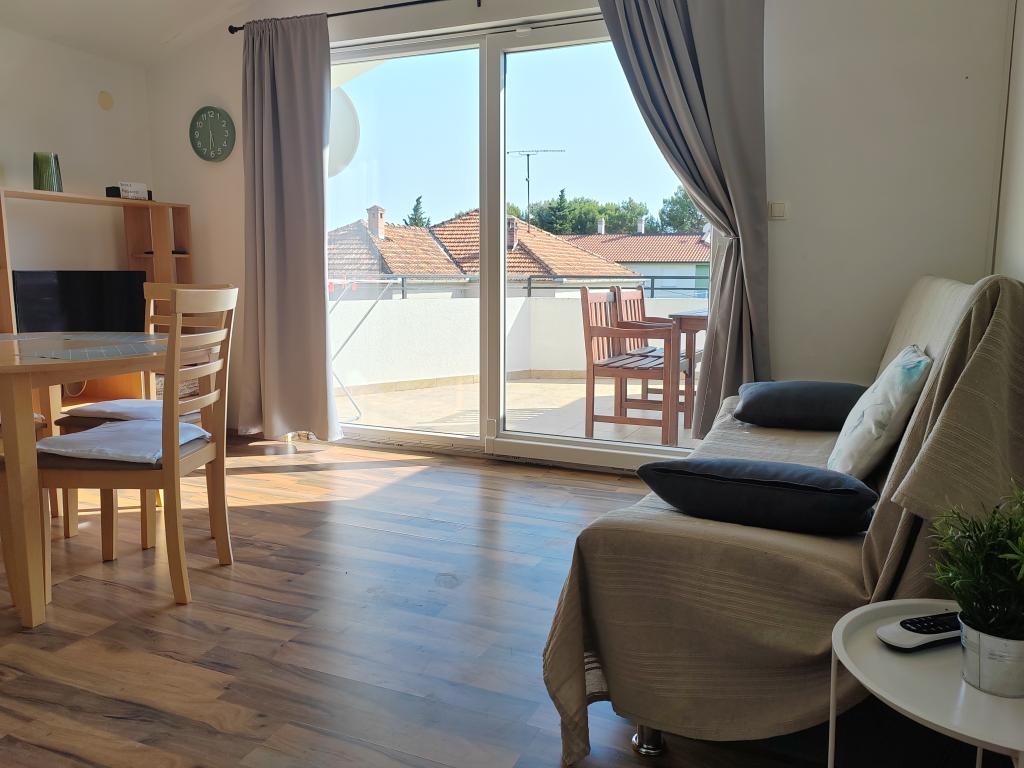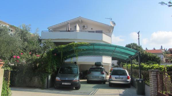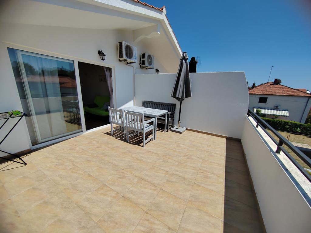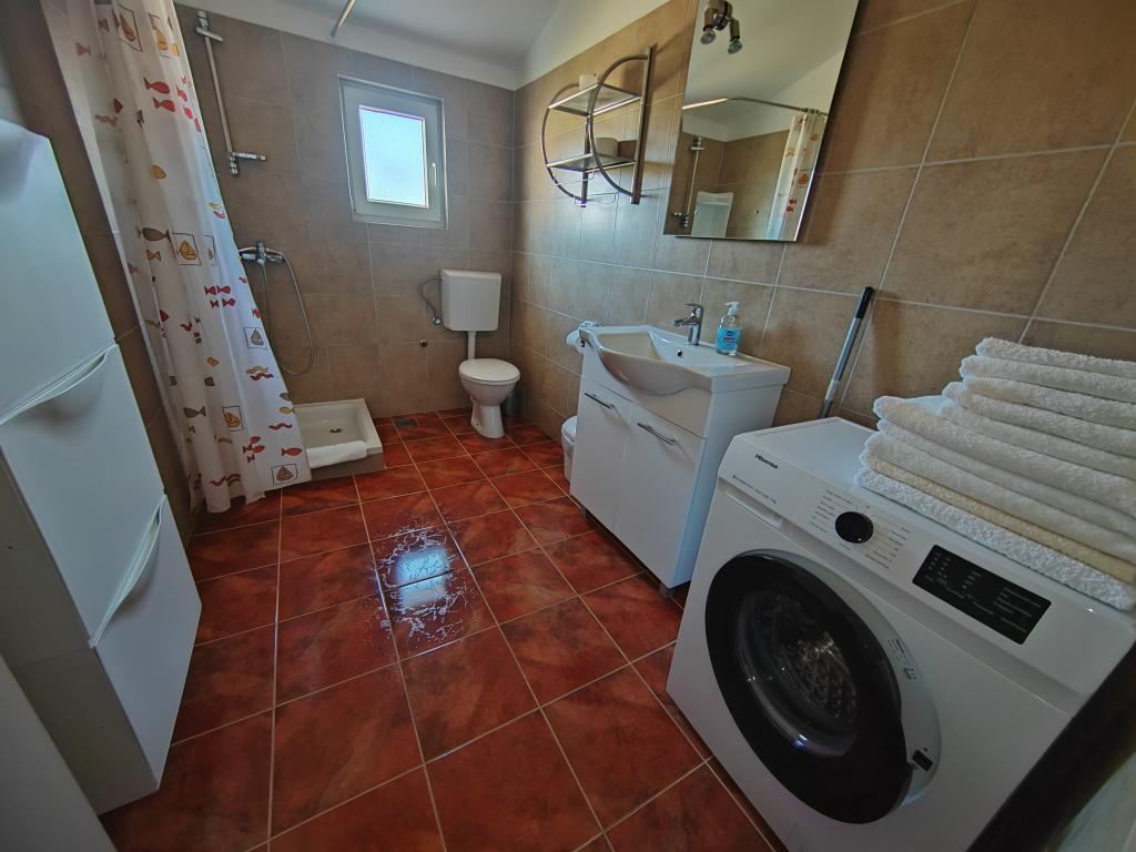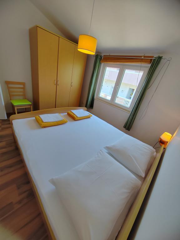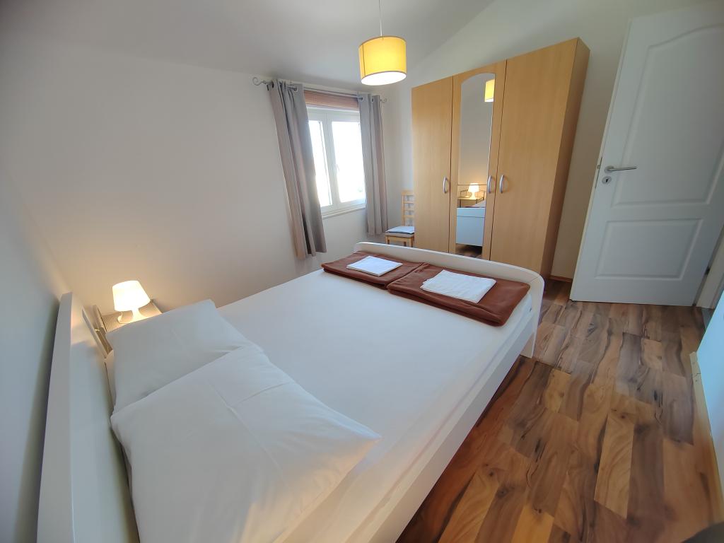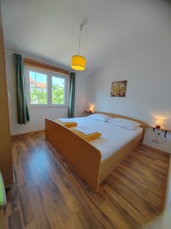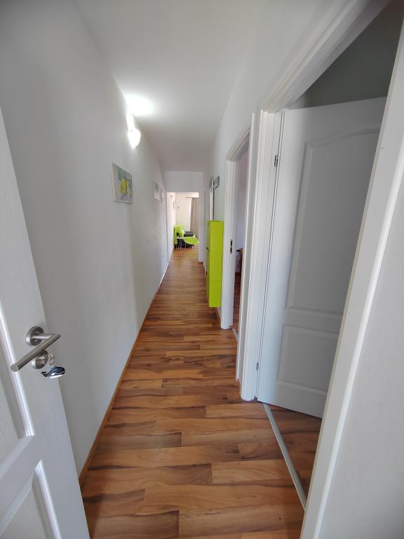 Nær centrum og stranden (150 m). To lejligheder ligger i et familiehus (på første sal), som ligger 150 m fra stranden og byens centrum. Hver lejlighed har to soveværelser, et badeværelse, en vaskemaskine, aircondition, et køkken med spiseplads og en sofa, en stor terrasse (20m2). Alt er inkluderet i prisen. Der er en grill i haven. Parkering er placeret foran huset i skyggen. Lejligheden er 70 m2 stor.