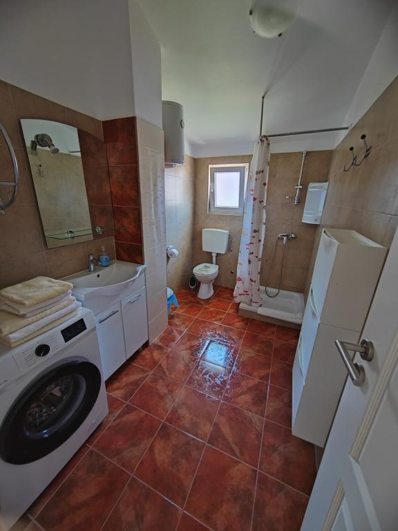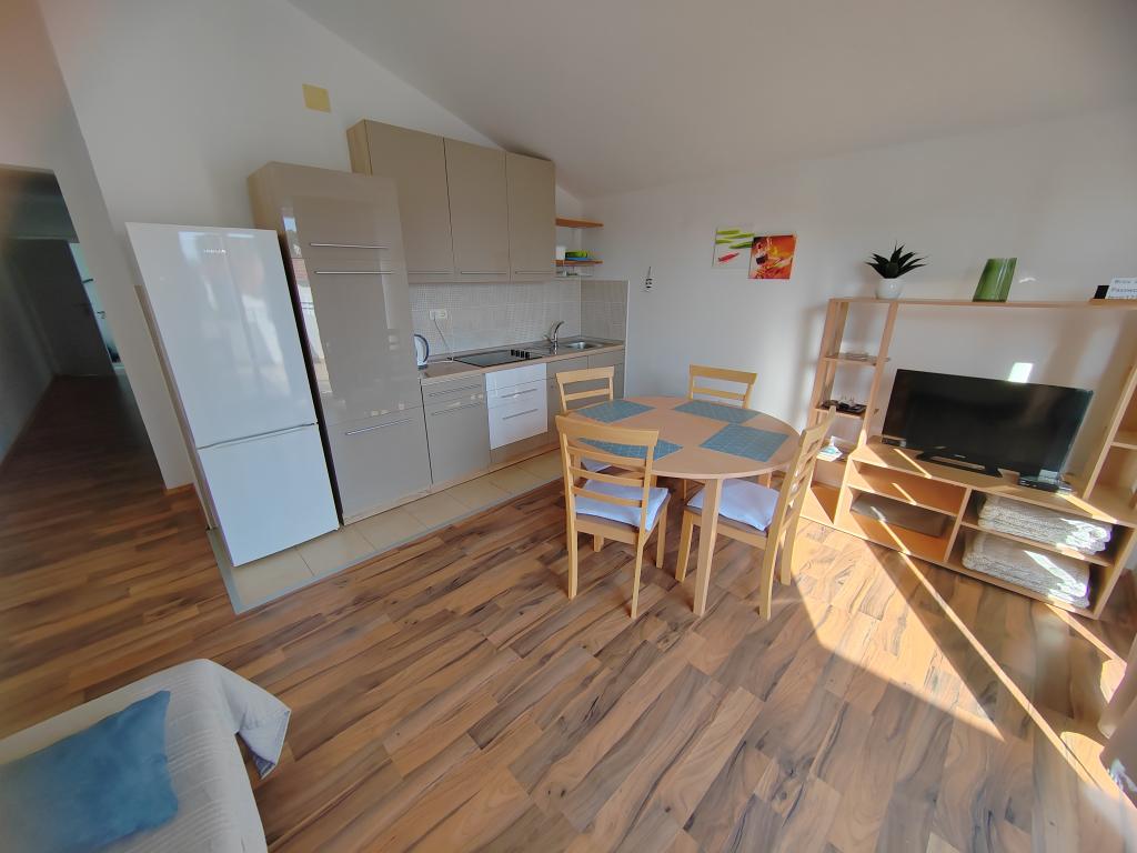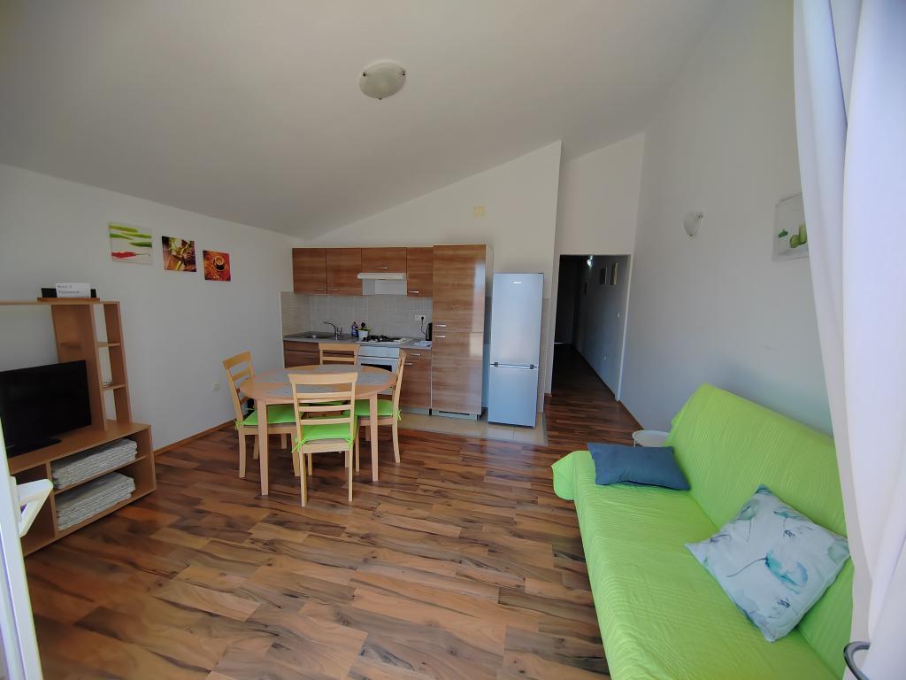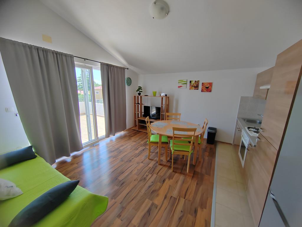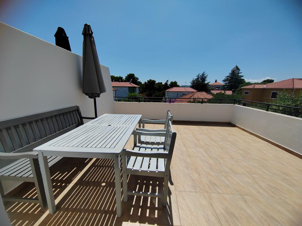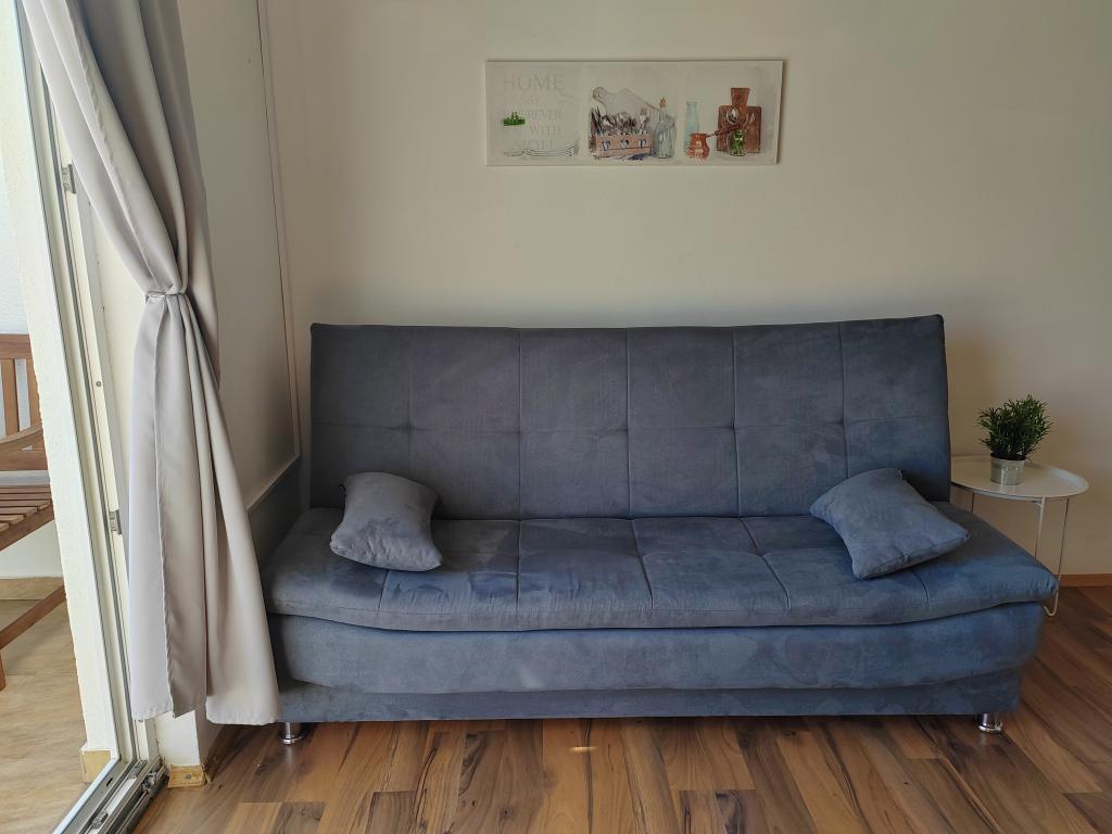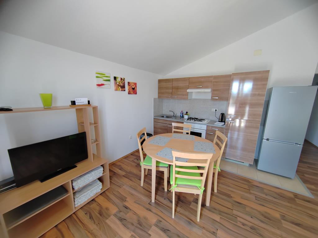 Nær centrum og stranden (150 m). To lejligheder ligger i et familiehus (på første sal), som ligger 150 m fra stranden og byens centrum. Hver lejlighed har to soveværelser, et badeværelse, en vaskemaskine, aircondition, et køkken med spiseplads og en sofa, en stor terrasse (20m2). Alt er inkluderet i prisen. Der er en grill i haven. Parkering er placeret foran huset i skyggen. Lejligheden er 70 m2 stor.