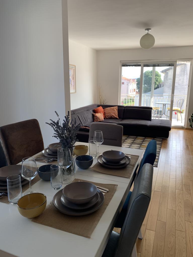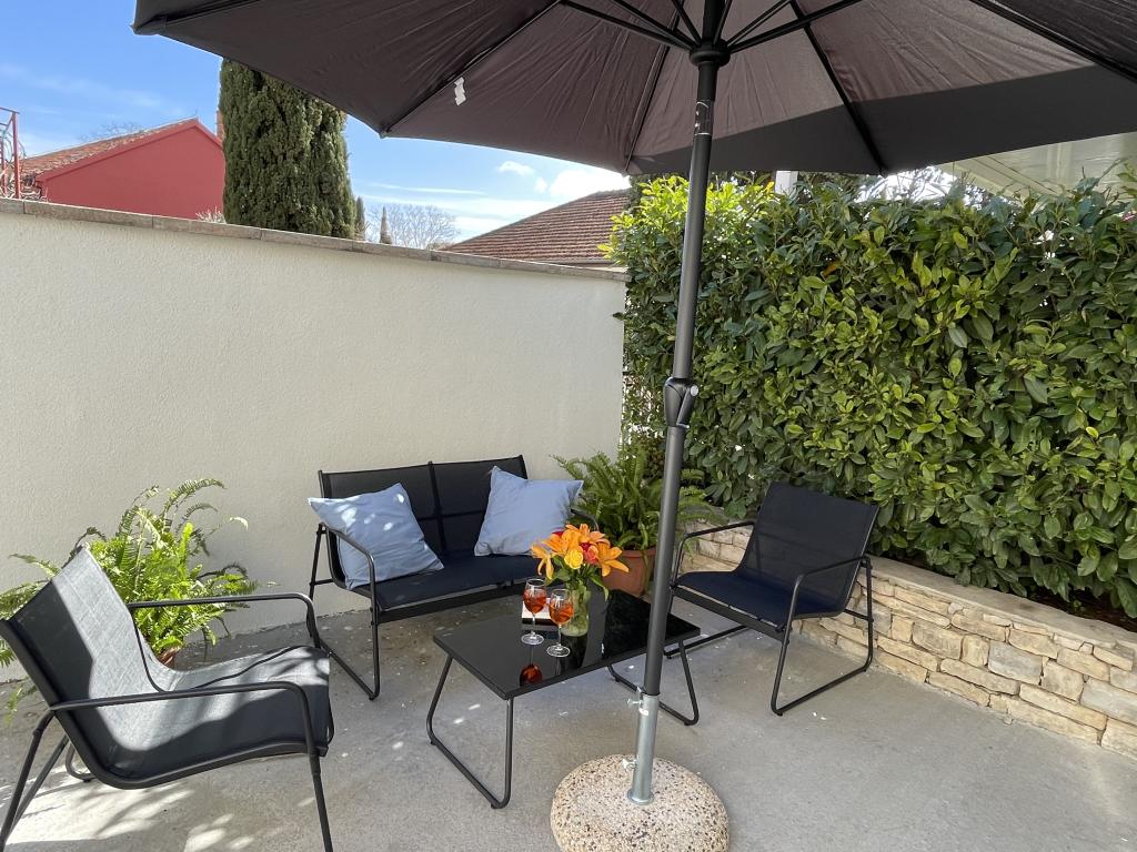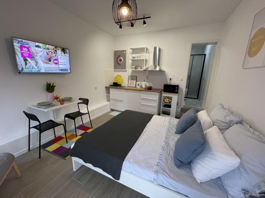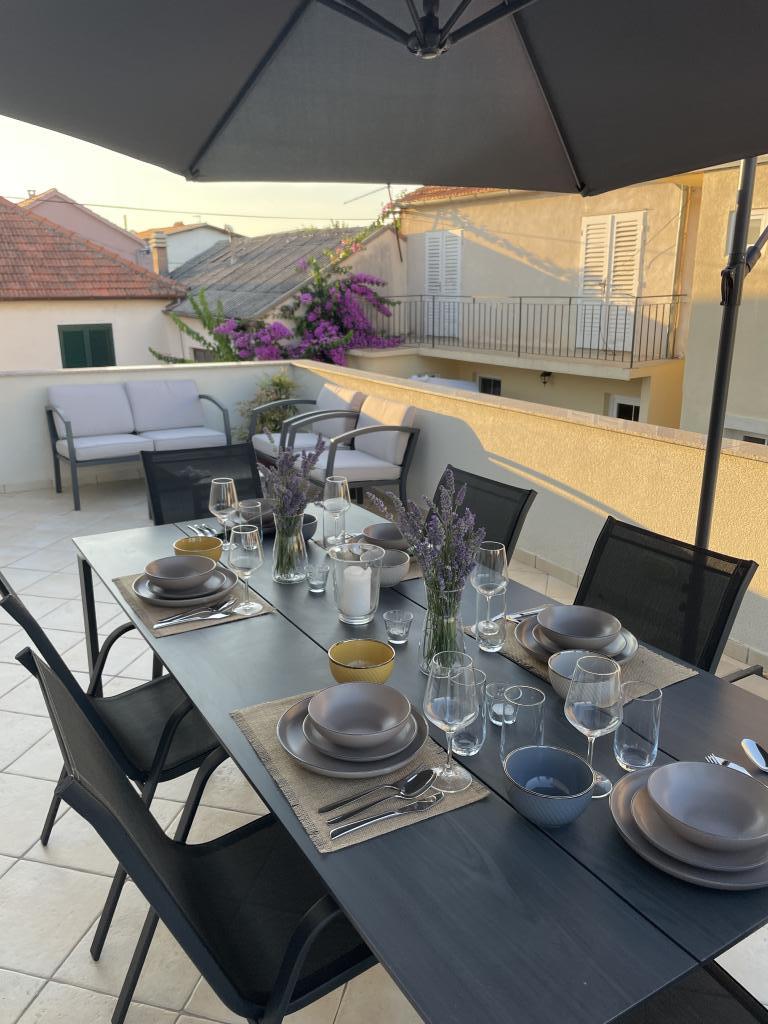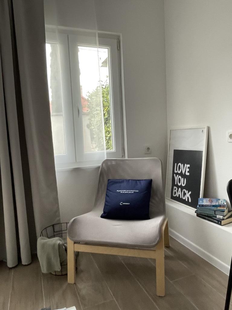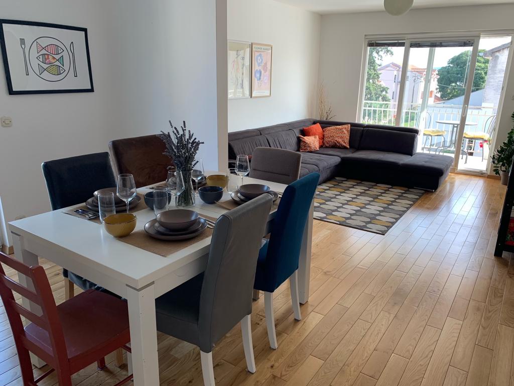 En fuldt udstyret studielejlighed med terrasse ligger i stueetagen af et familiehus i centrum af Sveti Filip i Jakov. Lejligheden med tre soveværelser, fuldt udstyret, med en stor terrasse med havemøbler er placeret på første sal af huset. Lejlighederne ligger 5 minutters gang fra den nærmeste strand (du kan vælge småsten, sand eller beton), restauranter, butikker, posthus, sportsfaciliteter, cafe barer... Parkering er forudsat foran huset og er inkluderet i prisen. En grill er også tilgængelig for gæster...