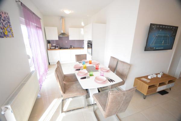 Lejligheden har nye, rene, ryddelige nye møbler og en stor terrasse. Alle faciliteter omfatter et køkken. Tæt på stranden, i en rolig beliggenhed. Paula og hendes familie er meget hyggelige. Tak vi kommer tilbage næste år! Hutvágner familie fra Ungarn
