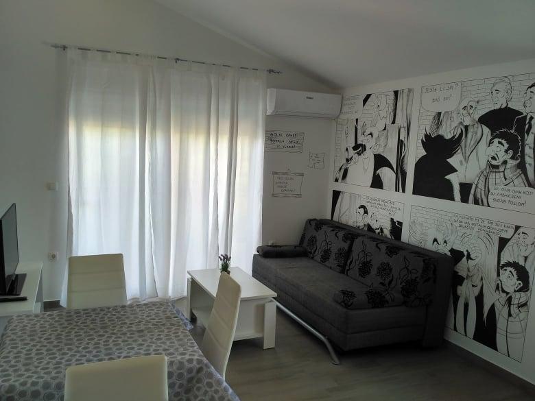 Vi var tilfredse med den smukke moderne nye lejlighed med aircondition, værtinden er meget venlig og står for alle spørgsmål. Vi havde en stor tid, så vi reserverede også til næste år! Jeg anbefaler yderligere ..... Markovic