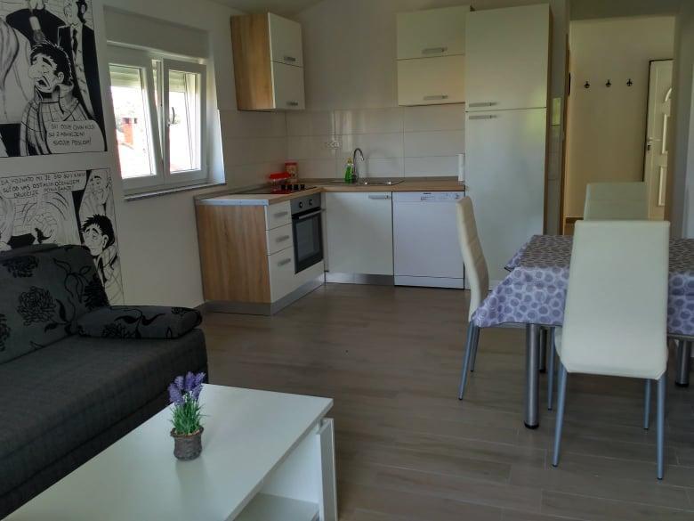 Vi boede i ti dage i lejlighed A1 4+2. Lejligheden er smuk, rummelig, ryddelig og har alt hvad du behøver. Ejerne er vidunderlige mennesker, diskret, og alligevel, hvis du har brug for noget, bliver det taget hånd om på et øjeblik. Vi nød alle ti dage, vi bringer kun positive indtryk hjem, og jeg håber, vi ses igen. Parkering i gården i skygge og nærhed til alle faciliteter er også en stor fordel. Absolut alle anbefalinger fra os.
